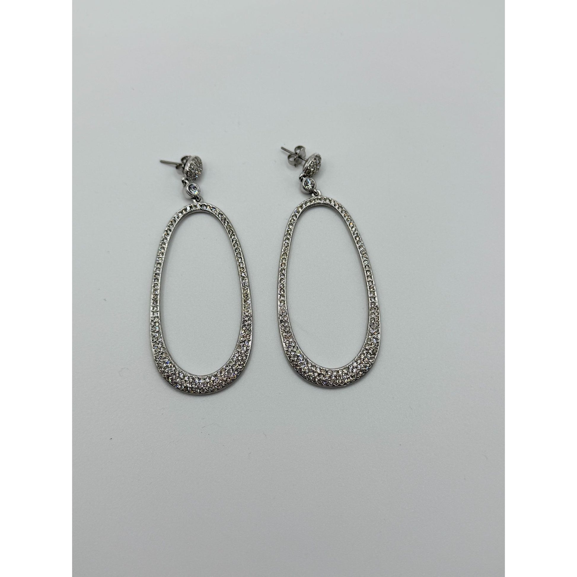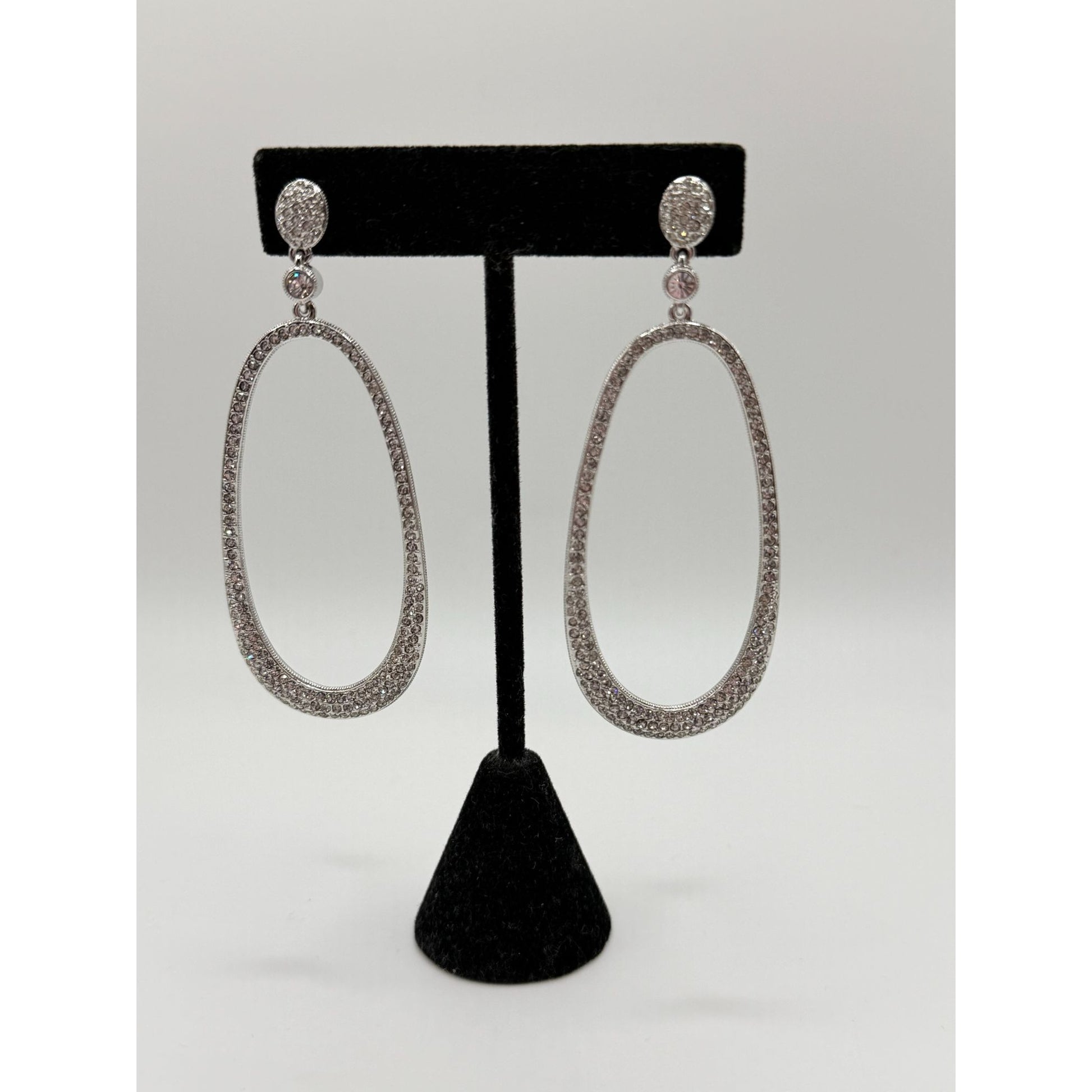 Nadri Oval Rhinestone Dangle Earrings Pave Detailing Silver Finish Original Box