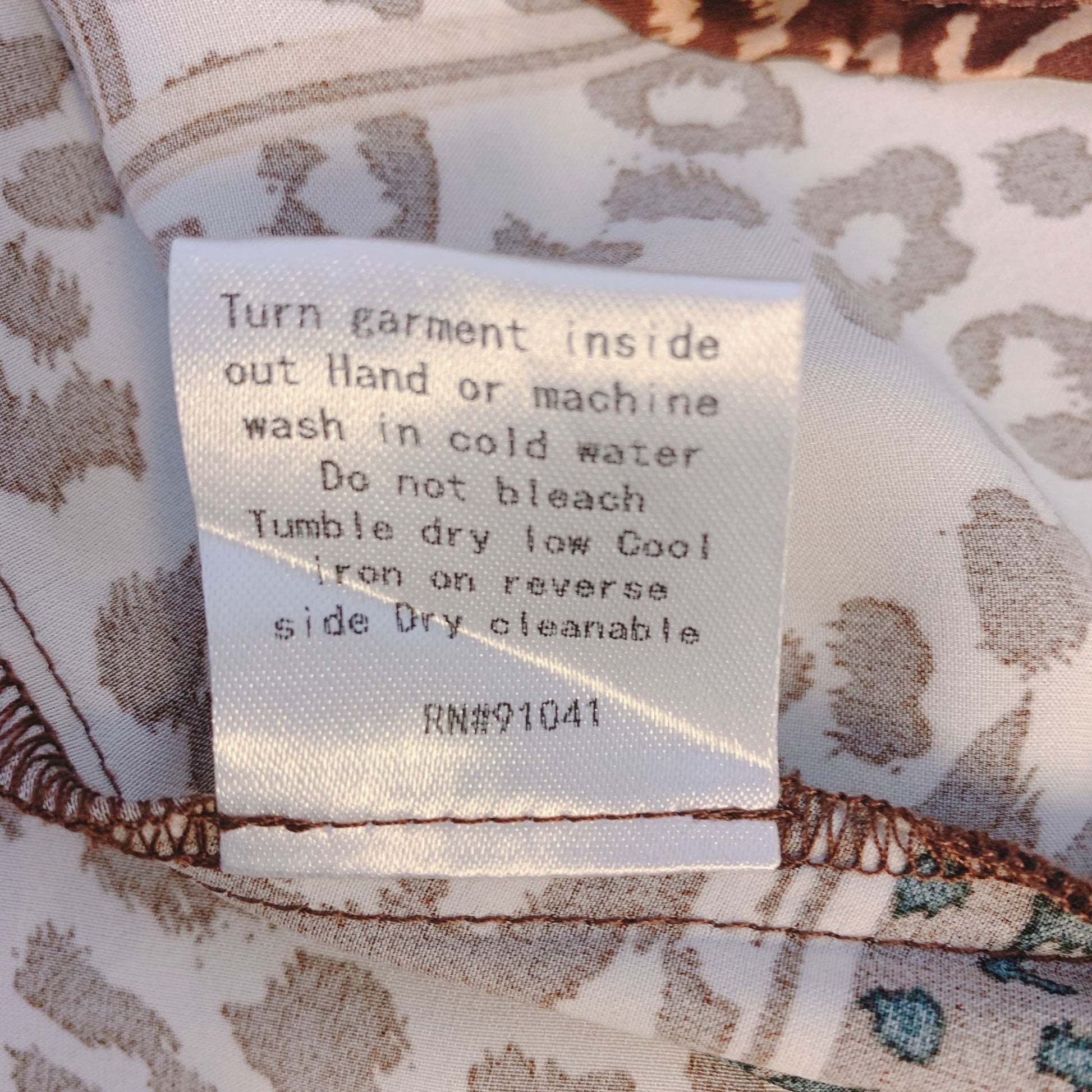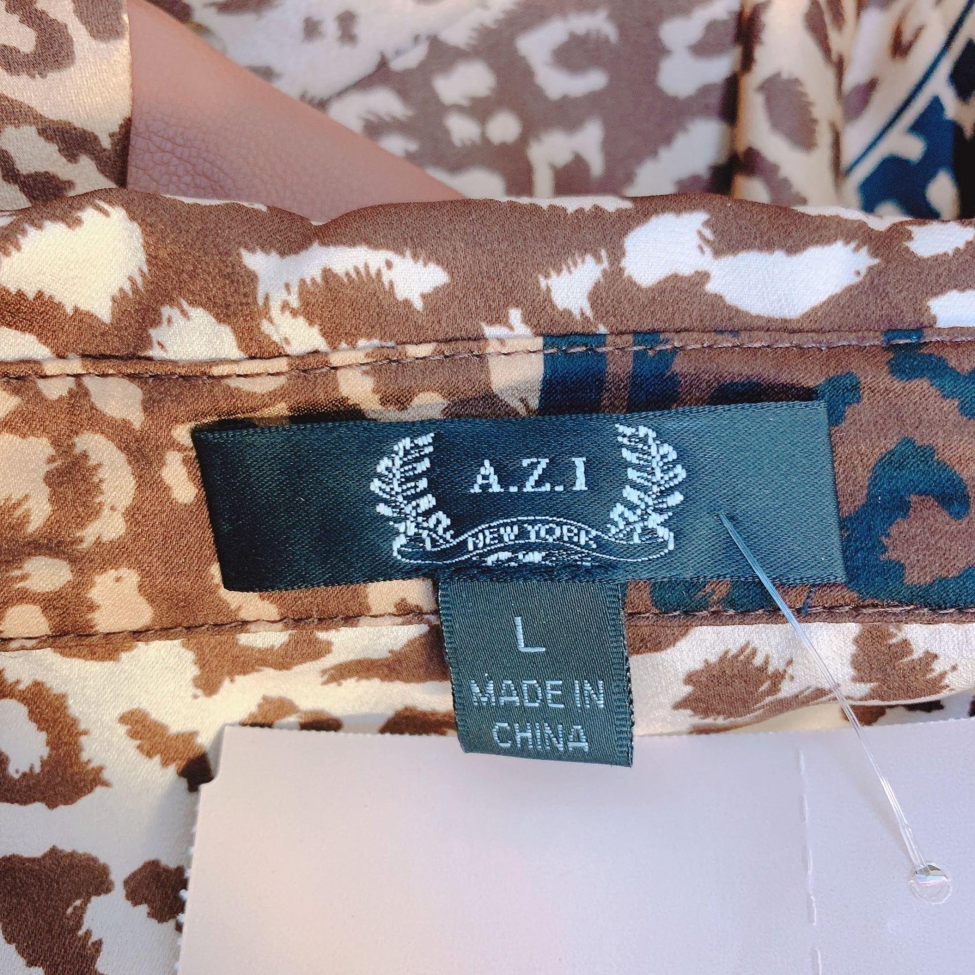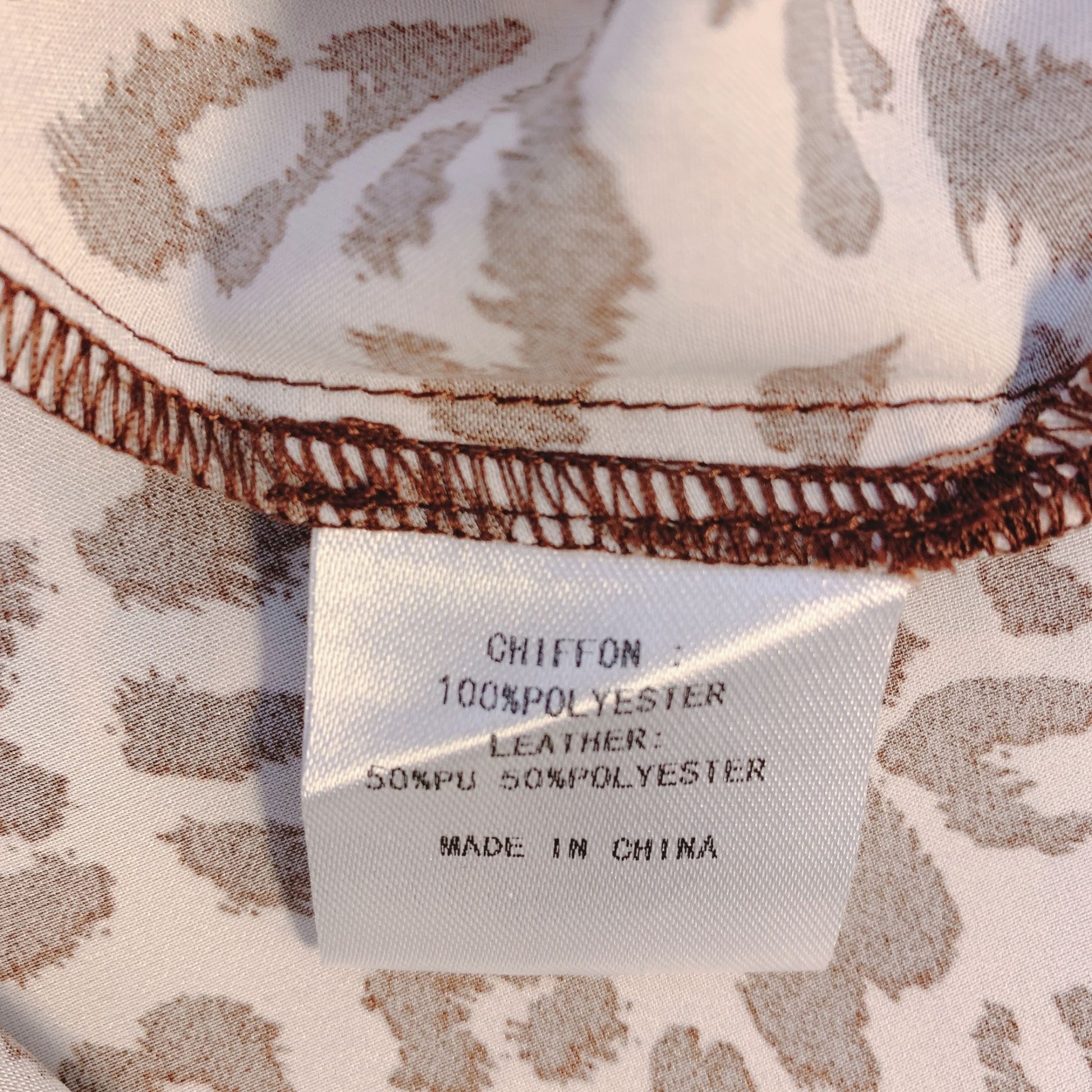 NWT A.Z.I Animal Print Button-up Blouse Faux Leather Shoulder Details Size L