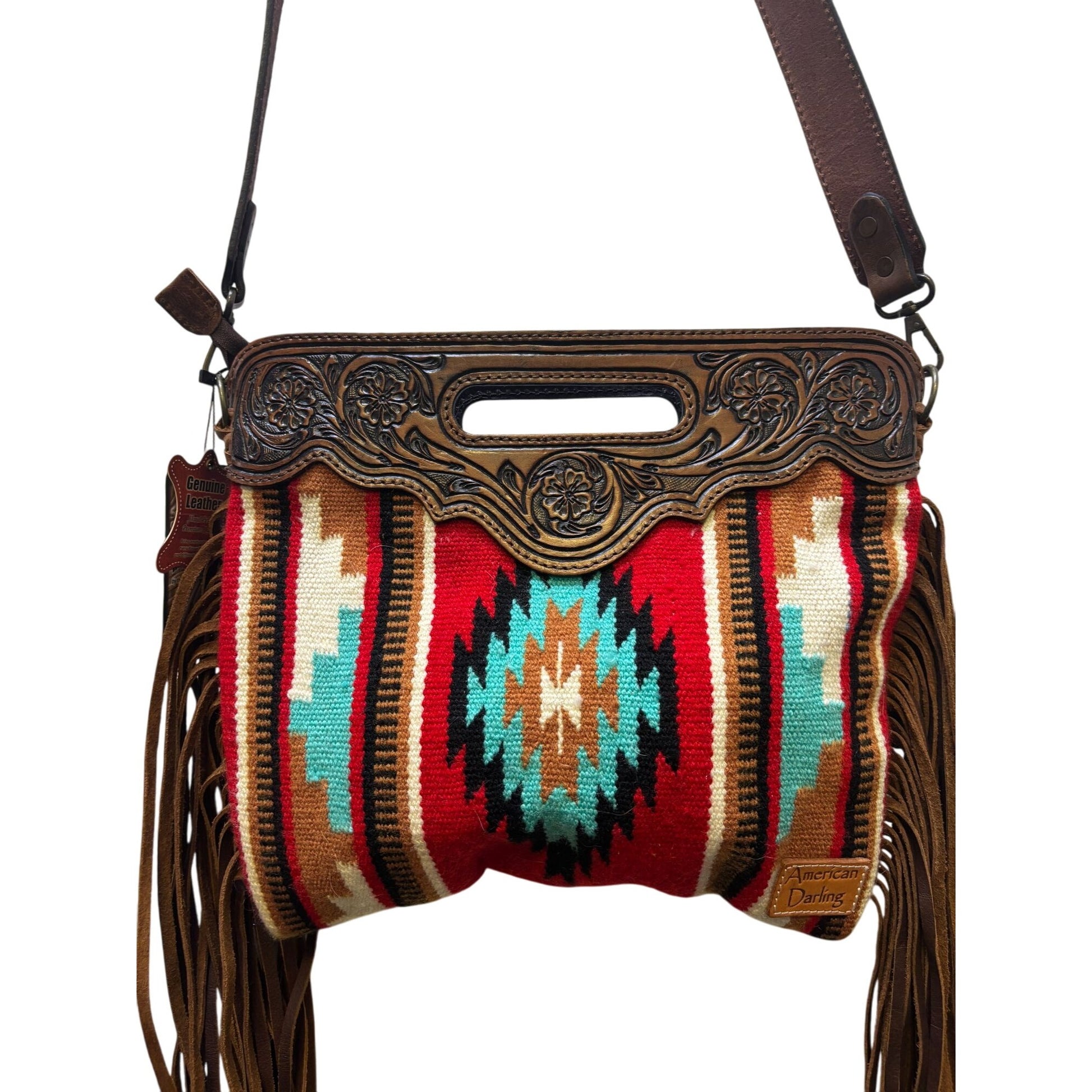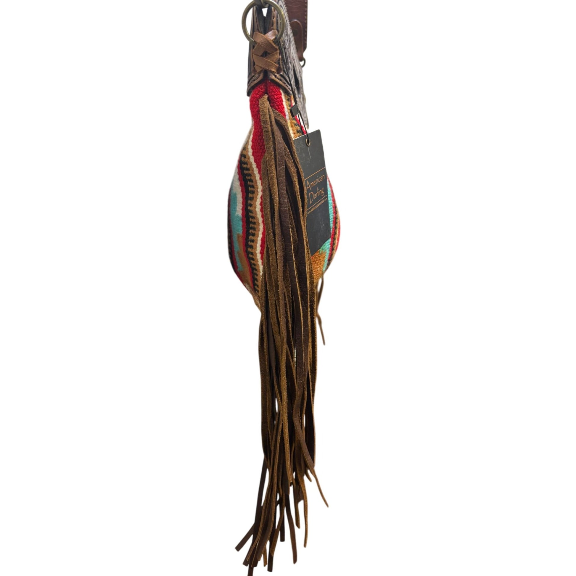 NWT American Darling Western Handbag Woven Aztec Design & Leather Fringe