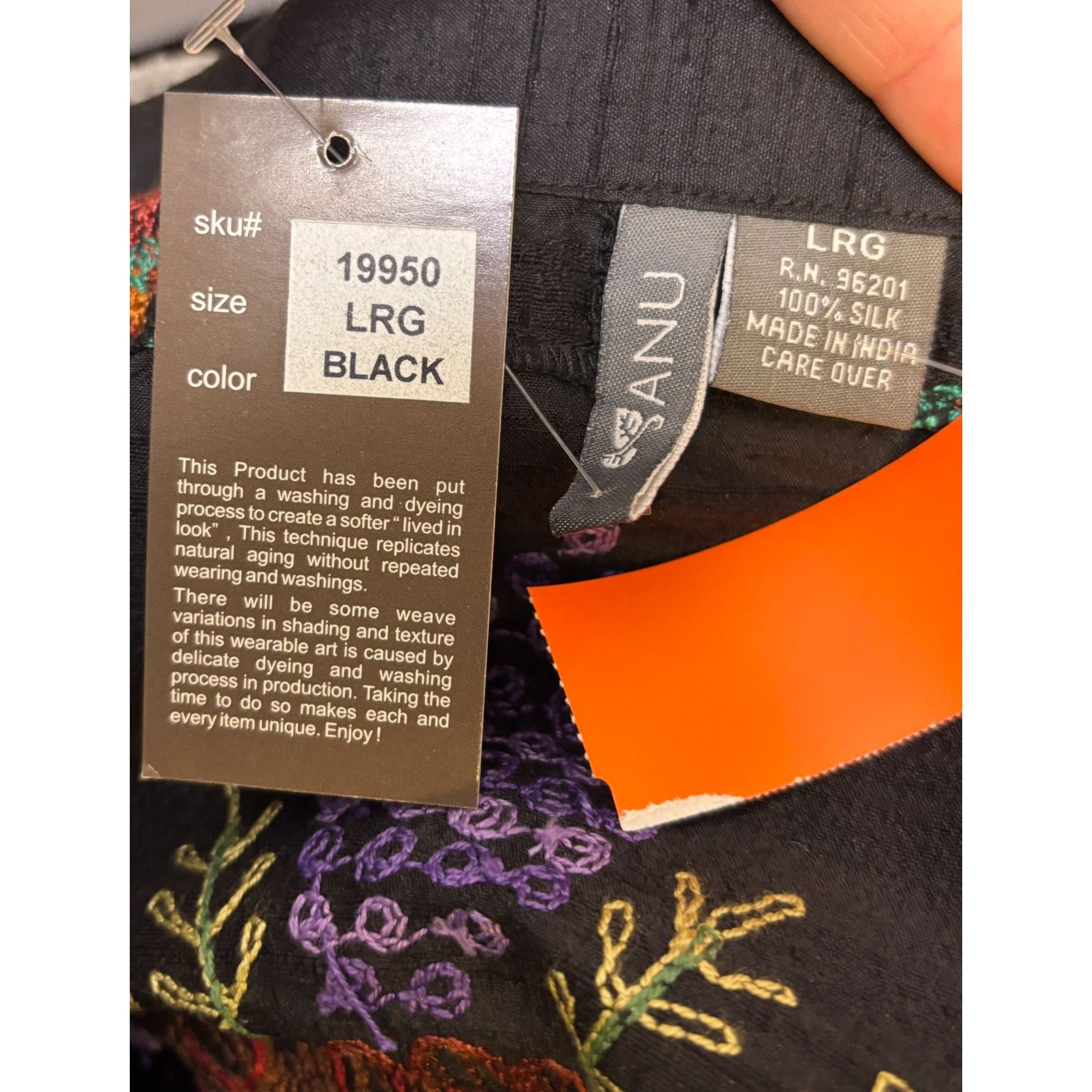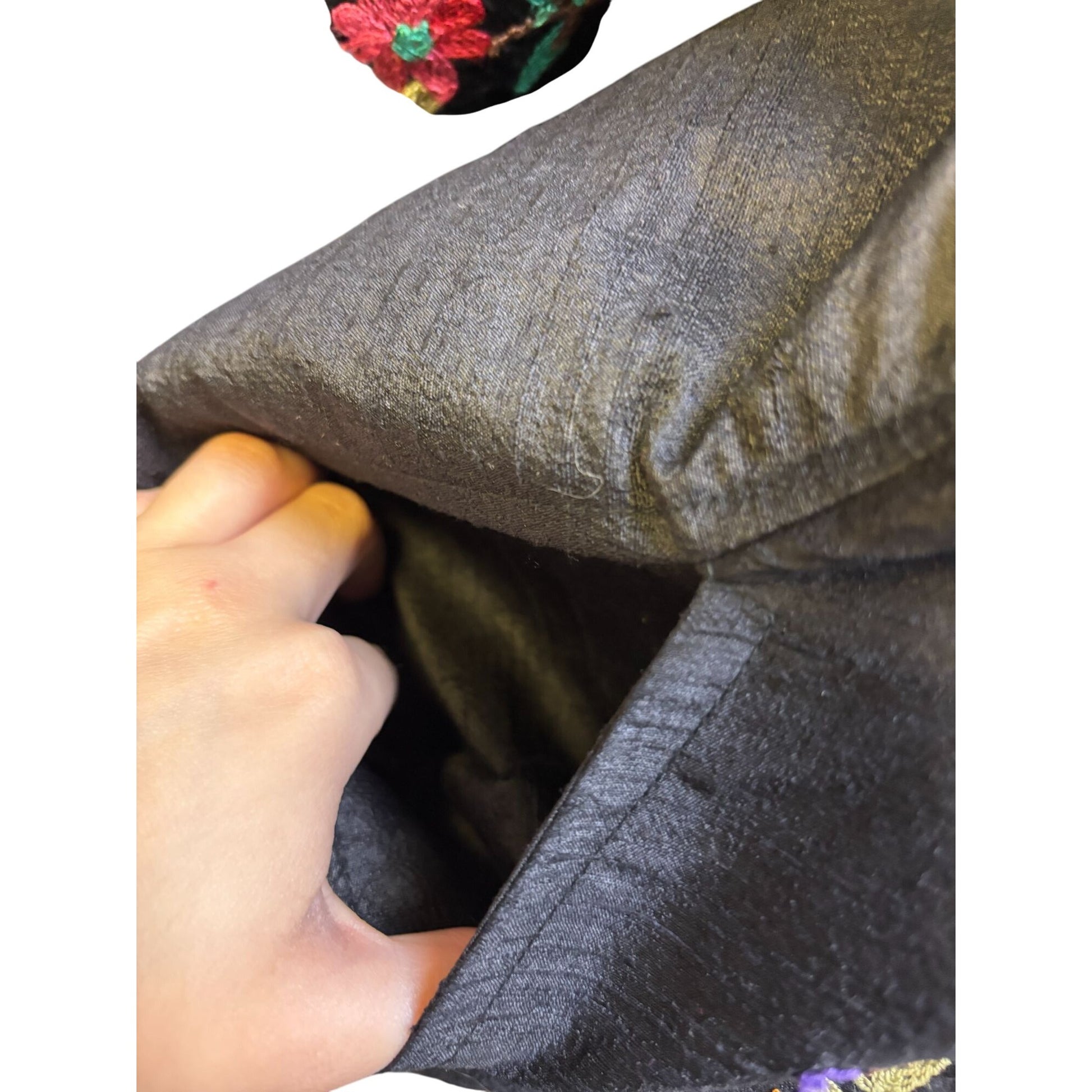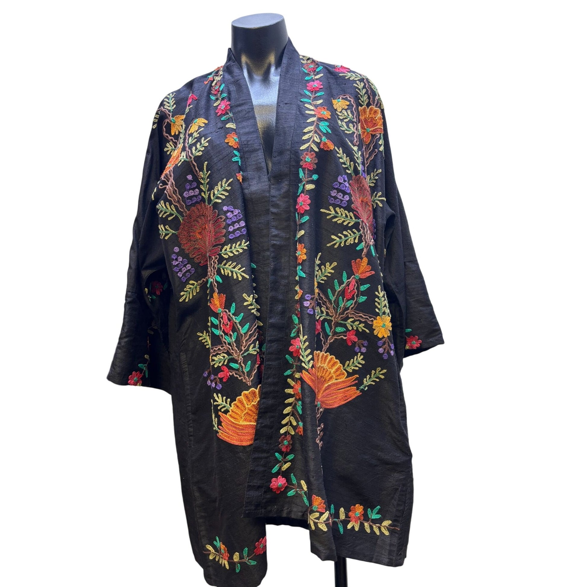 • Elaborate multicolor floral embroidery