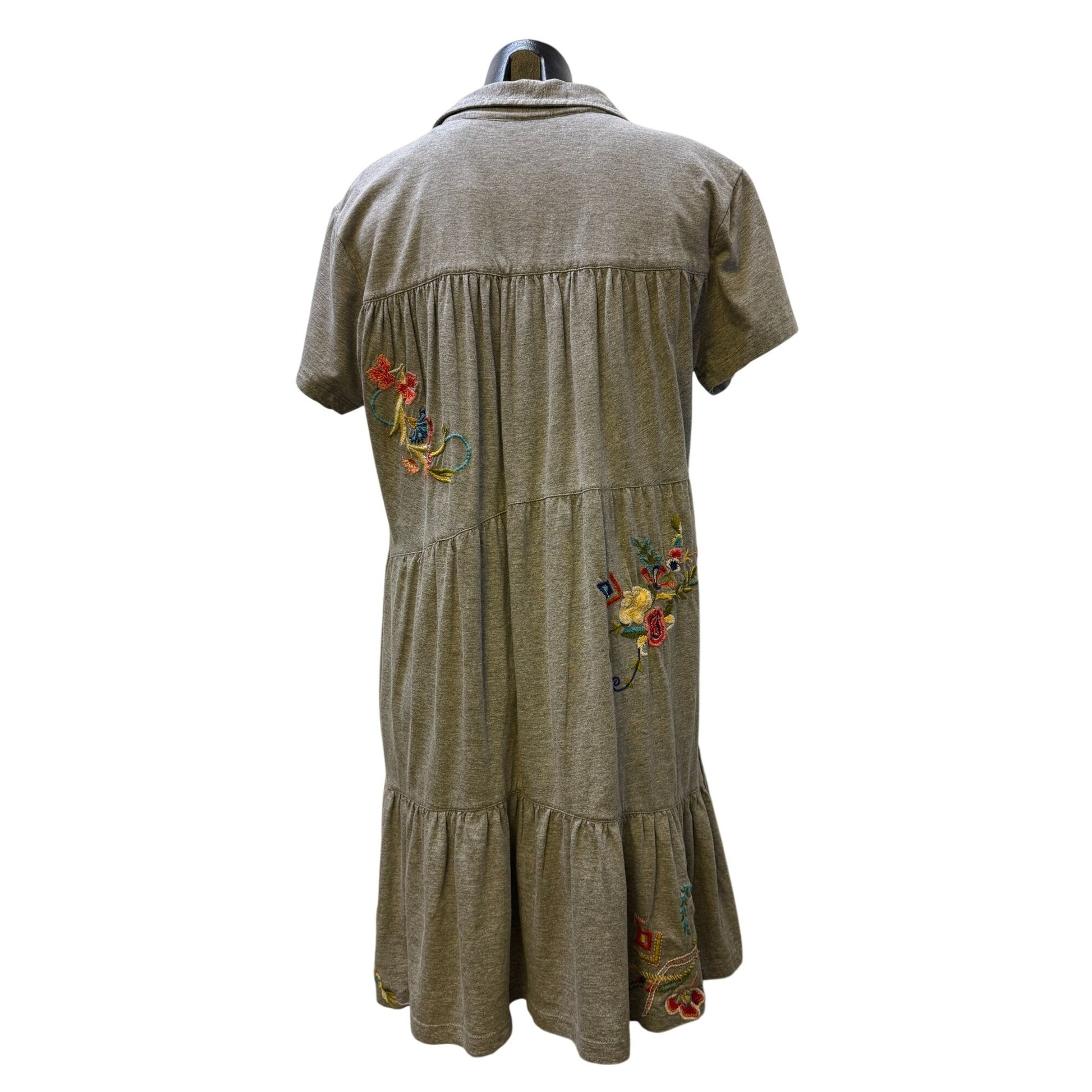 NWT Caite Heather Gray Eliana Embroidered Tiered Button-Up Dress M