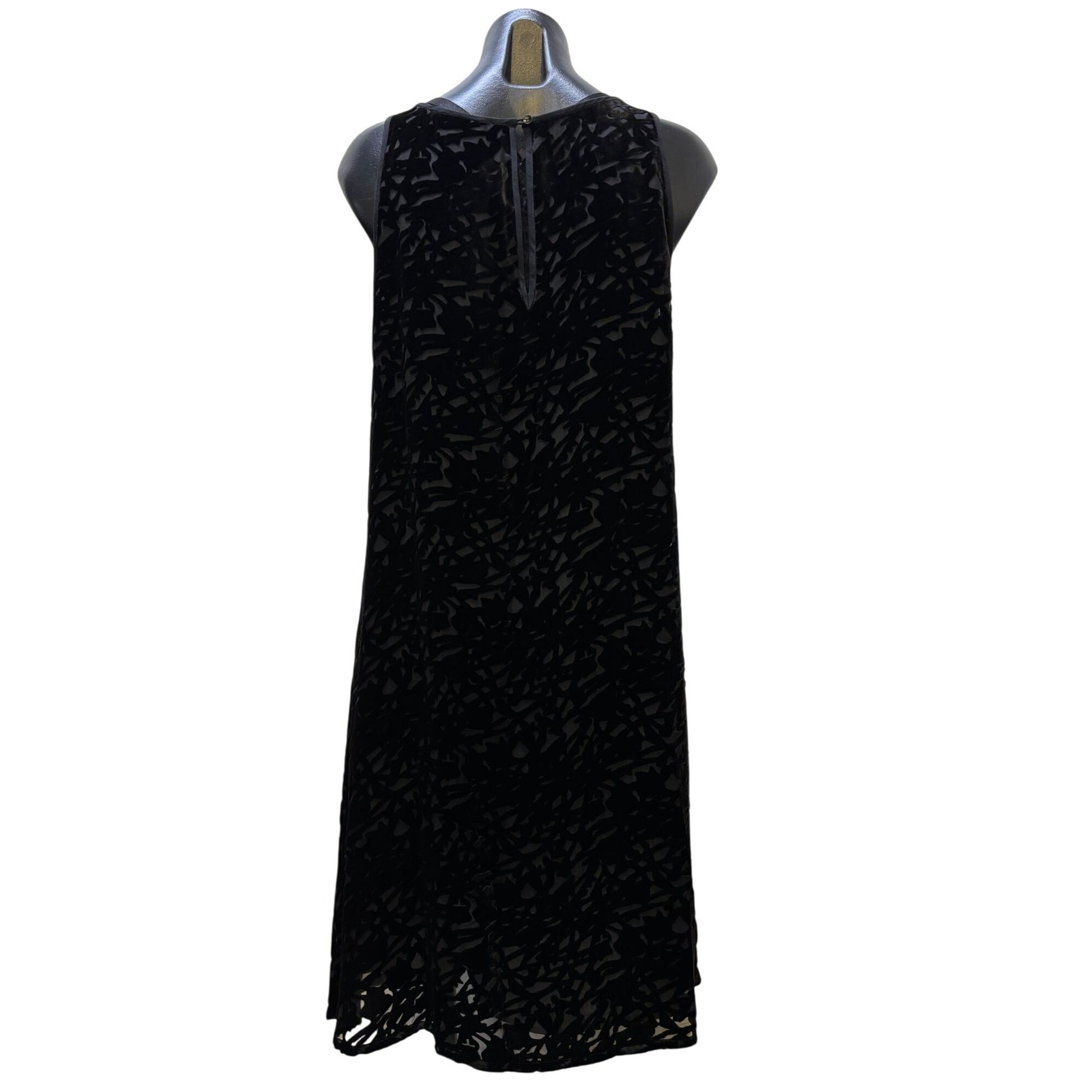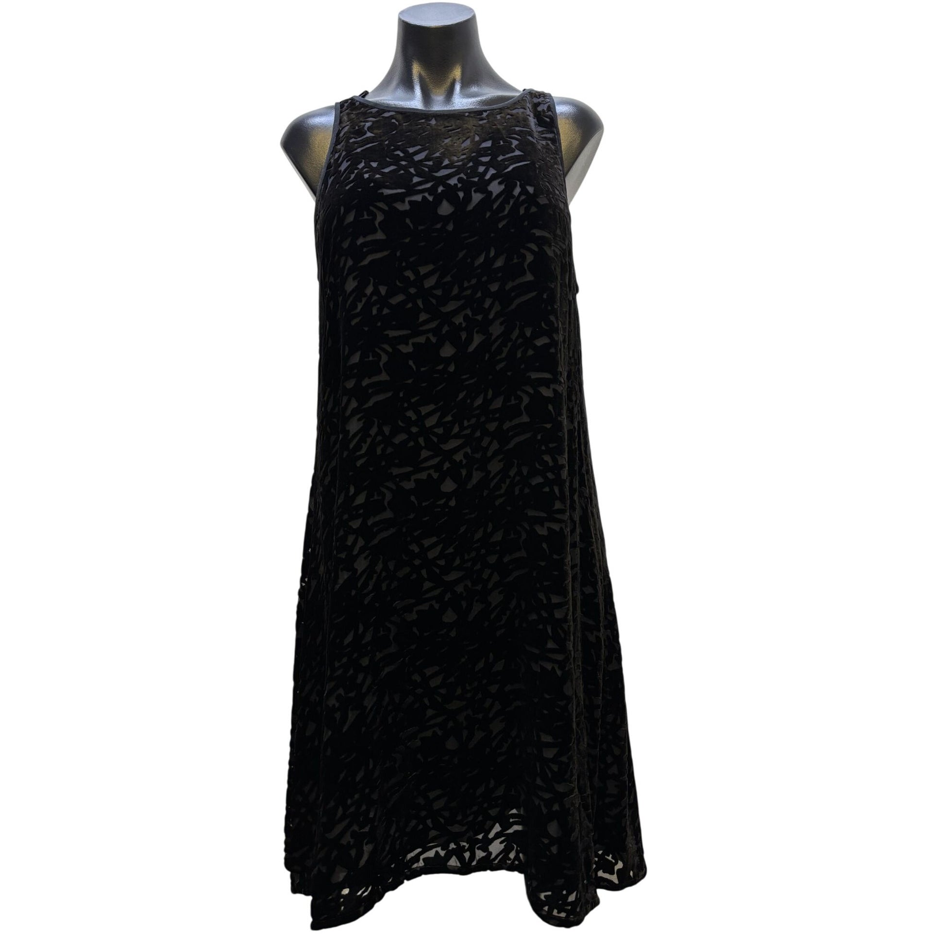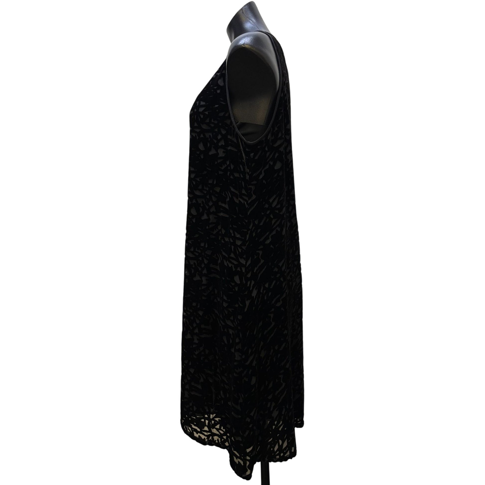 This elegant black velvet dress by Eileen Fisher offers a polished and sophisticated look. The A-line silhouette and ballet neckline ensure timeless style.