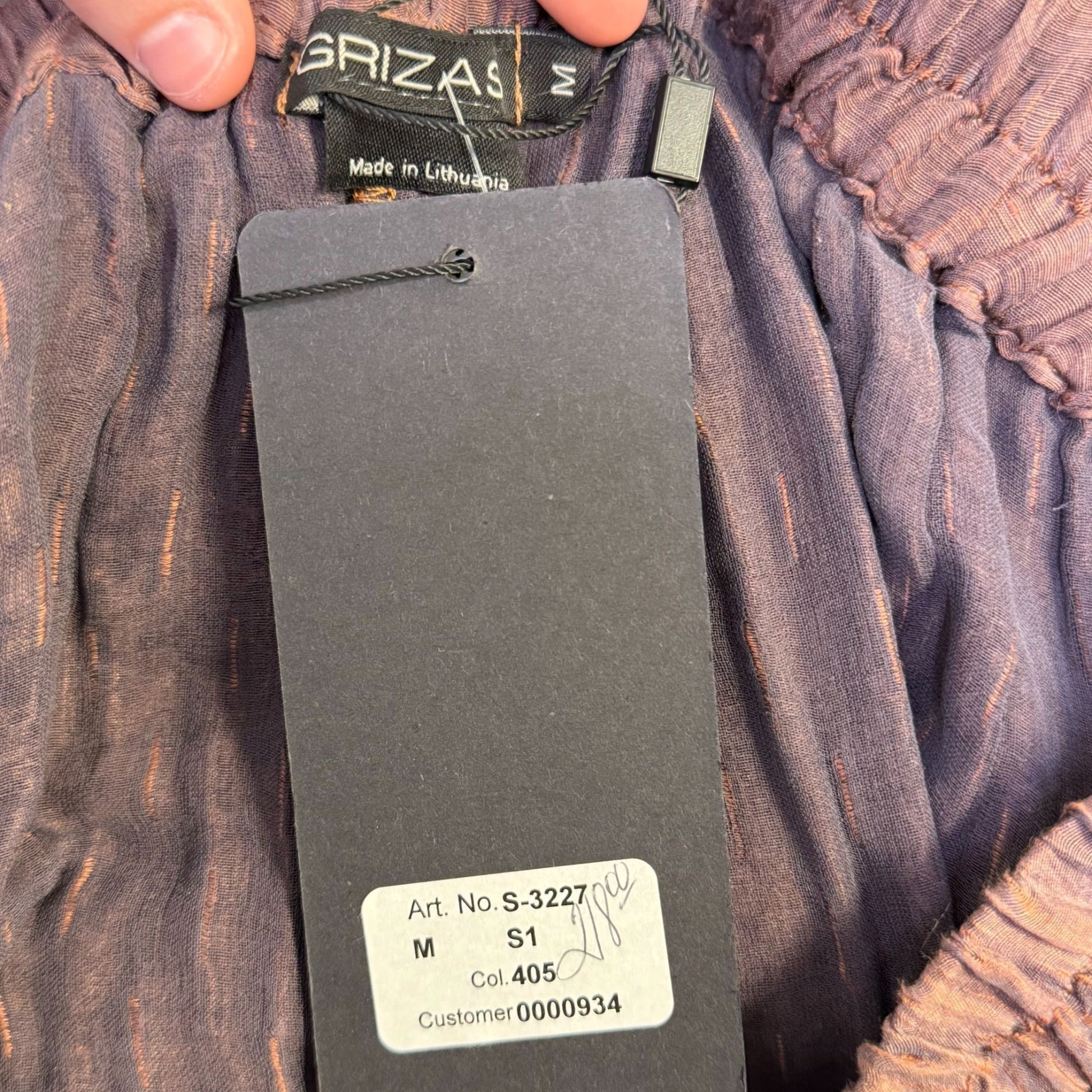 NWT Grizas Crinkle Silk Blend Brown Wide-Leg Pants M