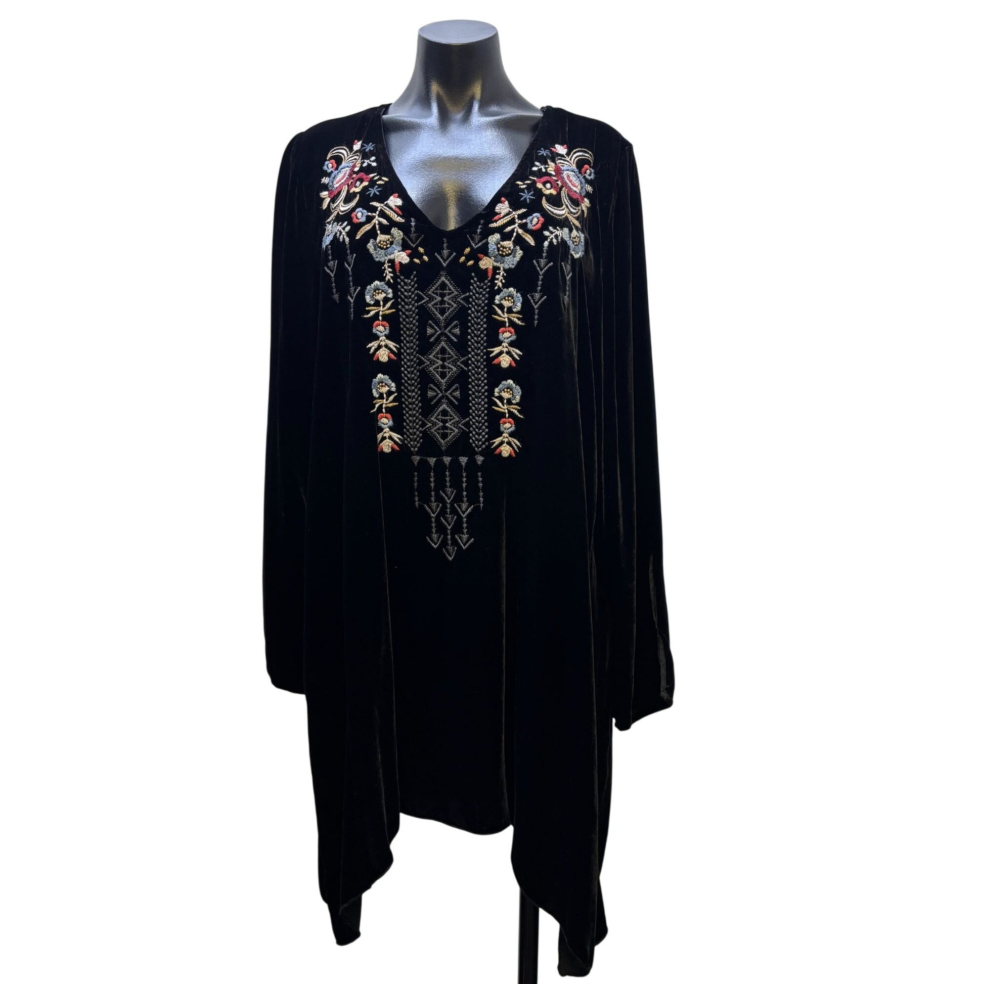 NWT Johnny Was Black Velvet Embroidered Tunic L V-Neck Long Sleeve