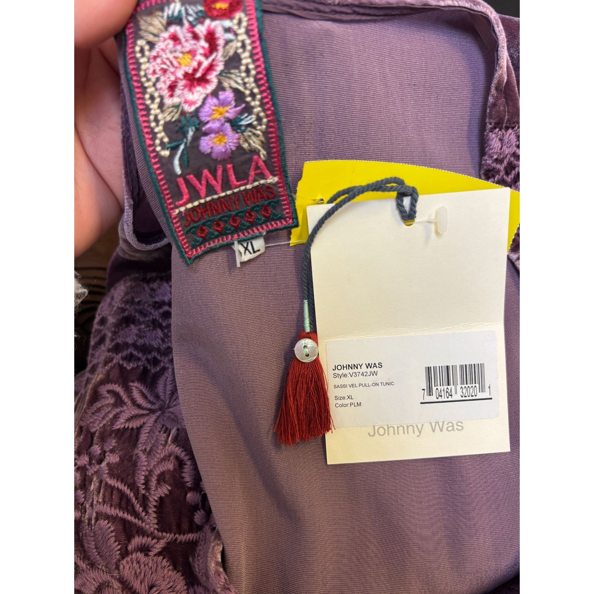 NWT Johnny Was Purple Velvet Embroidered Tunic L Sleeve V-Neck