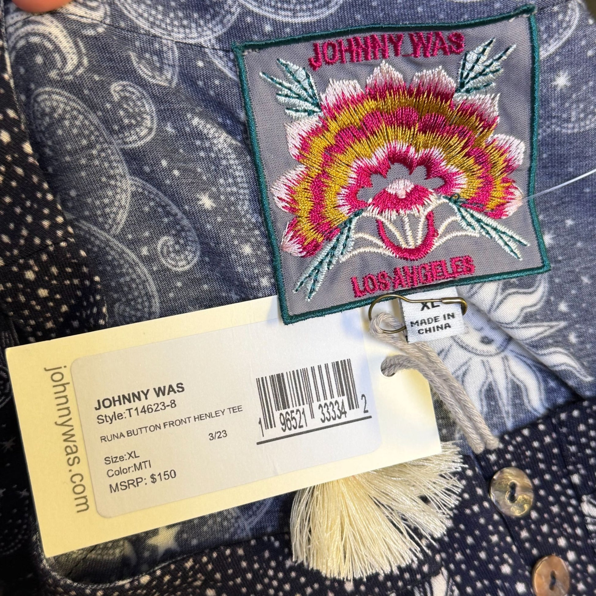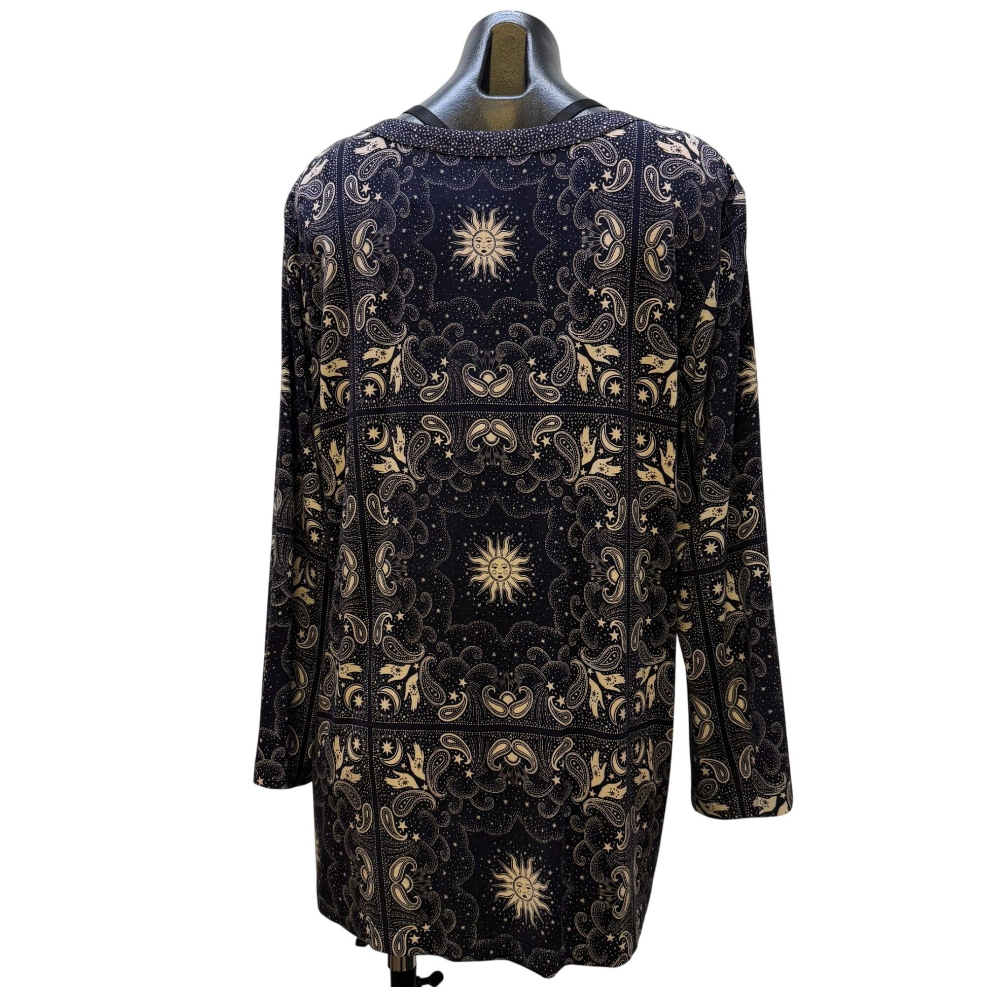 NWT Johnny Was Runa Button Front Long Sleeve Blouse Navy & Cream Paisley Sun Print XL