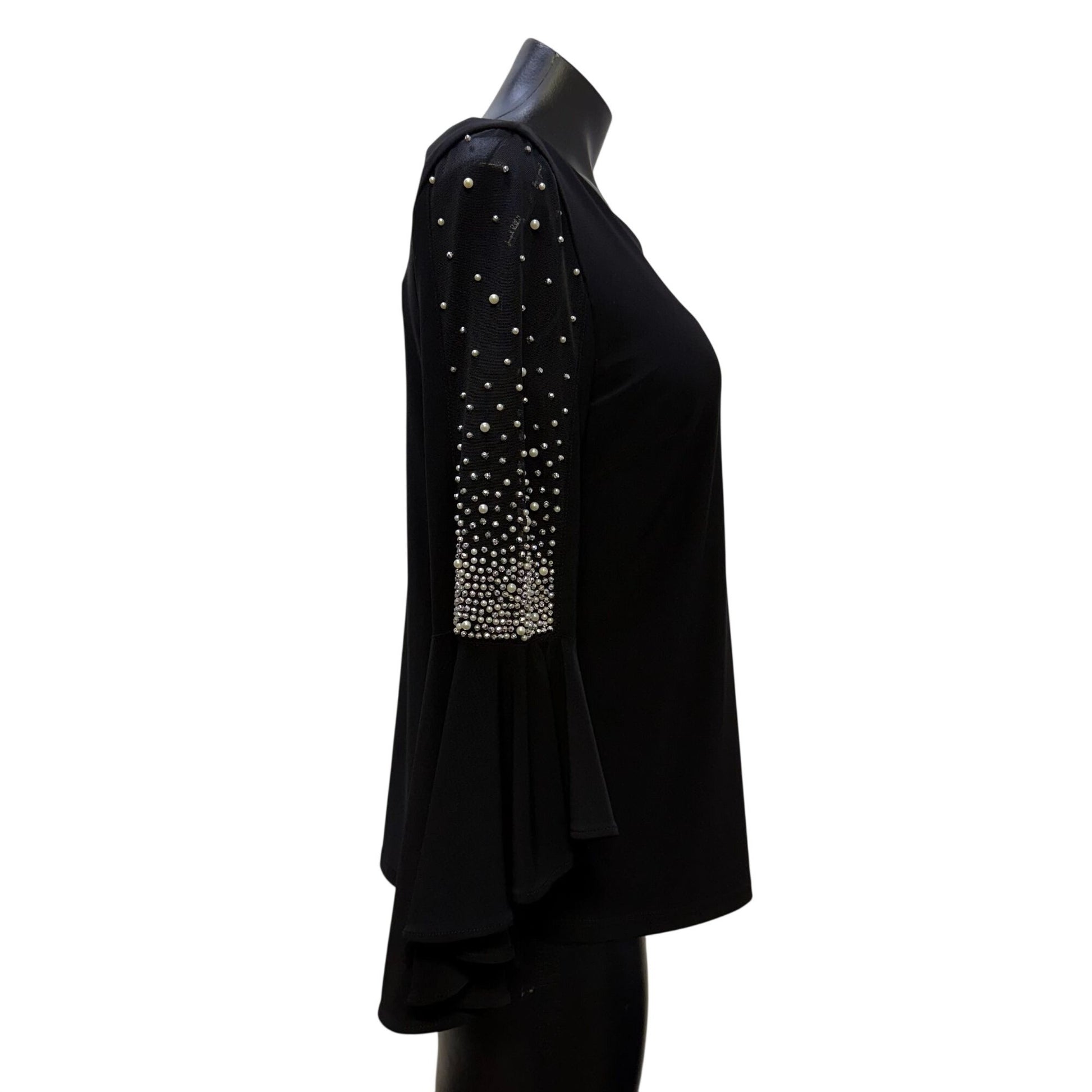 NWT Joseph Ribkoff Black Bell Sleeve Embellished Blouse Size 8