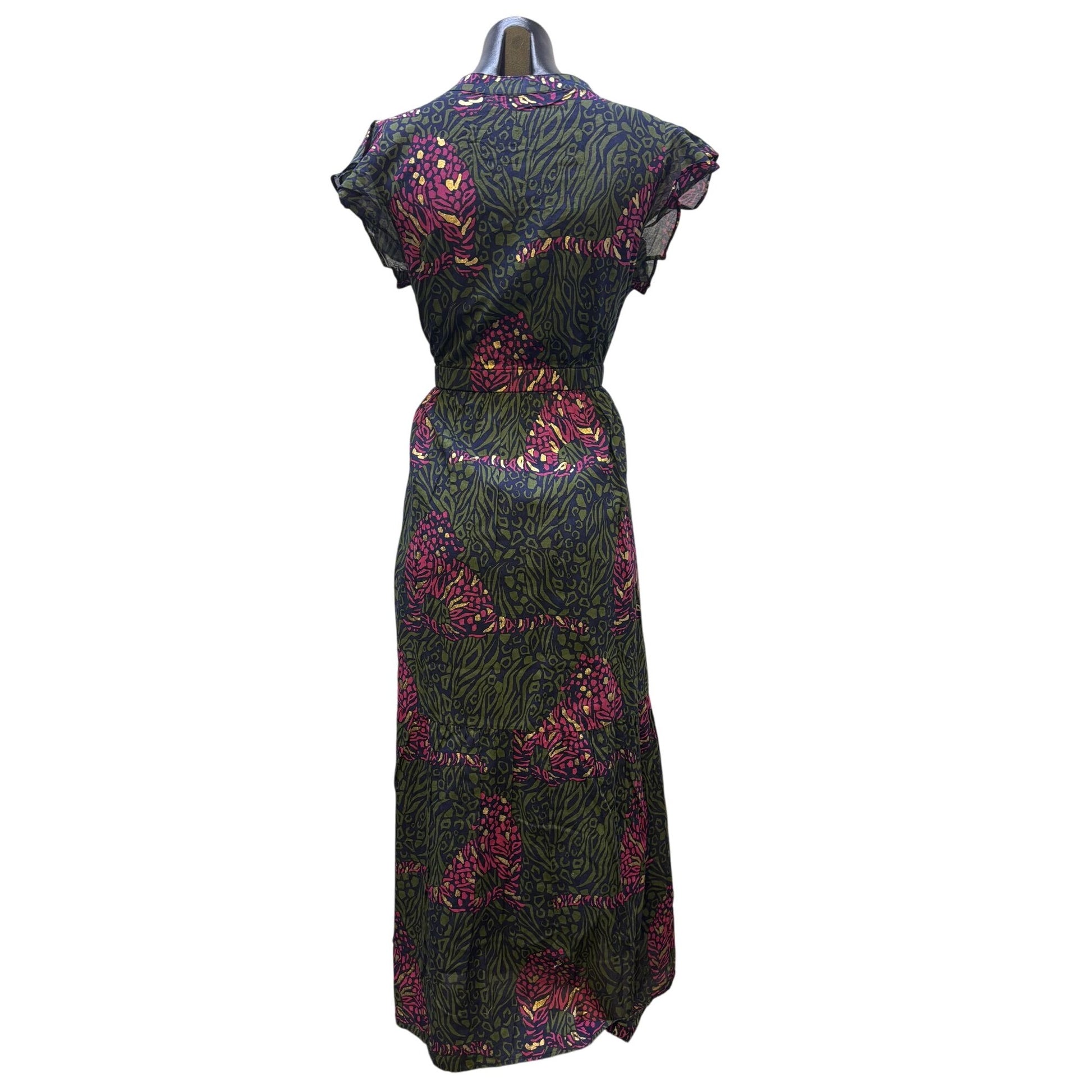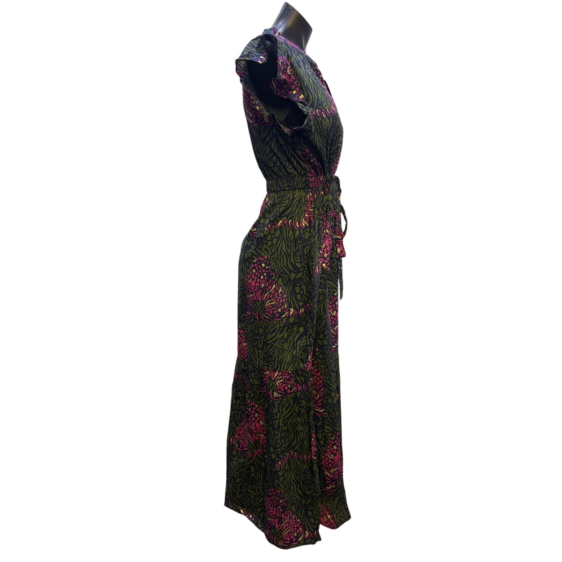 NWT Jude Connally Green Multi-Print Maxi Dress With Tie Waist & Cap Sleeves S