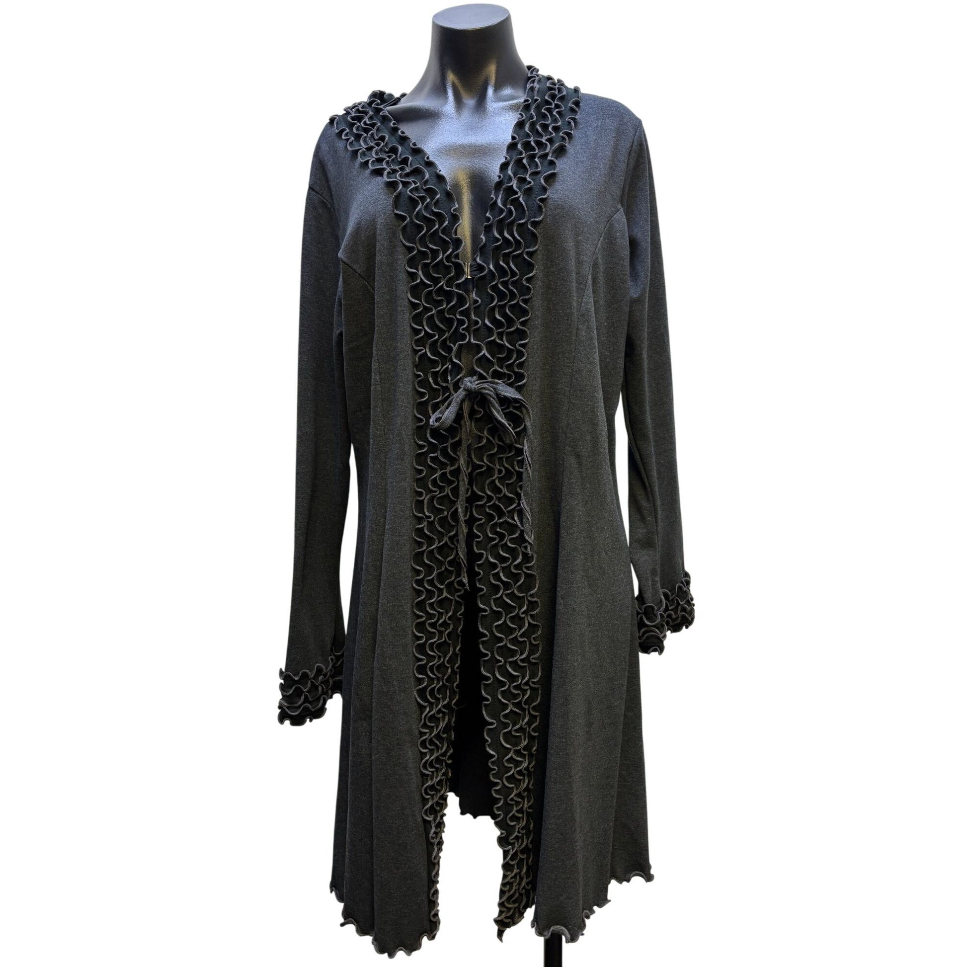 NWT Laura H Hlavac Gray Open Front Ruffled Edge Long Cardigan XL