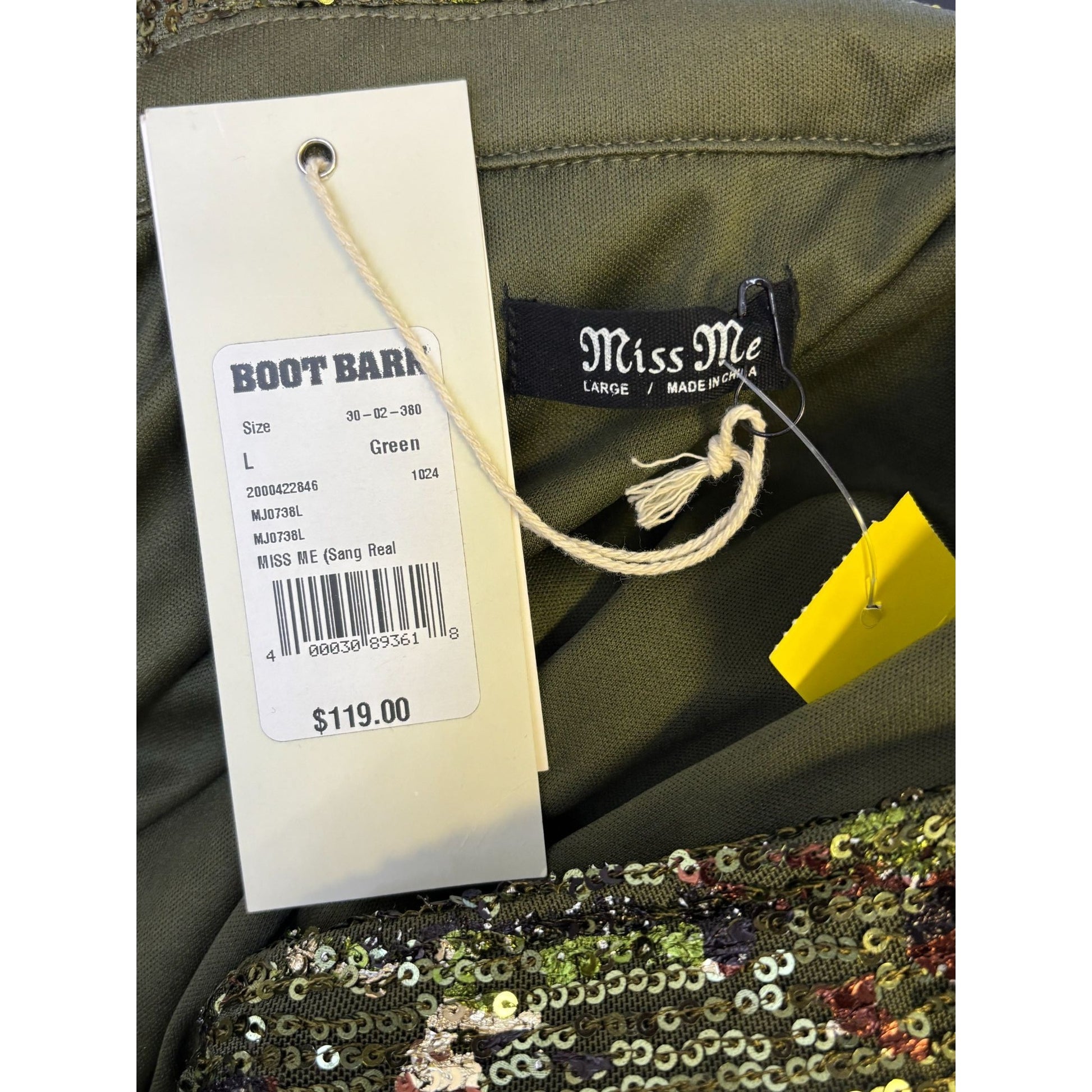 NWT Miss Me Green Sequin Jacket With Drawstring Waist L