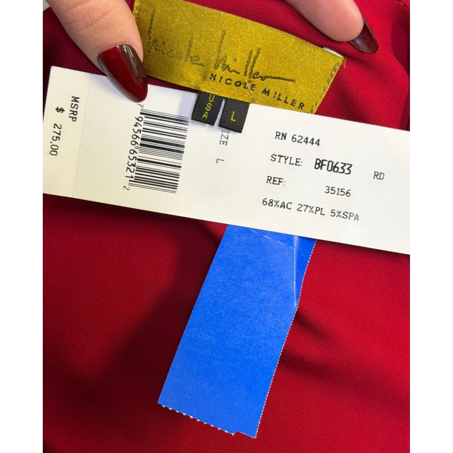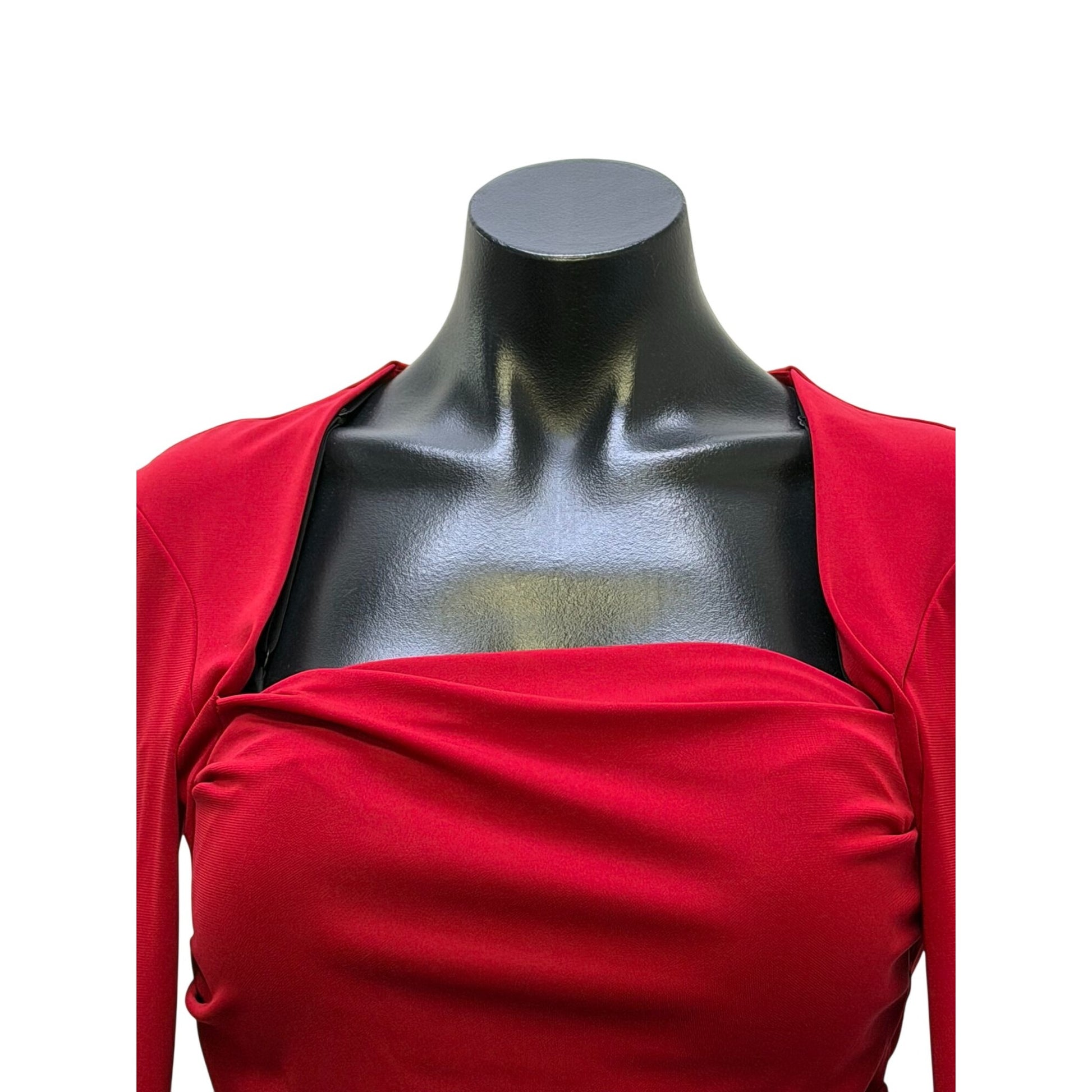 NWT Nicole Miller Red Long Sleeve Ruched Stretch Dress Size L