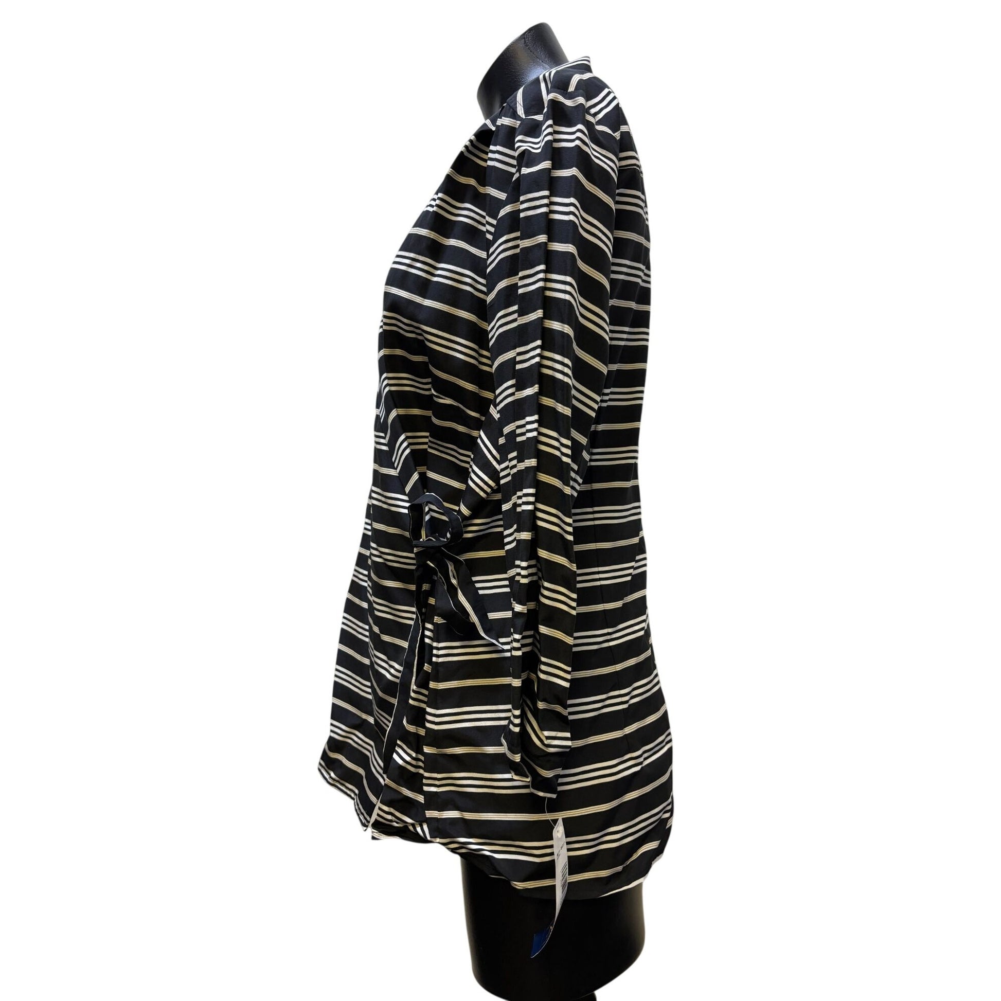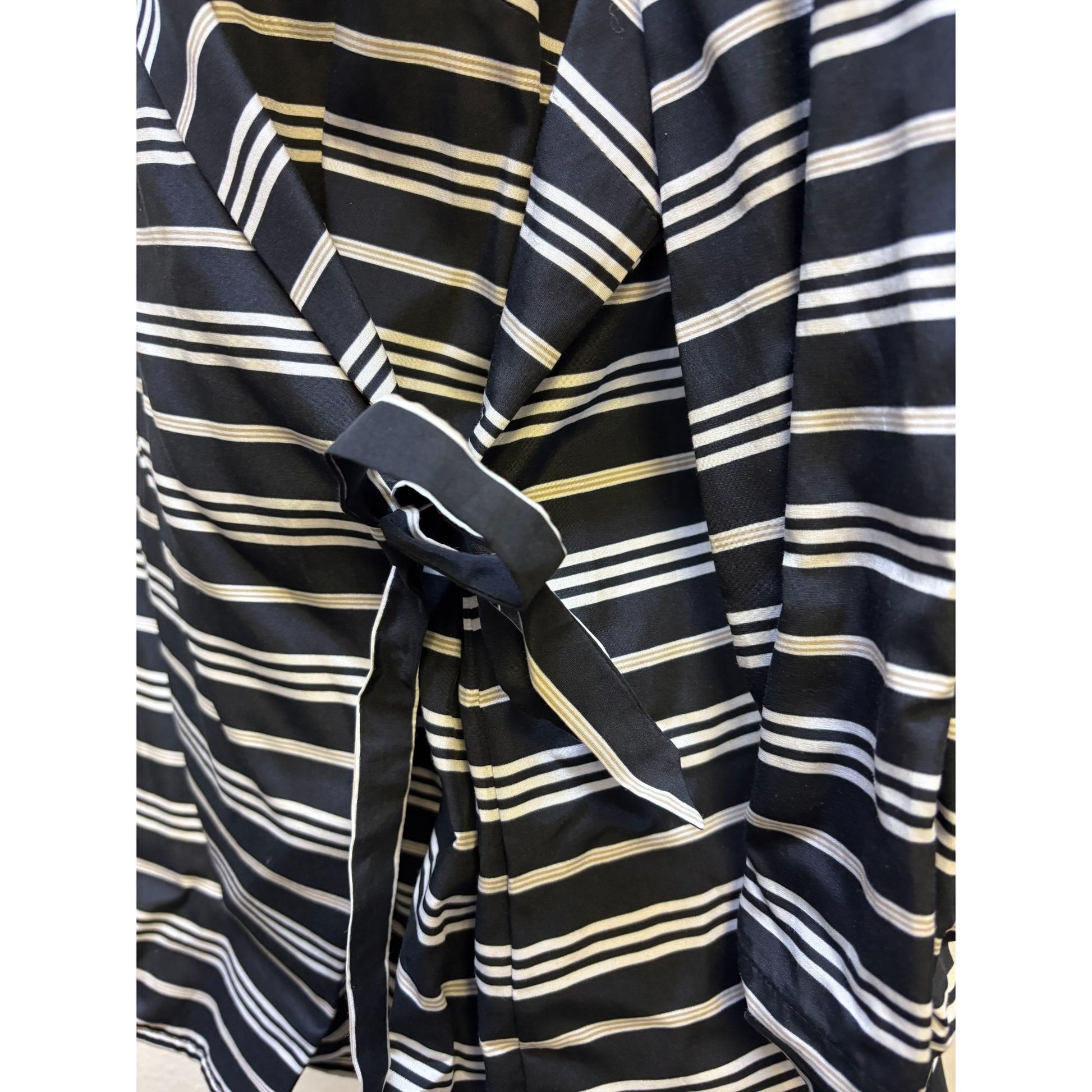 NWT Pendleton Black & White Striped Silk Blouse With Wrap Style XL