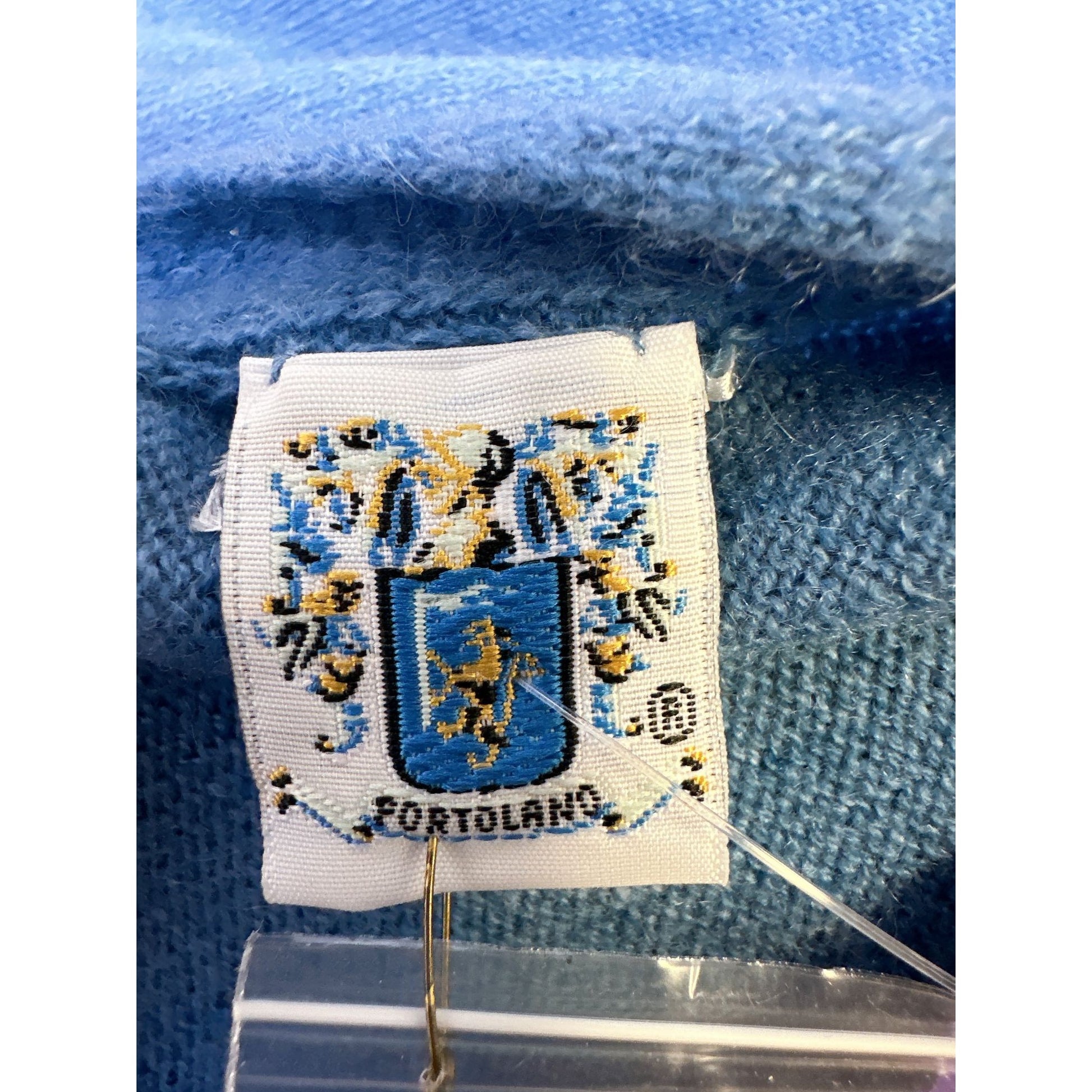 A sophisticated drape cardigan sweater by Portolano, crafted from luxurious 100% cashmere. The open front design enhances an elegant silhouette, making it an ideal choice for layering in cooler weather. The small size ensures a tailored fit, while the blue hue adds a touch of understated elegance.