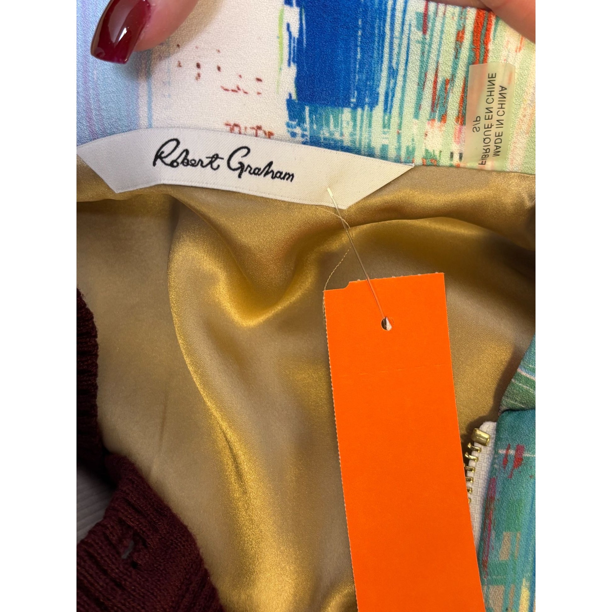 NWT Robert Graham Abstract Print Bomber Jacket White Multi S