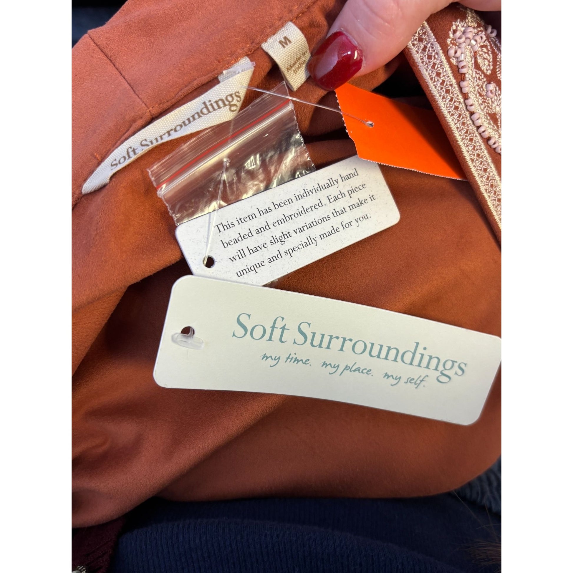 NWT Soft Surroundings Embroidered Faux Suede Kimono Jacket Orange M