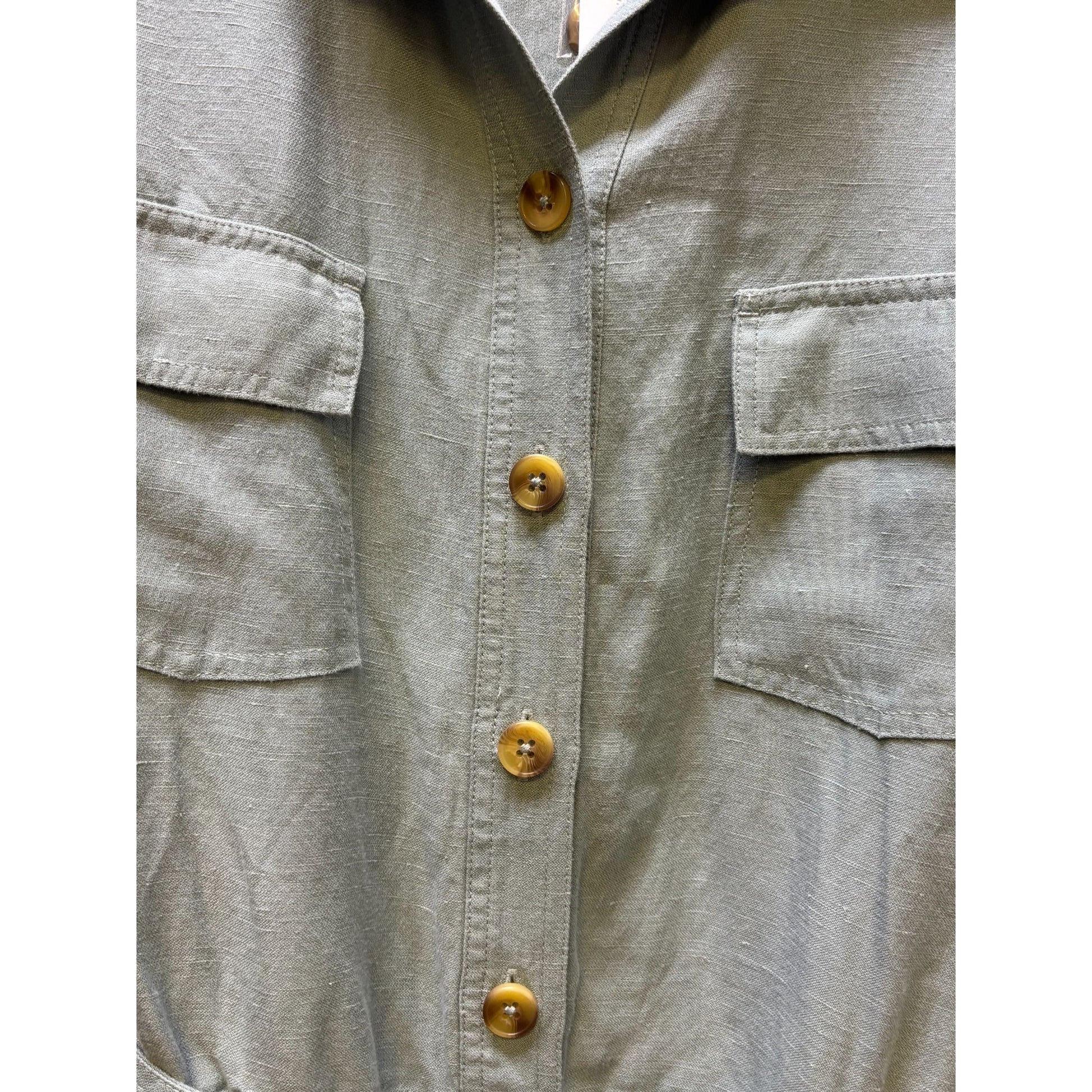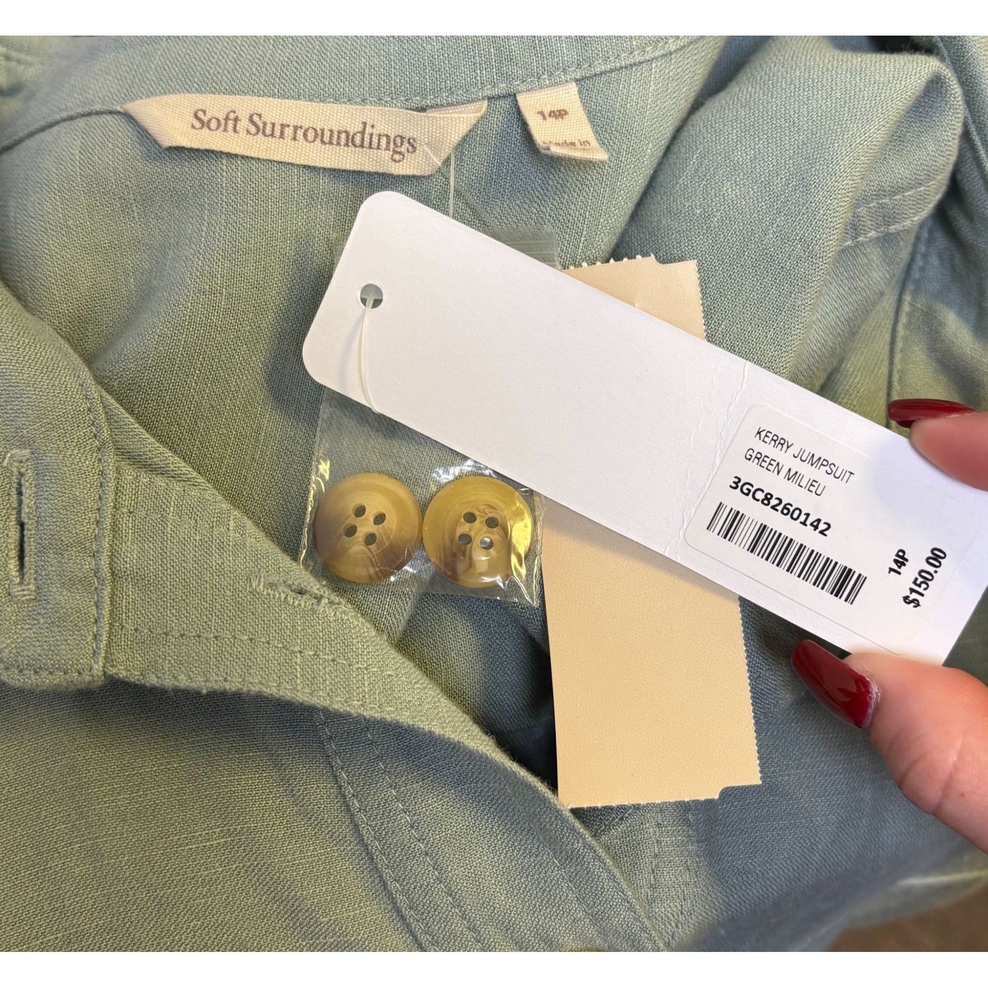 NWT Soft Surroundings Green Button-Up Belted Jumpsuit 14P