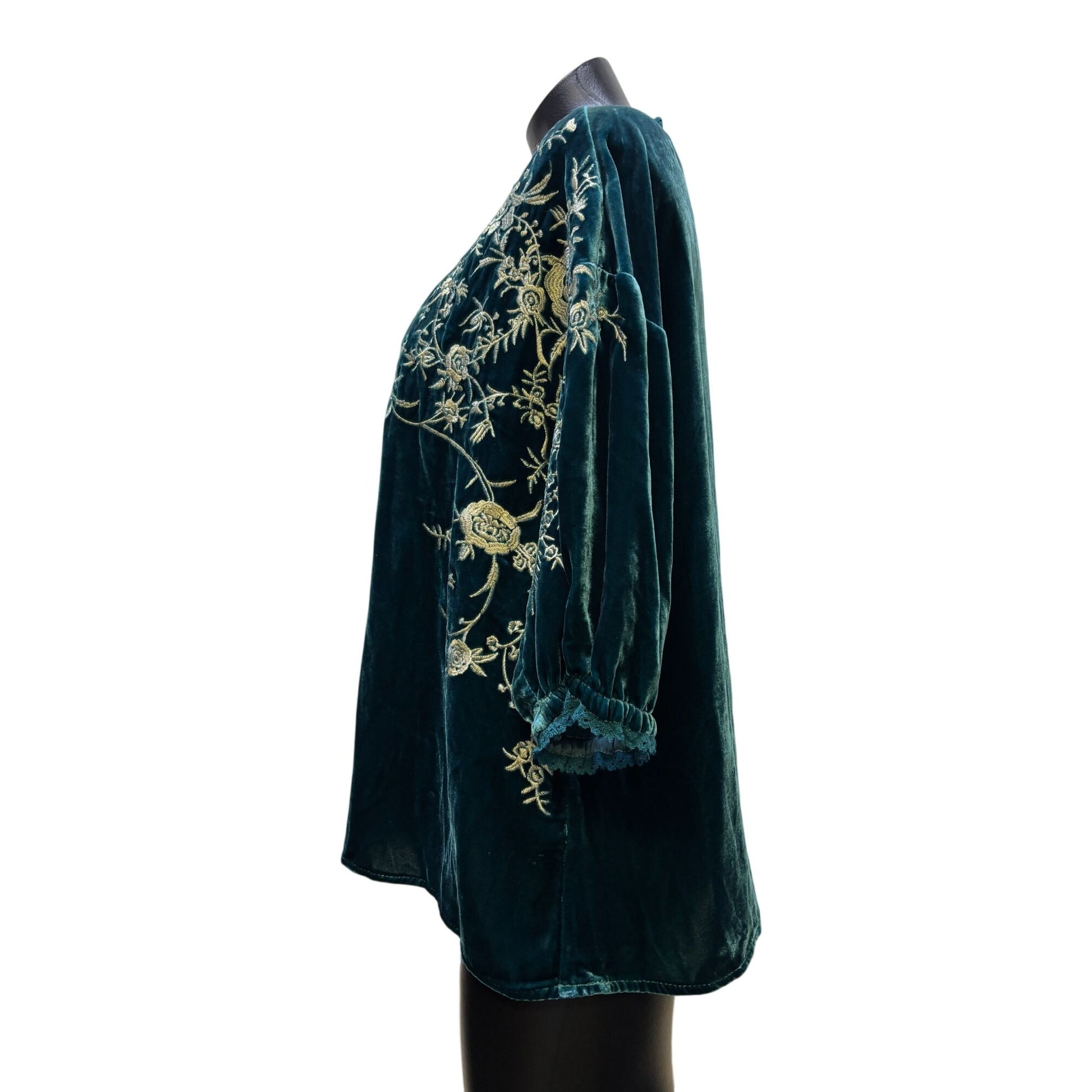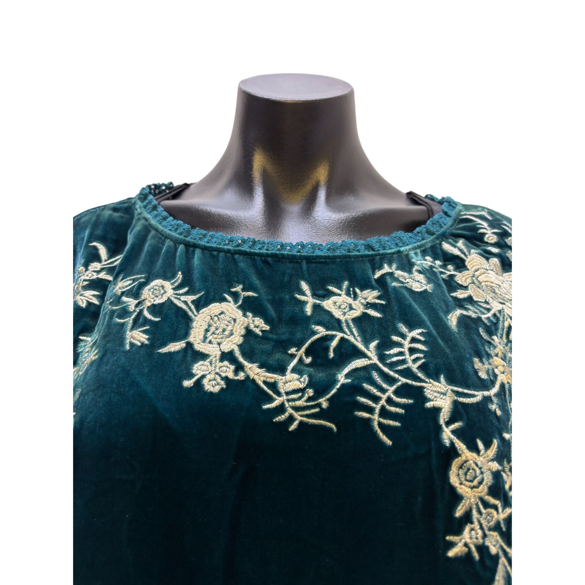 NWT Sundance Velvet Embroidered Green Top PXL Blouse 3/4 Sleeves