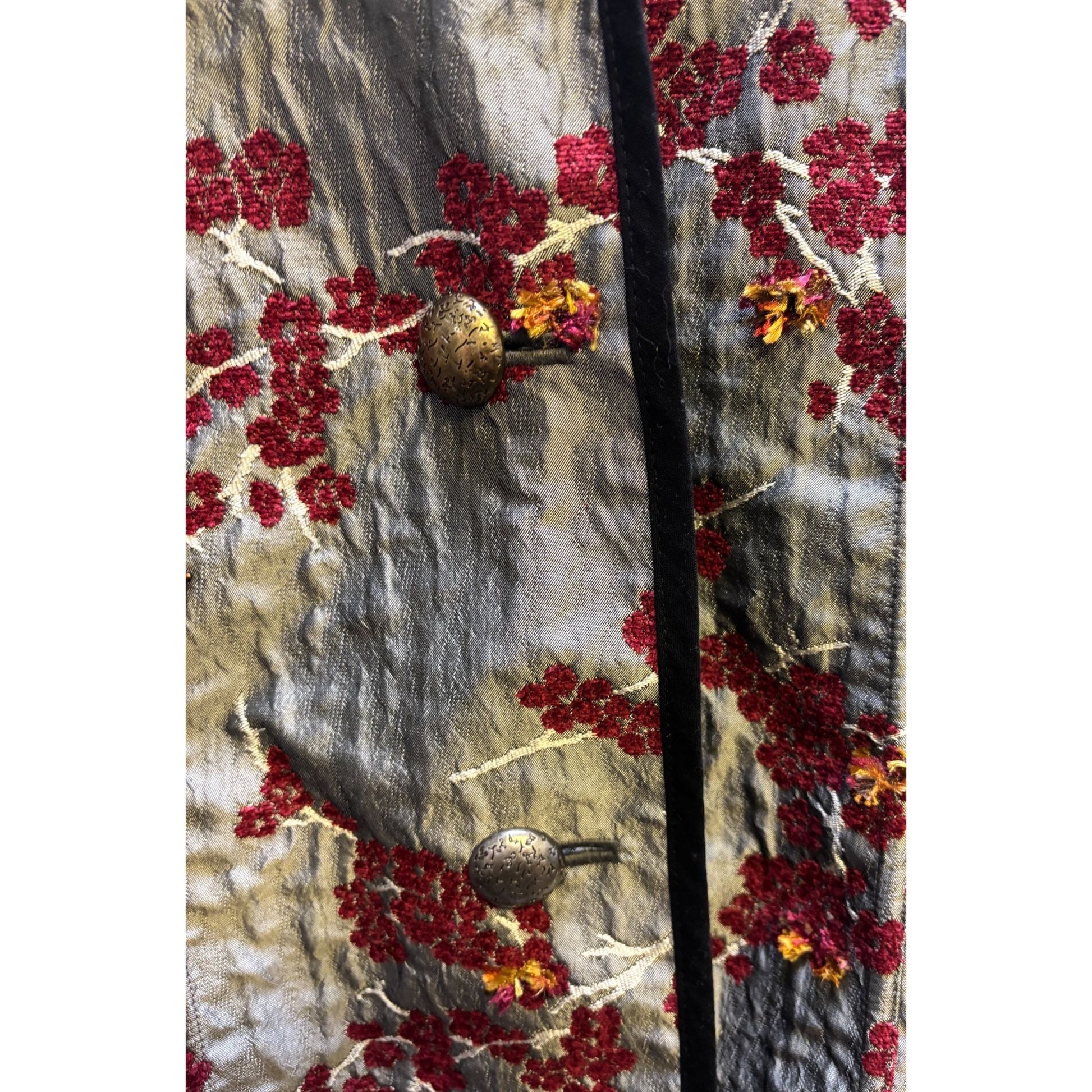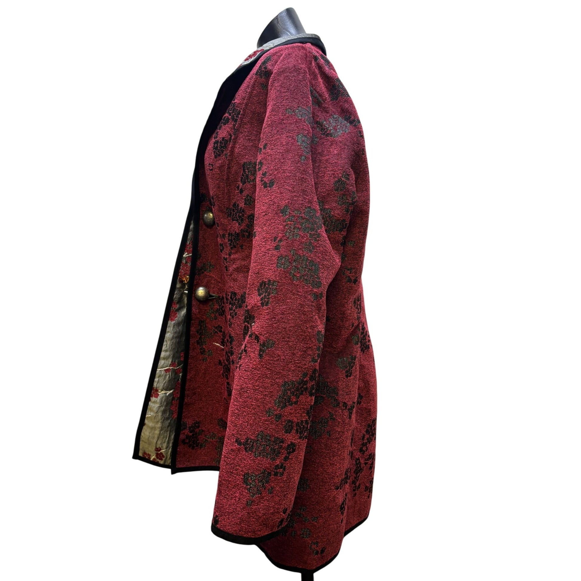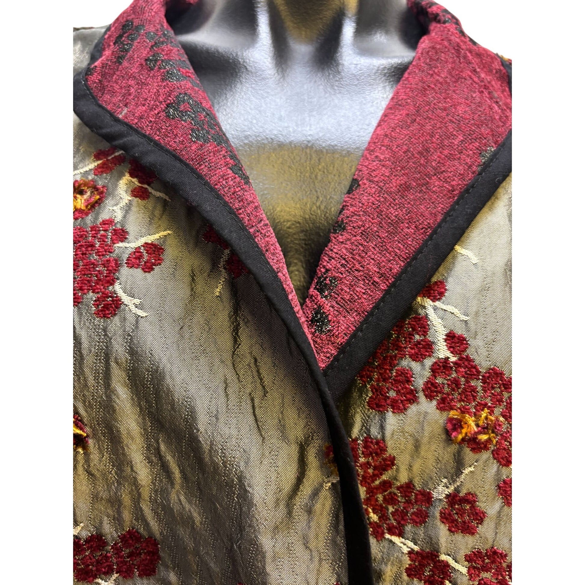 NWT Trimdin Reversible Embroidered Coat Gray Multi Floral Pattern L