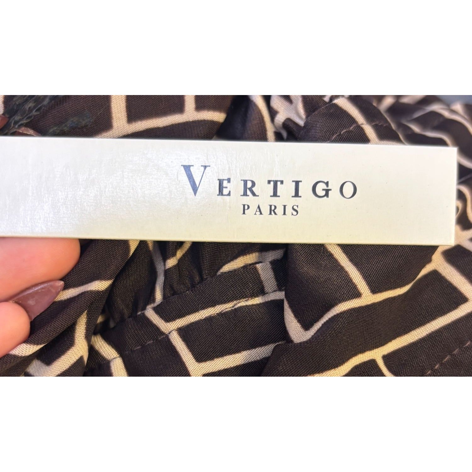 This Vertigo Paris dress features a striking brown and tan geometric print, offering a sophisticated aesthetic suitable for professional settings. Designed in an XL size, it provides a comfortable fit while maintaining elegance. The dress's unique pattern and flattering cut make it an excellent choice for enhancing your professional wardrobe.