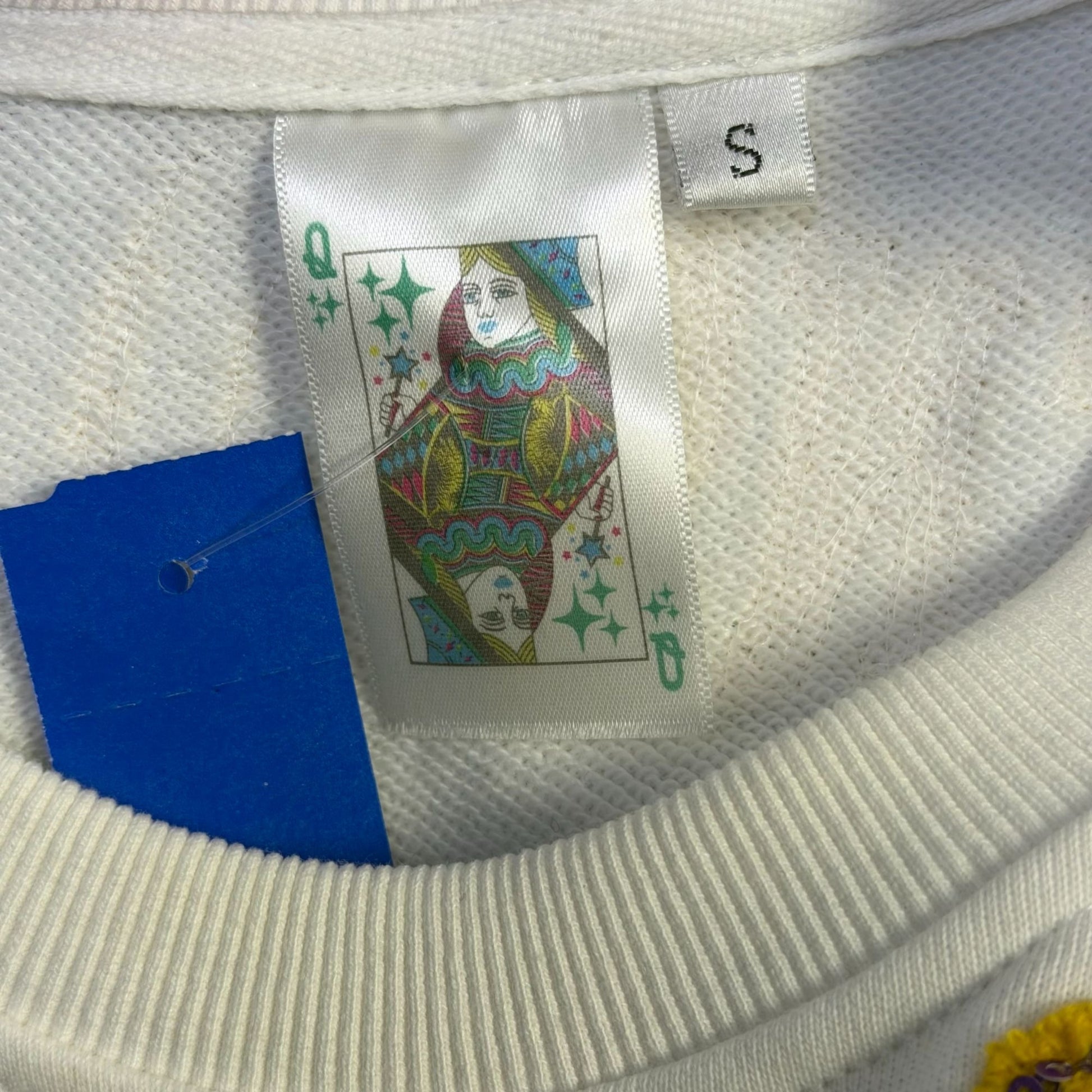 Queen Of Sparkles Cheer-Themed White Sweater Embroidery Crewneck Size S