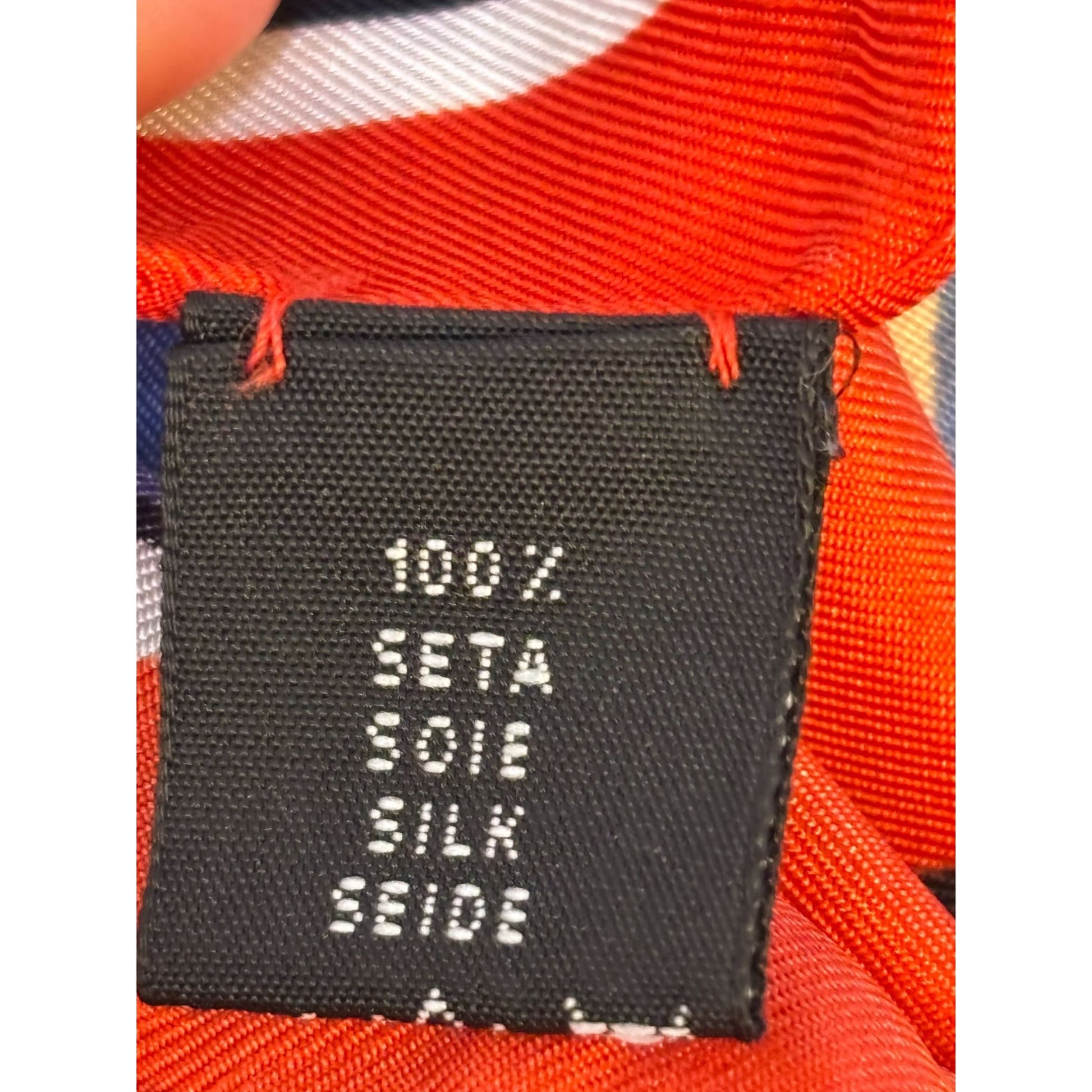 This Ruggiero Bignardi scarf showcases an elegant flamingo design intertwined with geometric patterns. Crafted from 100% silk, it offers a luxurious feel and vibrant colors, making it a statement piece for any wardrobe.