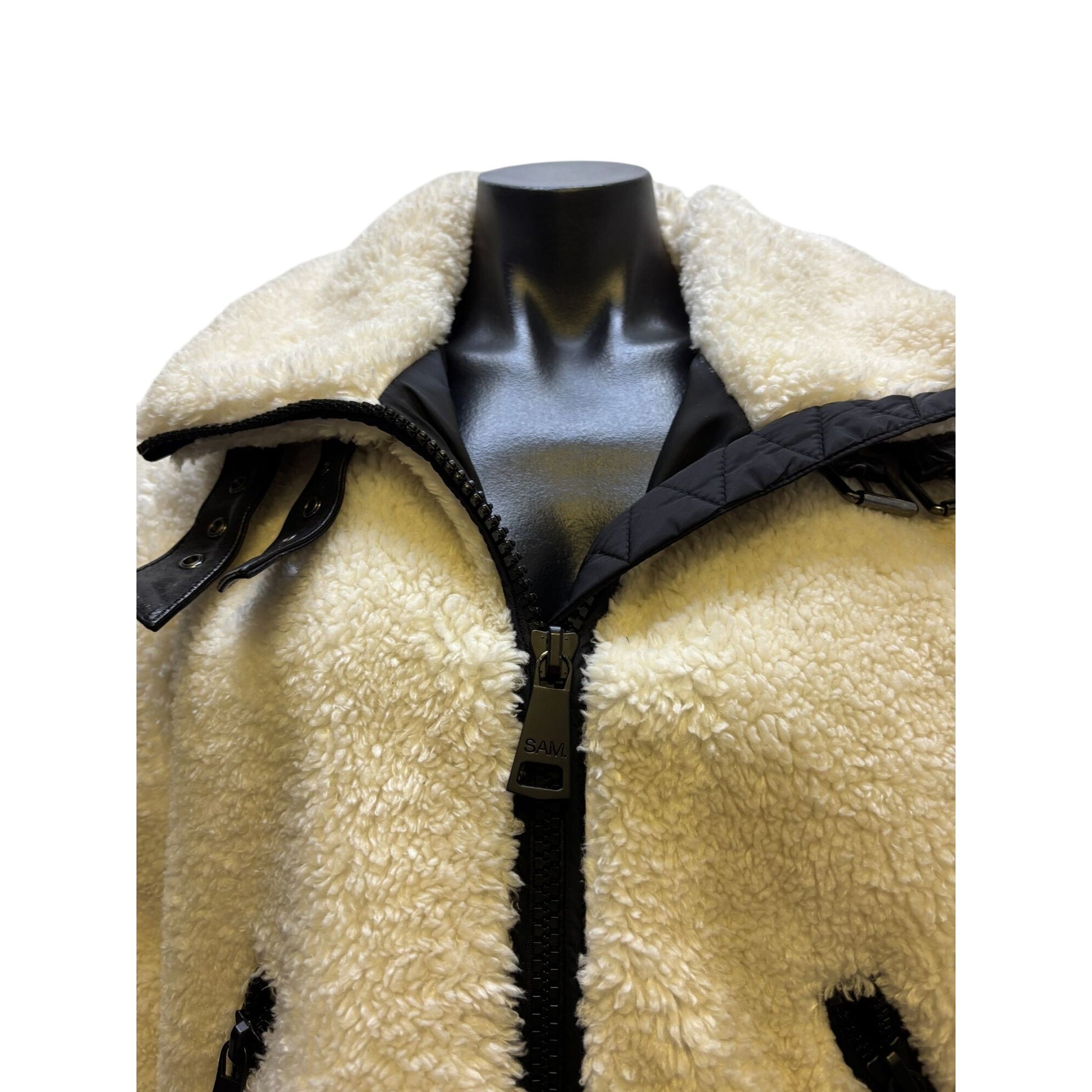 SAM New York White Fleece Jacket With Black Accents Size M