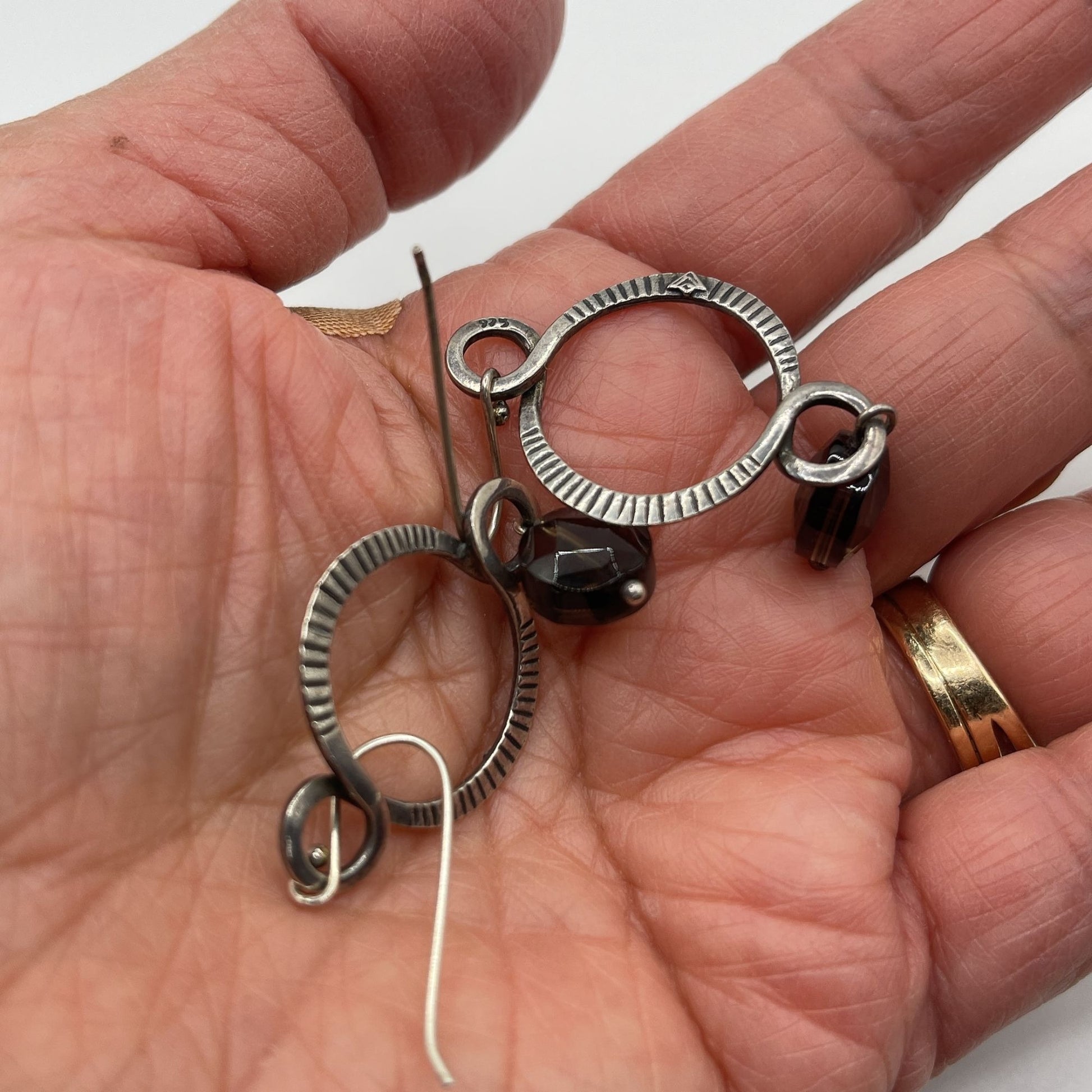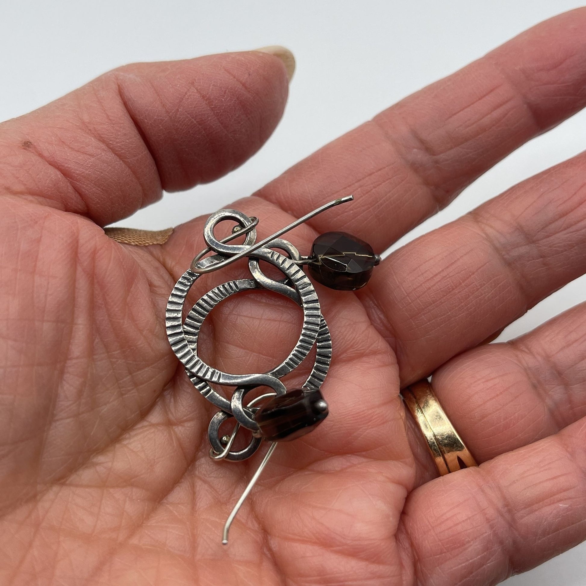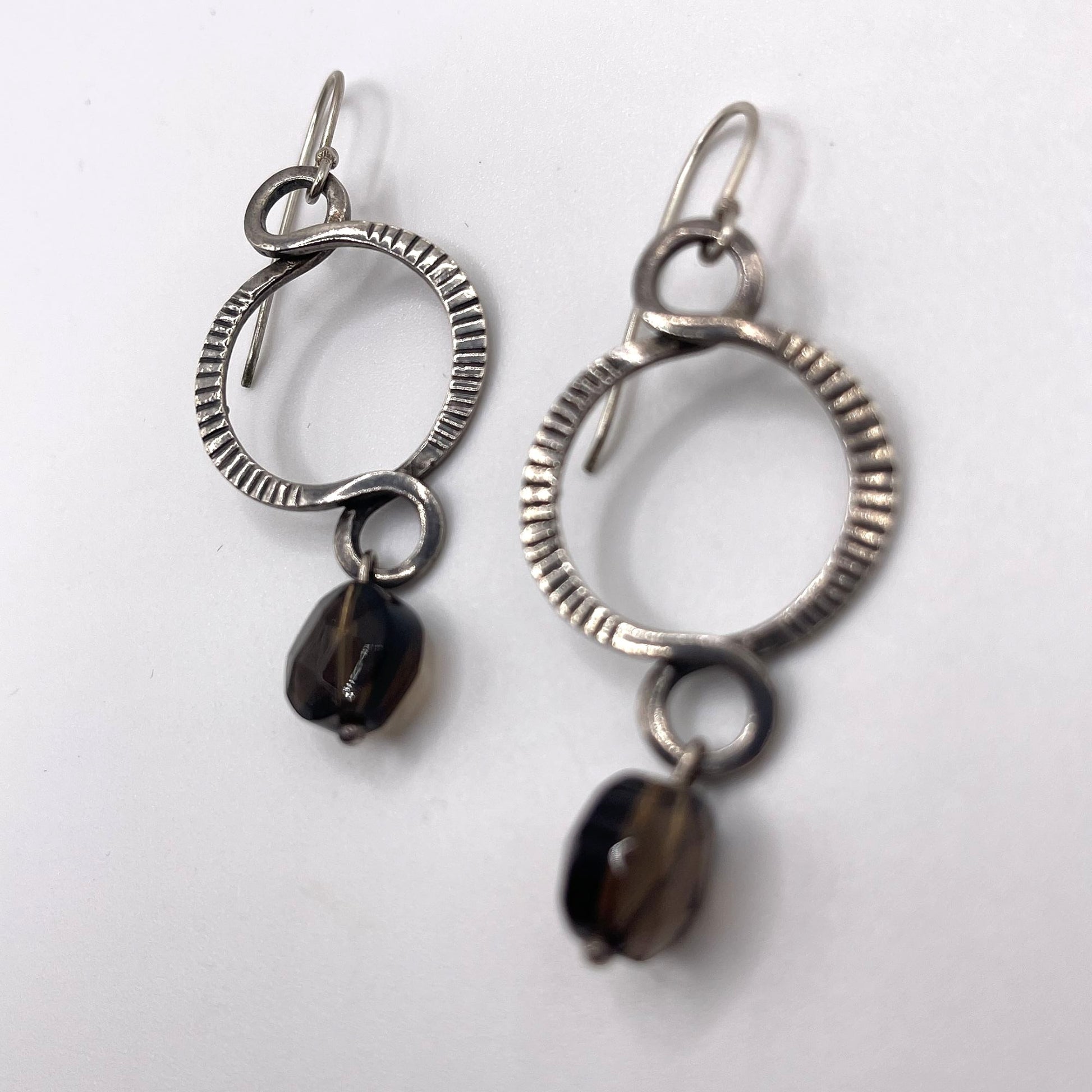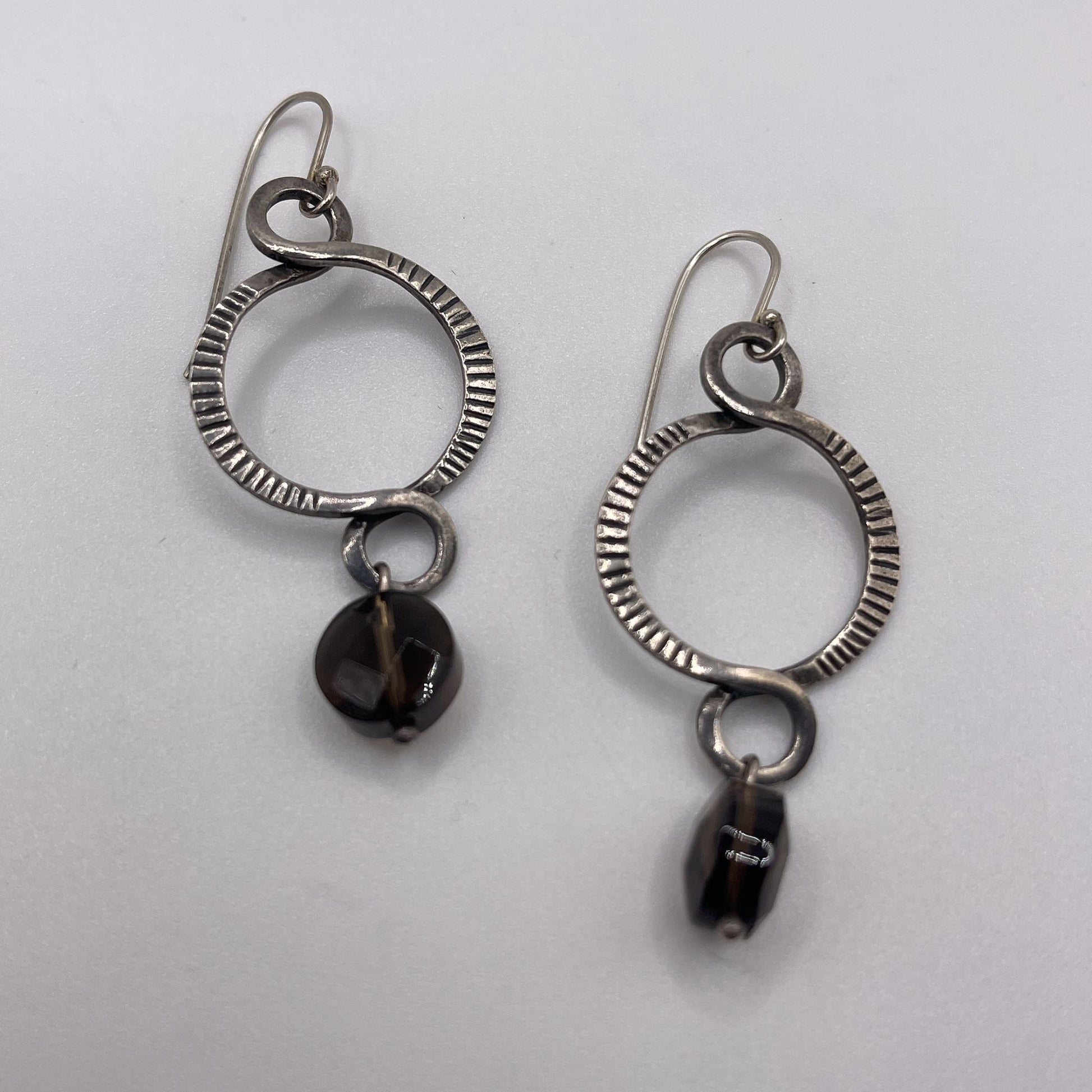 These Silpada earrings feature a sophisticated design with sterling silver hoops and smokey quartz accents. Ideal for professional or formal settings.