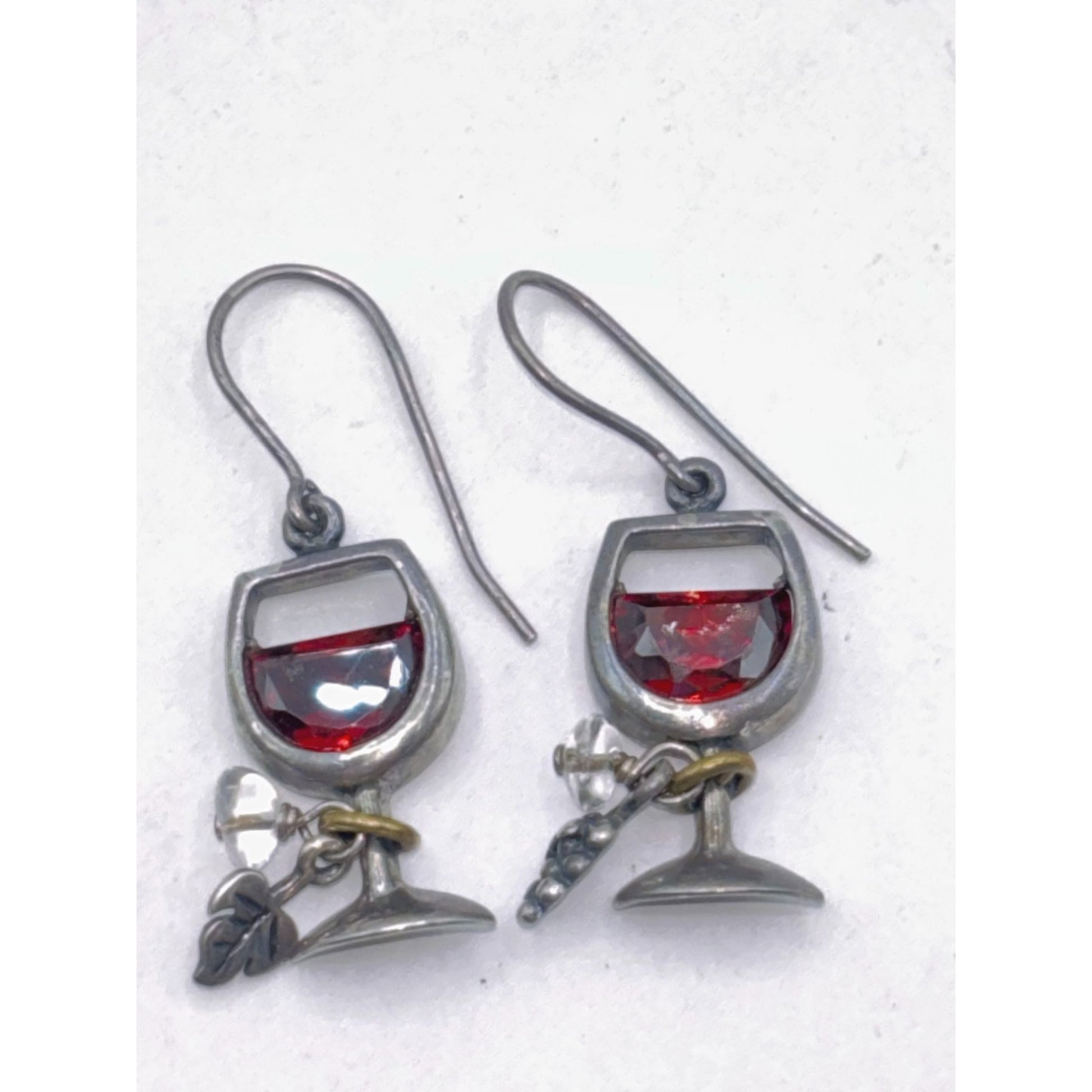 These Silpada earrings boast a charming wine glass design, crafted from sterling silver with a touch of whimsy. Ideal for those who appreciate unique and playful jewelry, these earrings add a distinctive flair to any ensemble. The red accents provide a pop of color, enhancing their visual appeal.