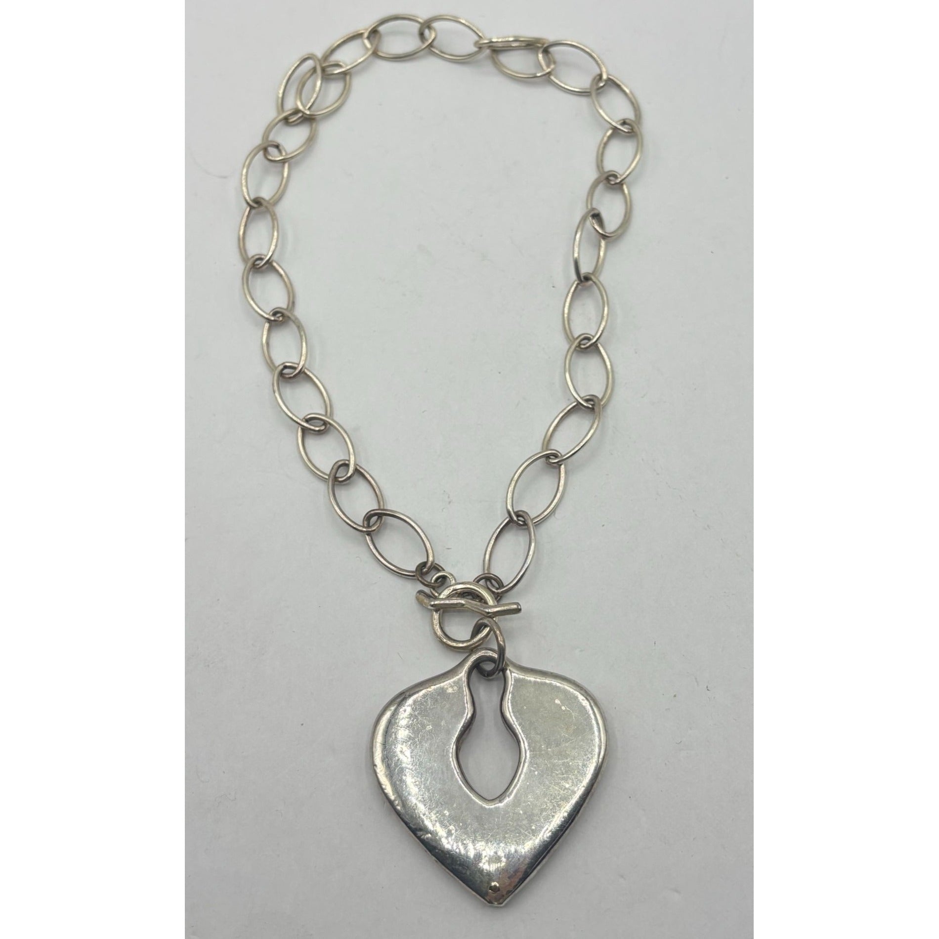 Silver Heart Pendant Necklace With Chain & Toggle Clasp 925