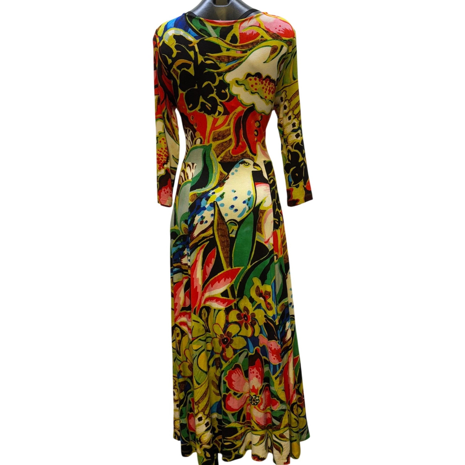 This maxi dress from Soft Surroundings is crafted from a lightweight and breathable fabric blend, offering ease and comfort. Its vibrant print adds a touch of elegance, making it suitable for a stylish and comfortable look. The dress features a flattering cut, ideal for various occasions.