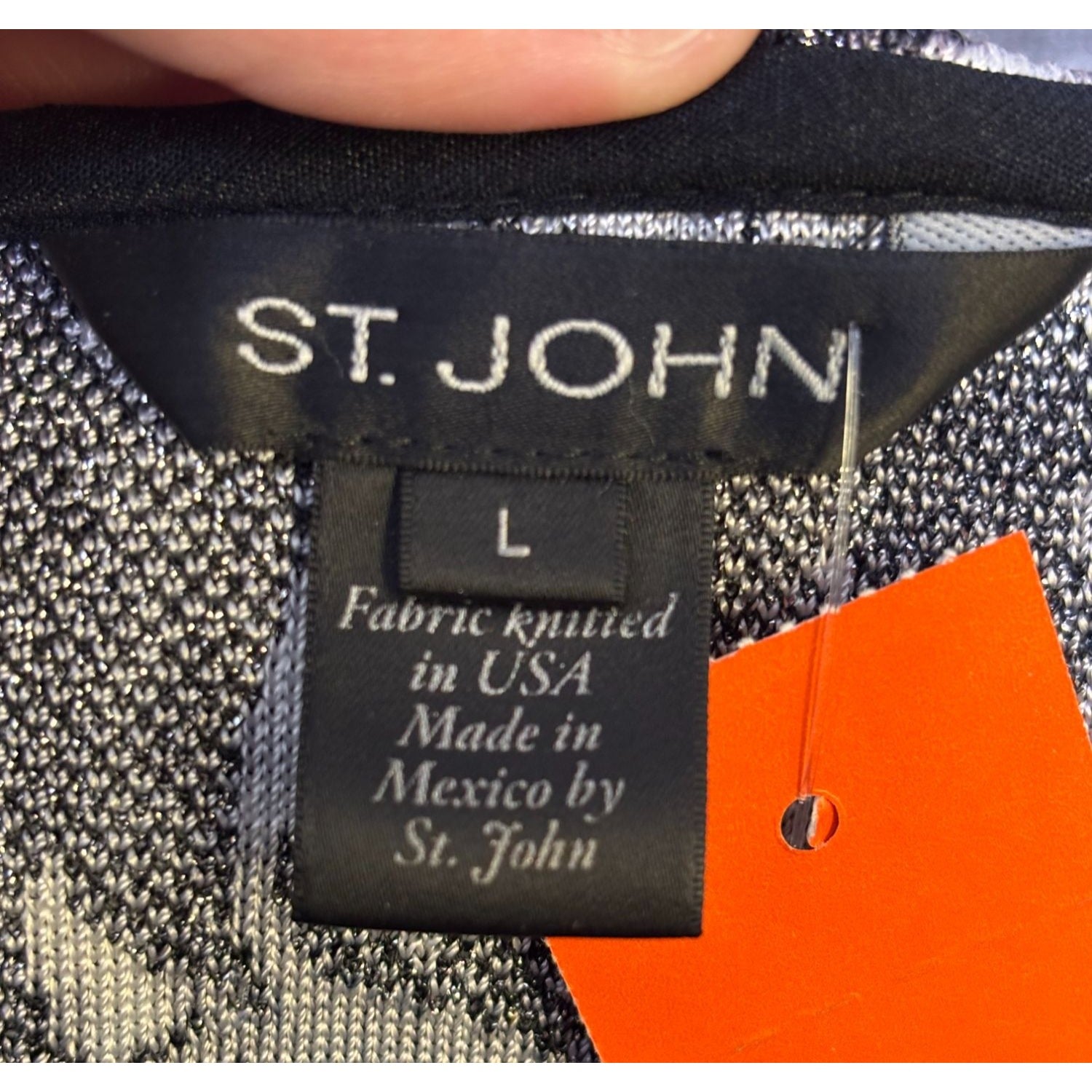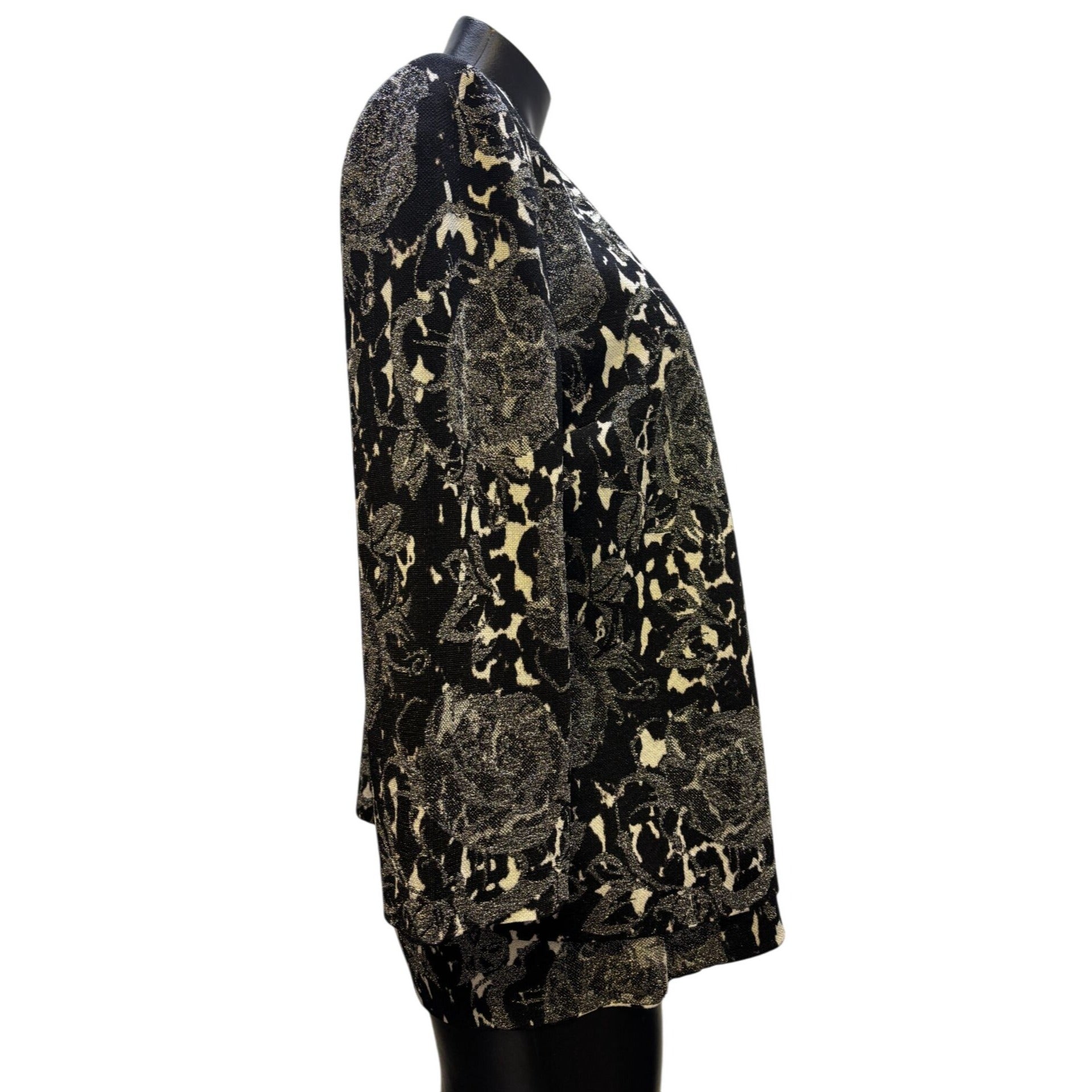 St. John Black & Silver Floral Print Sweater Set Size 10/L 2p