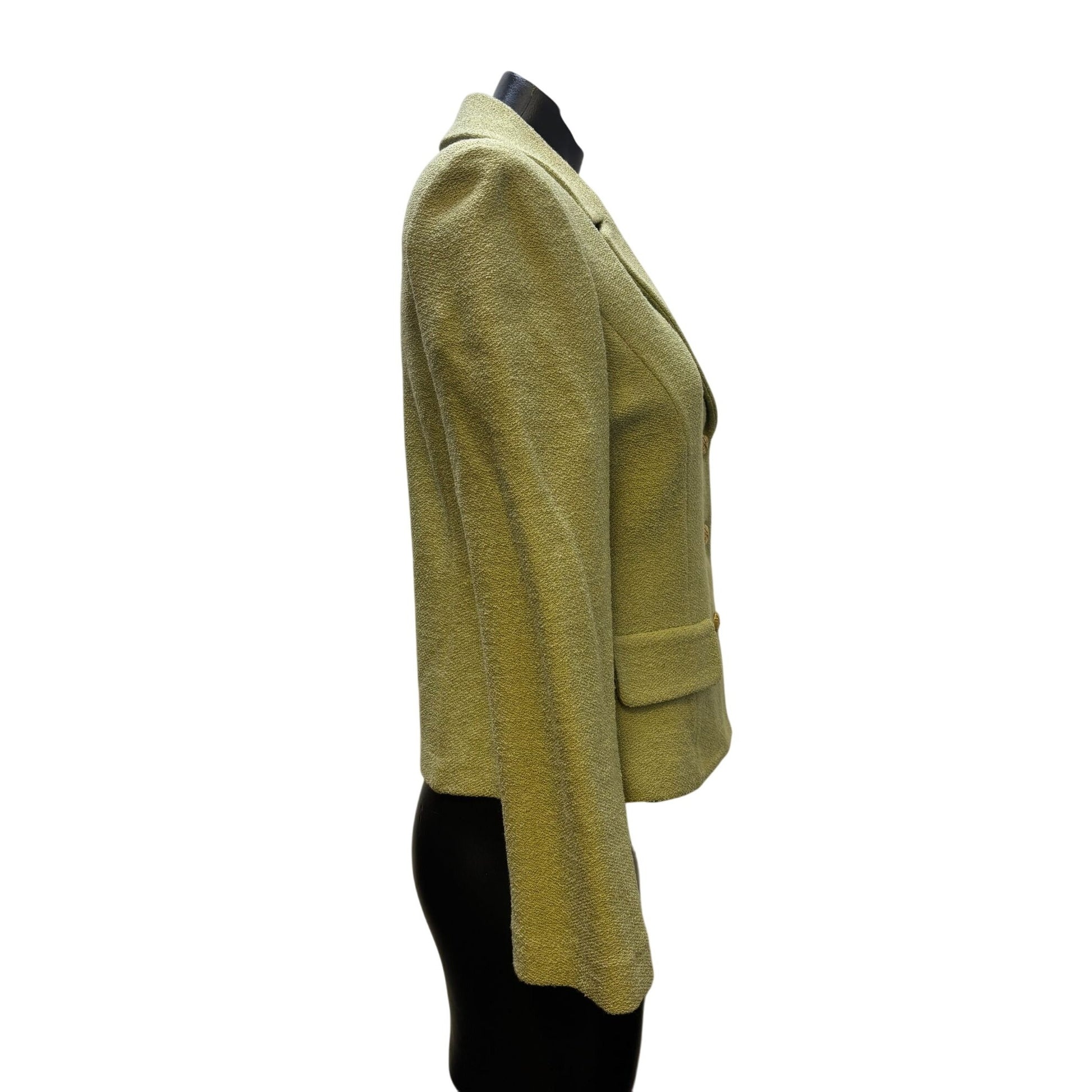 St John Cropped Textured Green Button-Up Jacket Size 6