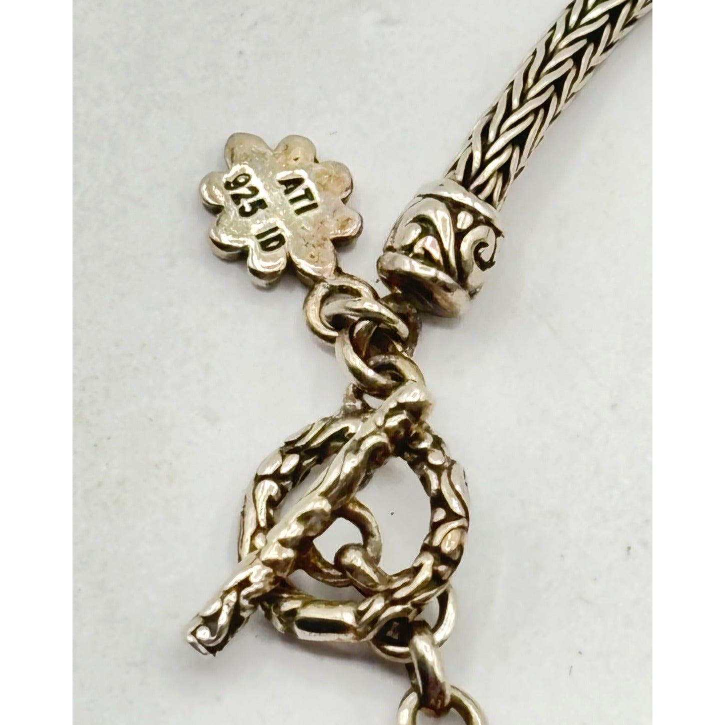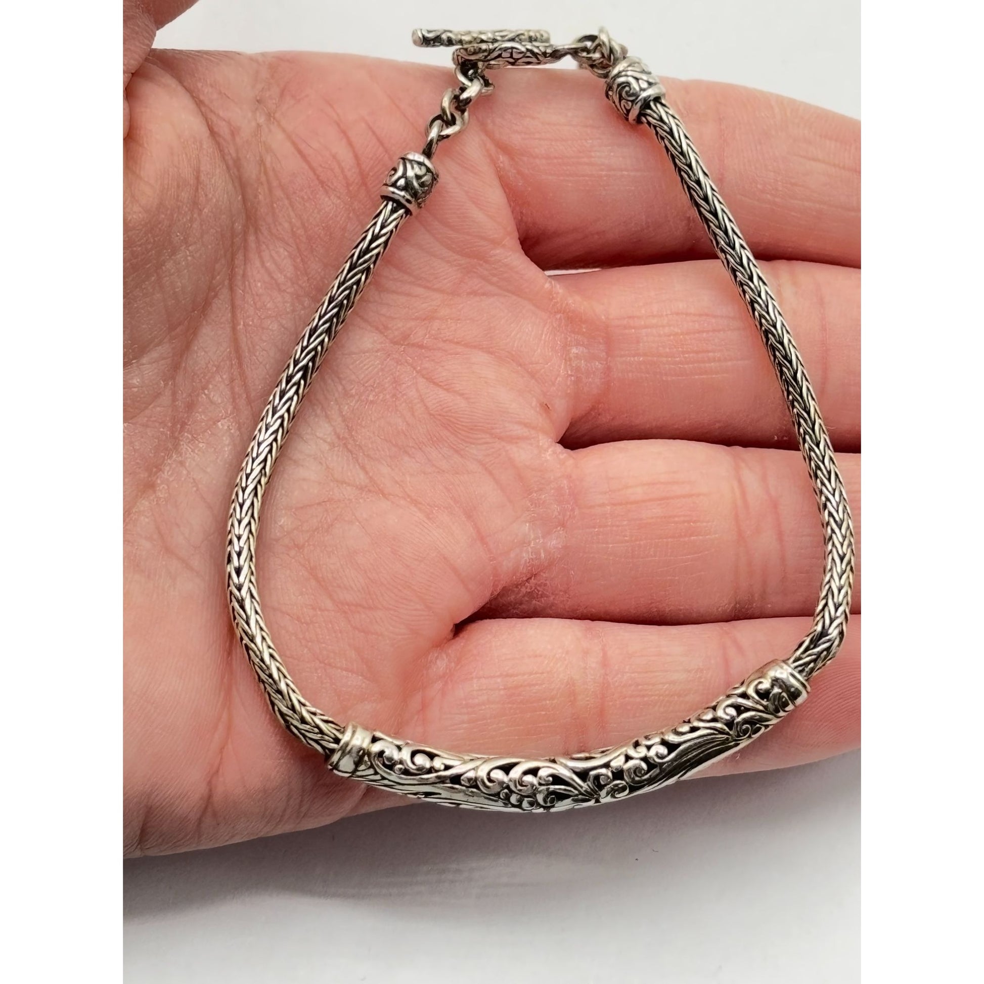 Sterling Silver 925 Balinese Style Bracelet With Toggle Clasp For Women