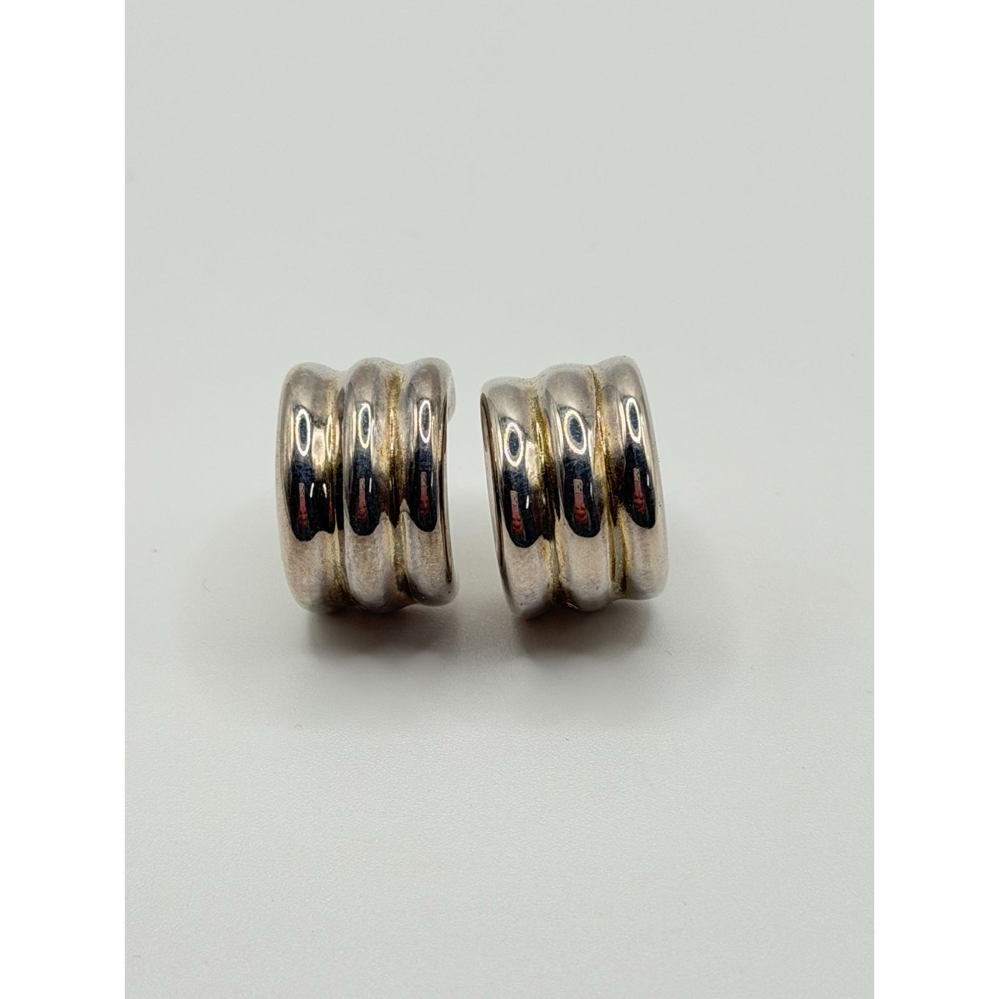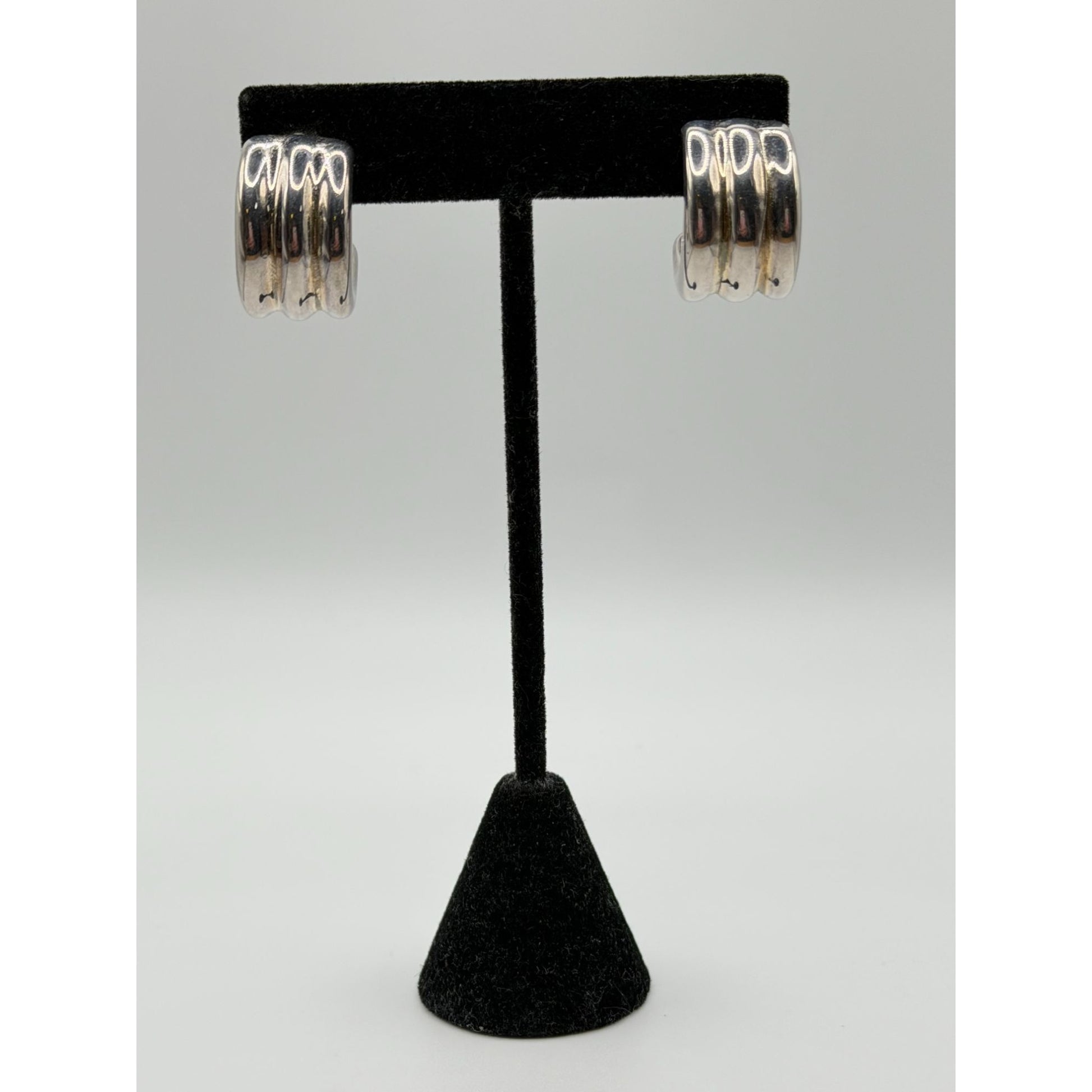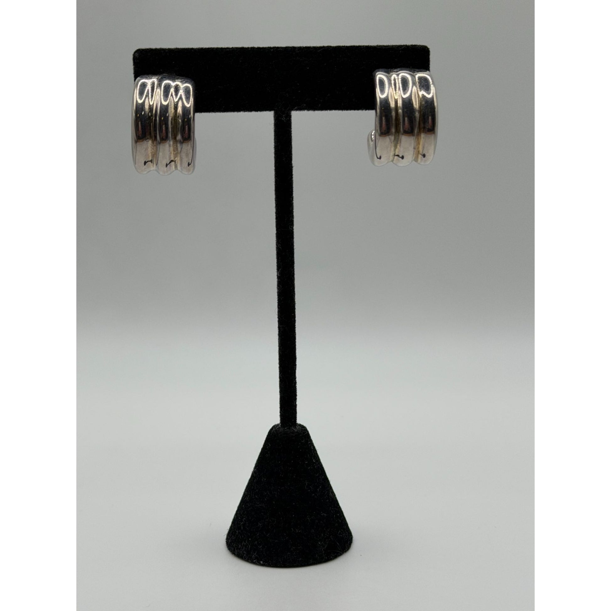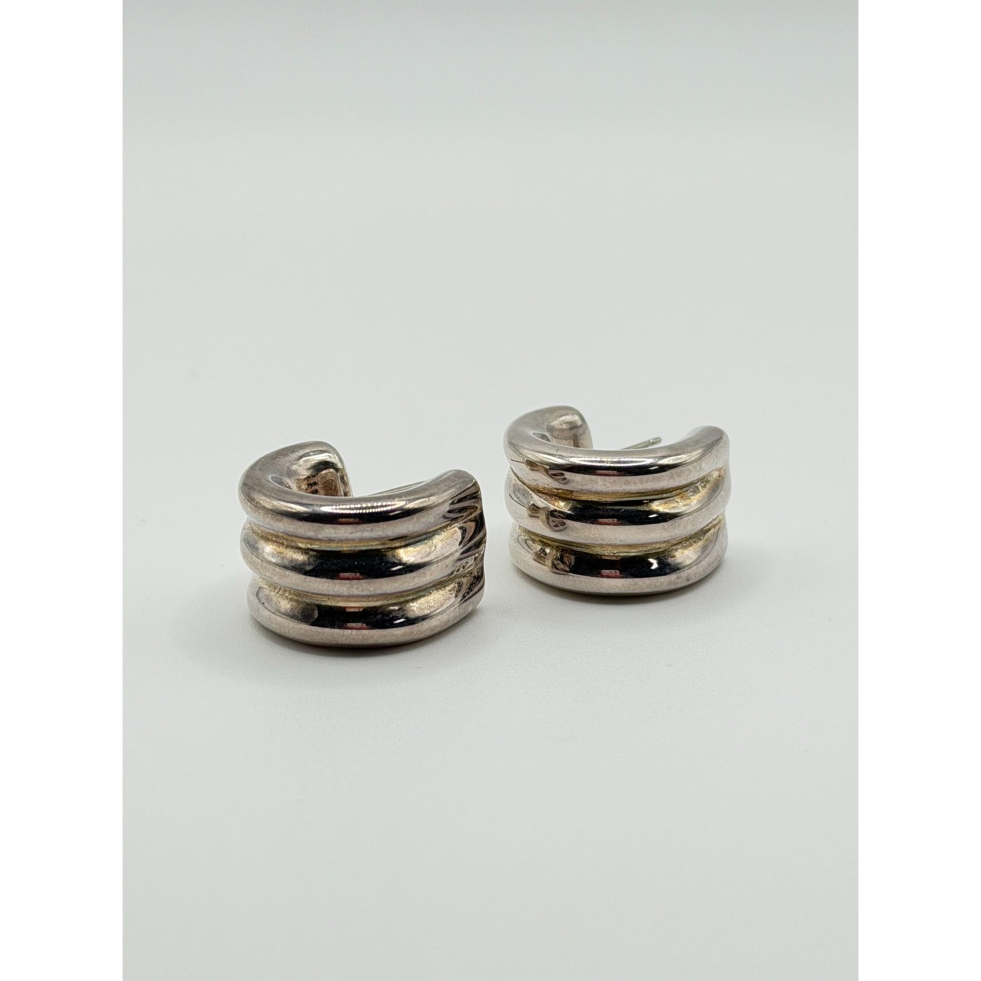 Sterling Silver 925 Chunky Triple Band Hoop Earrings