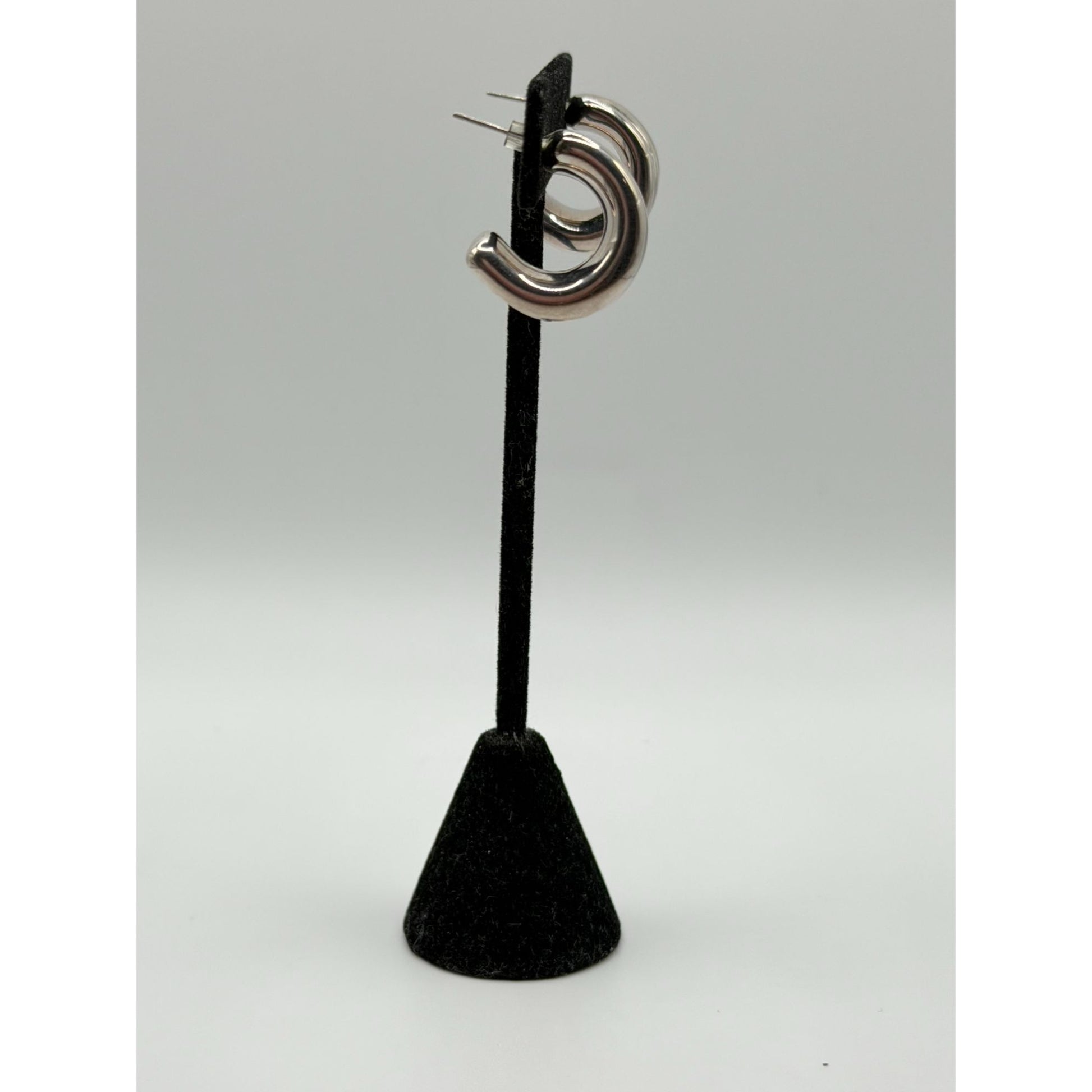 Crafted from 925 sterling silver, these chunky triple band hoop earrings exude timeless elegance. Ideal for enhancing both professional and casual attire.
