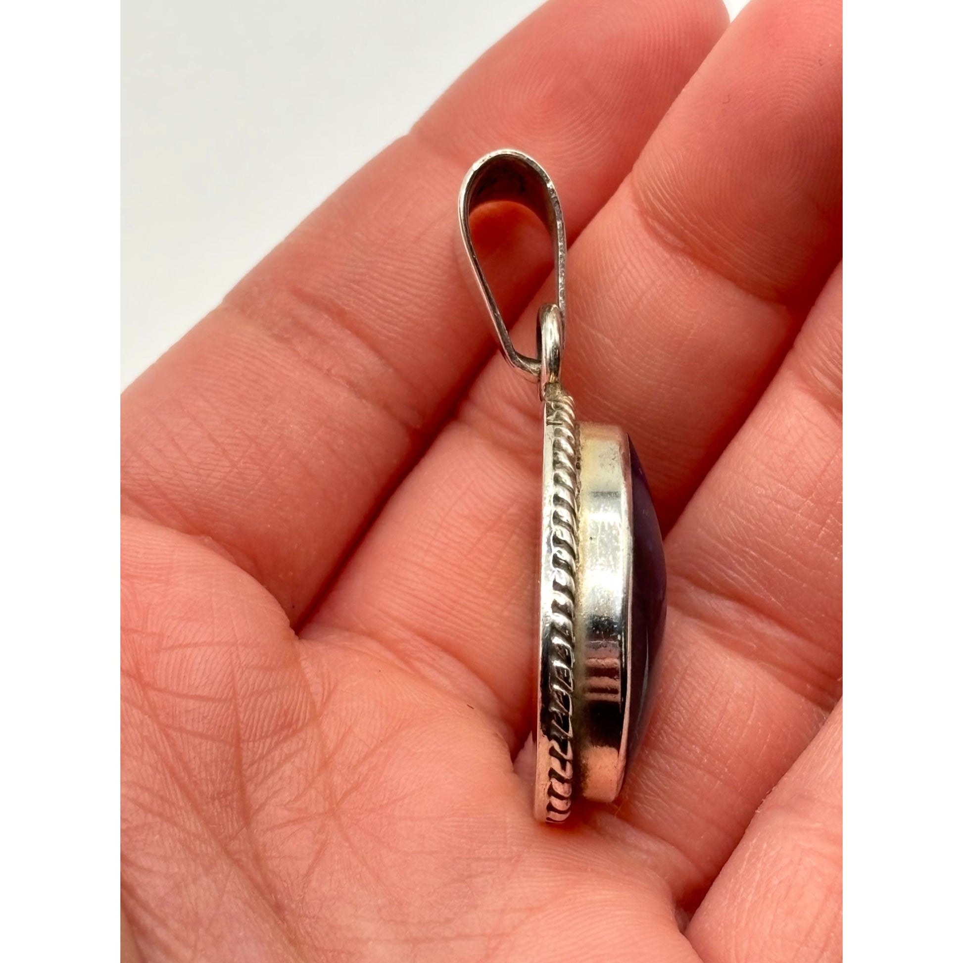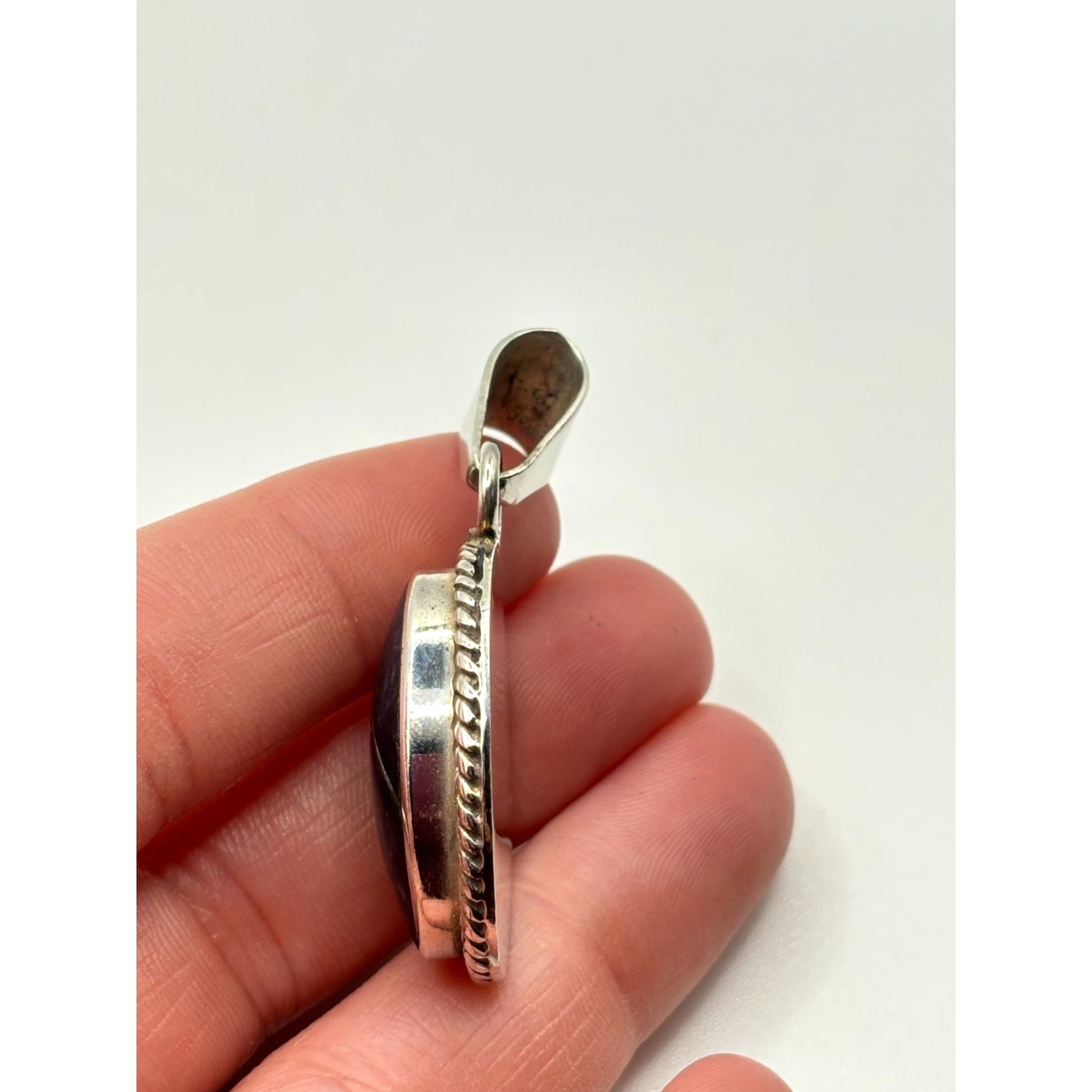 Sterling Silver 925 Oval Blue Stone Sodalite Pendant With Braided Edge Native American