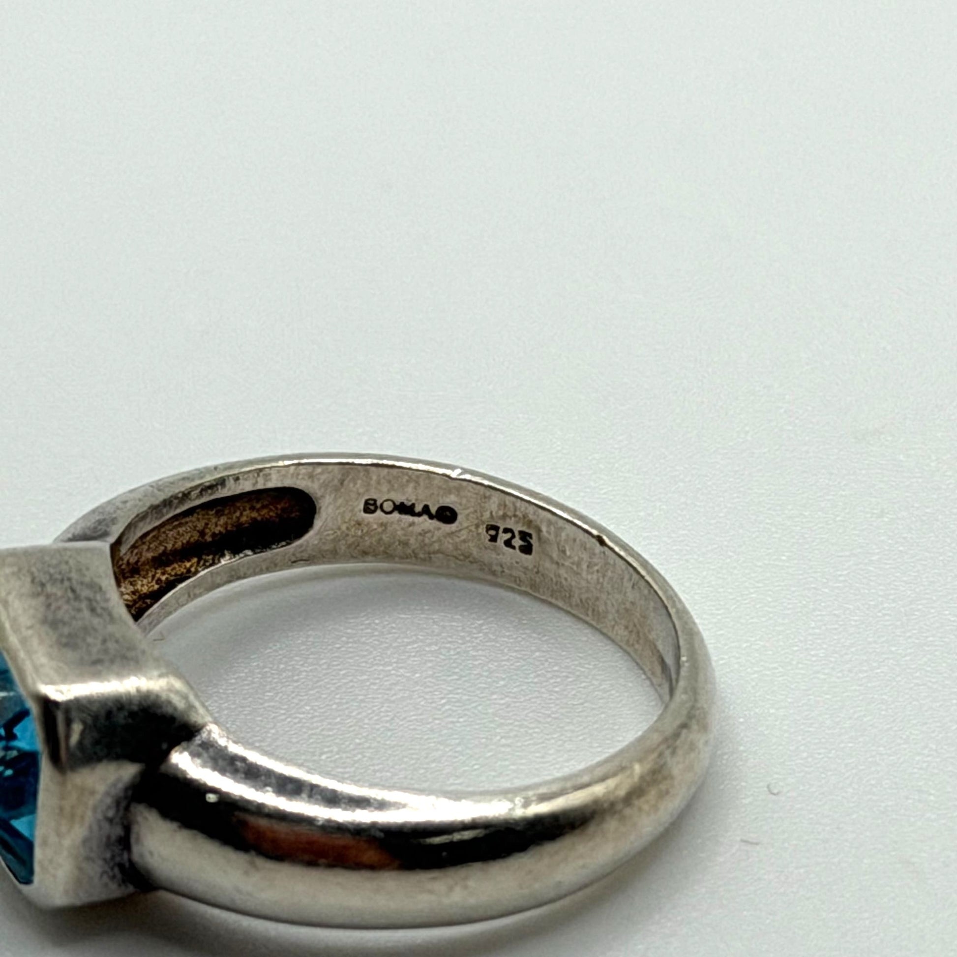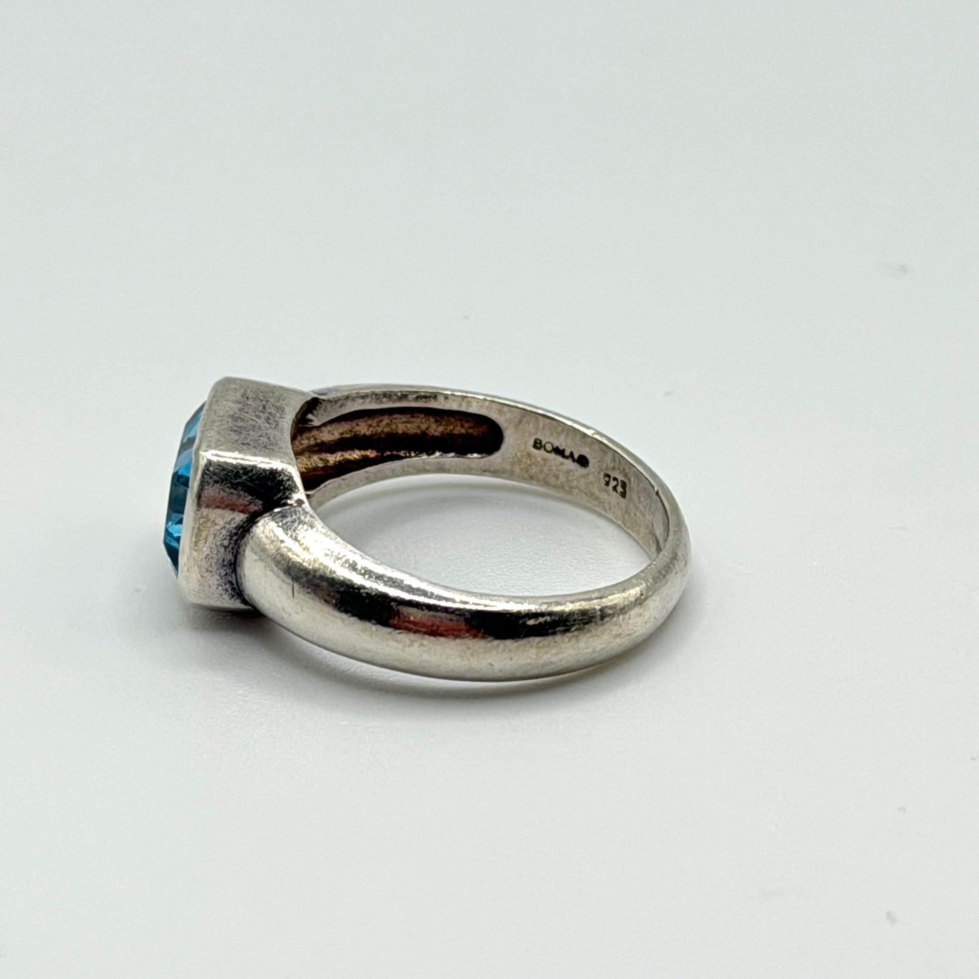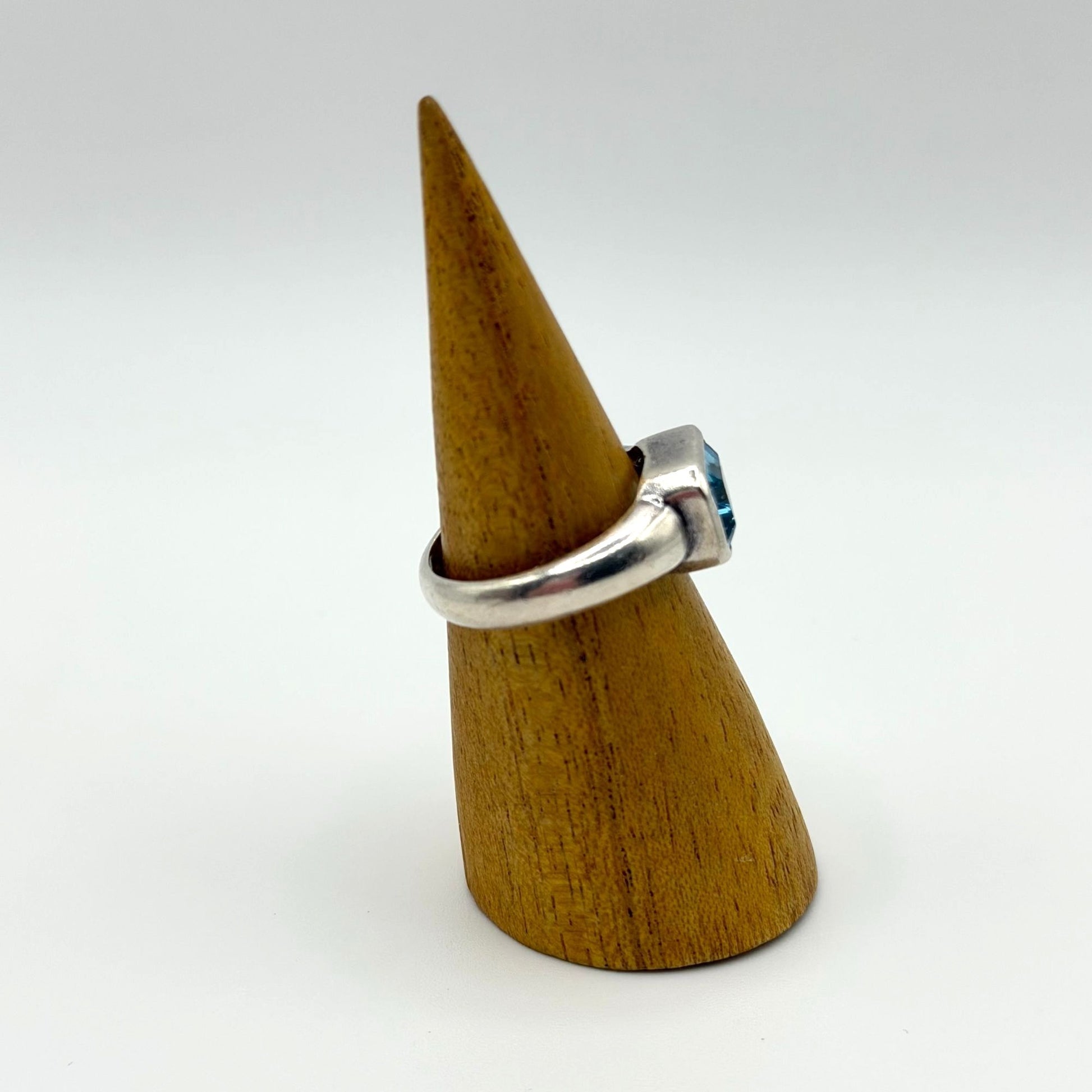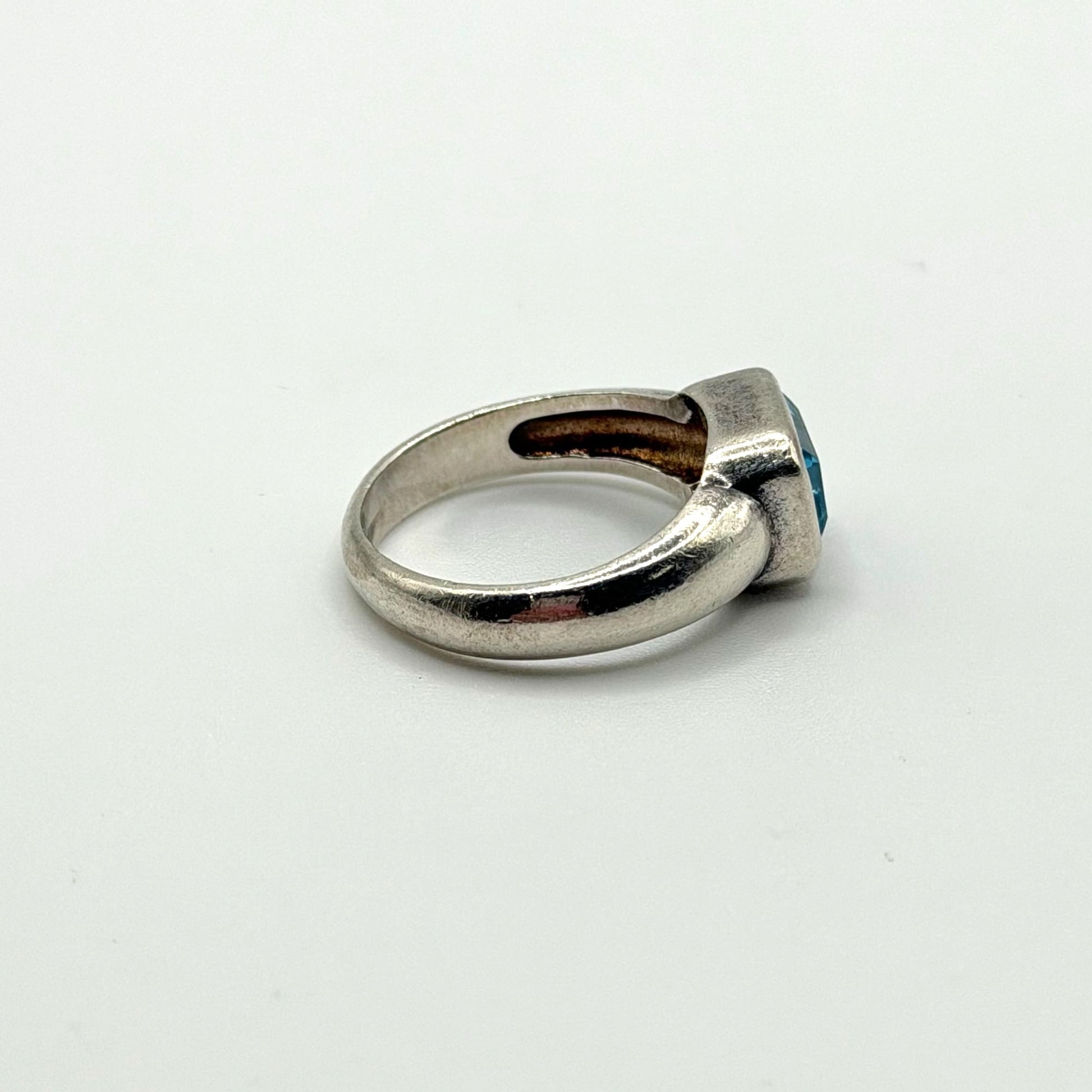 Crafted from 925 sterling silver, this ring features a bezel-set rectangular blue topaz gemstone, offering a timeless and elegant design for any jewelry collection.