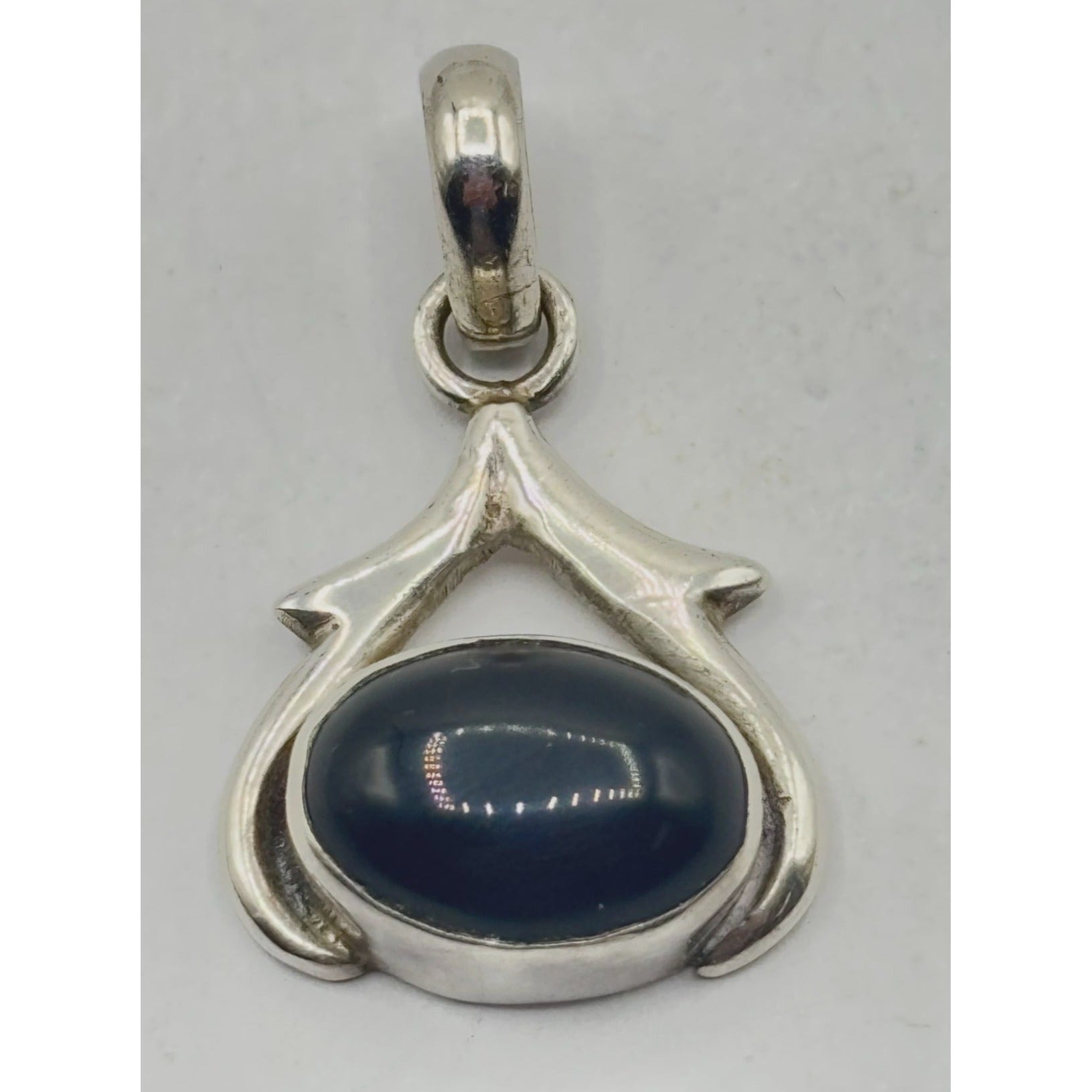 Sterling Silver Vintage Pendant With Dark Blue Oval Stone 925