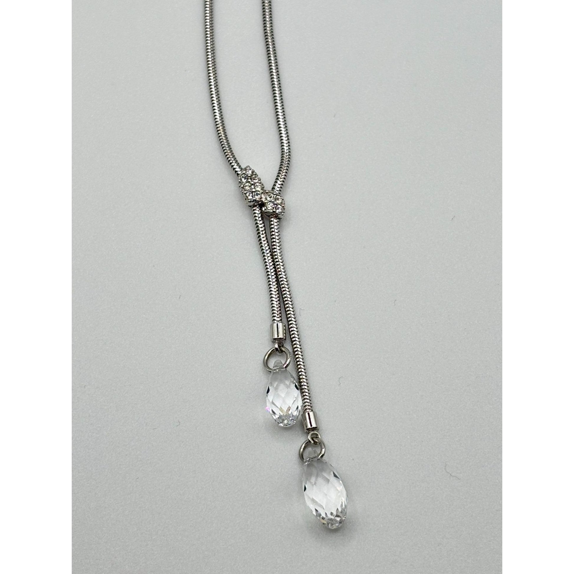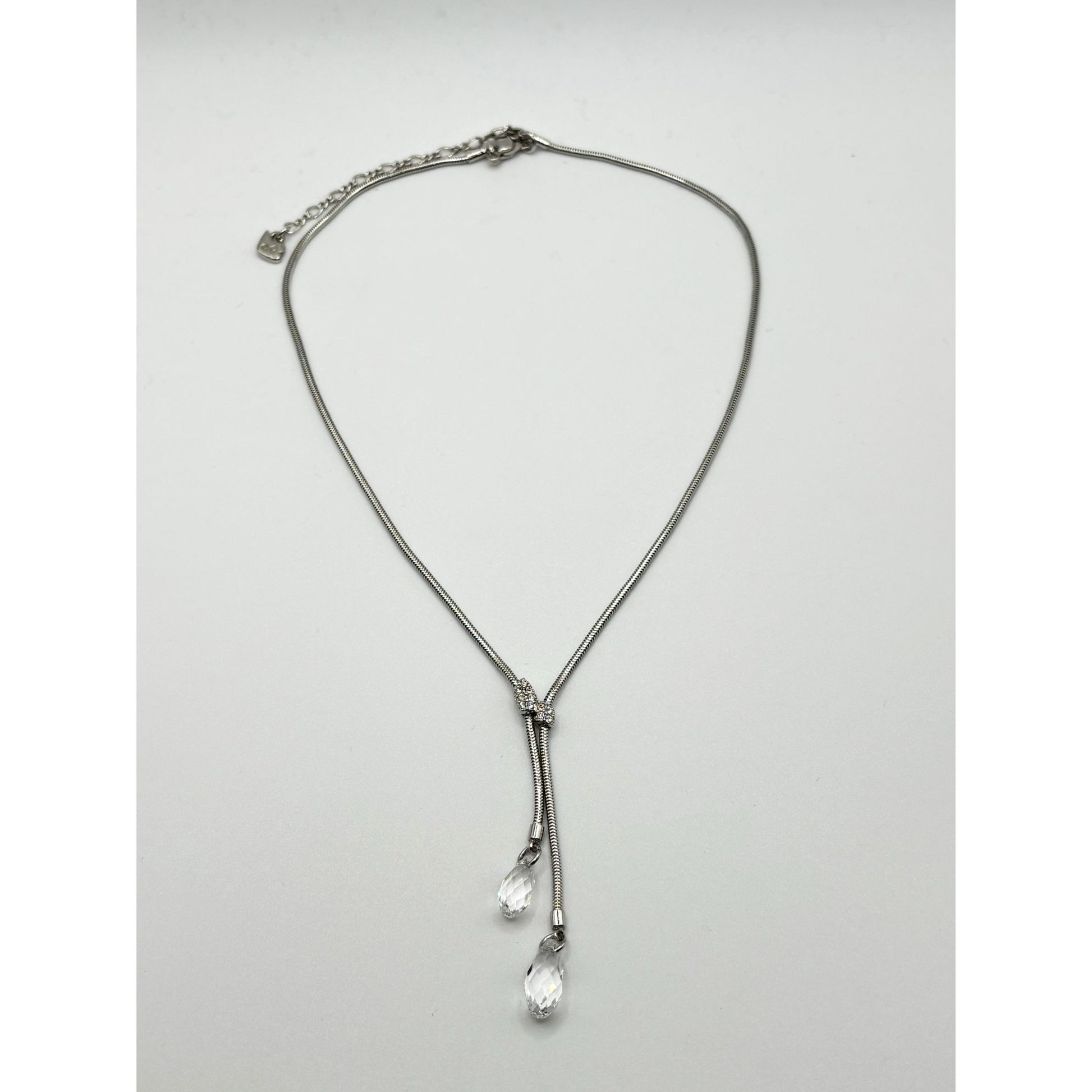 This Swarovski necklace blends timeless elegance with modern design, featuring a silver-tone adjustable chain and sparkling crystal drop pendants. A sophisticated accessory.