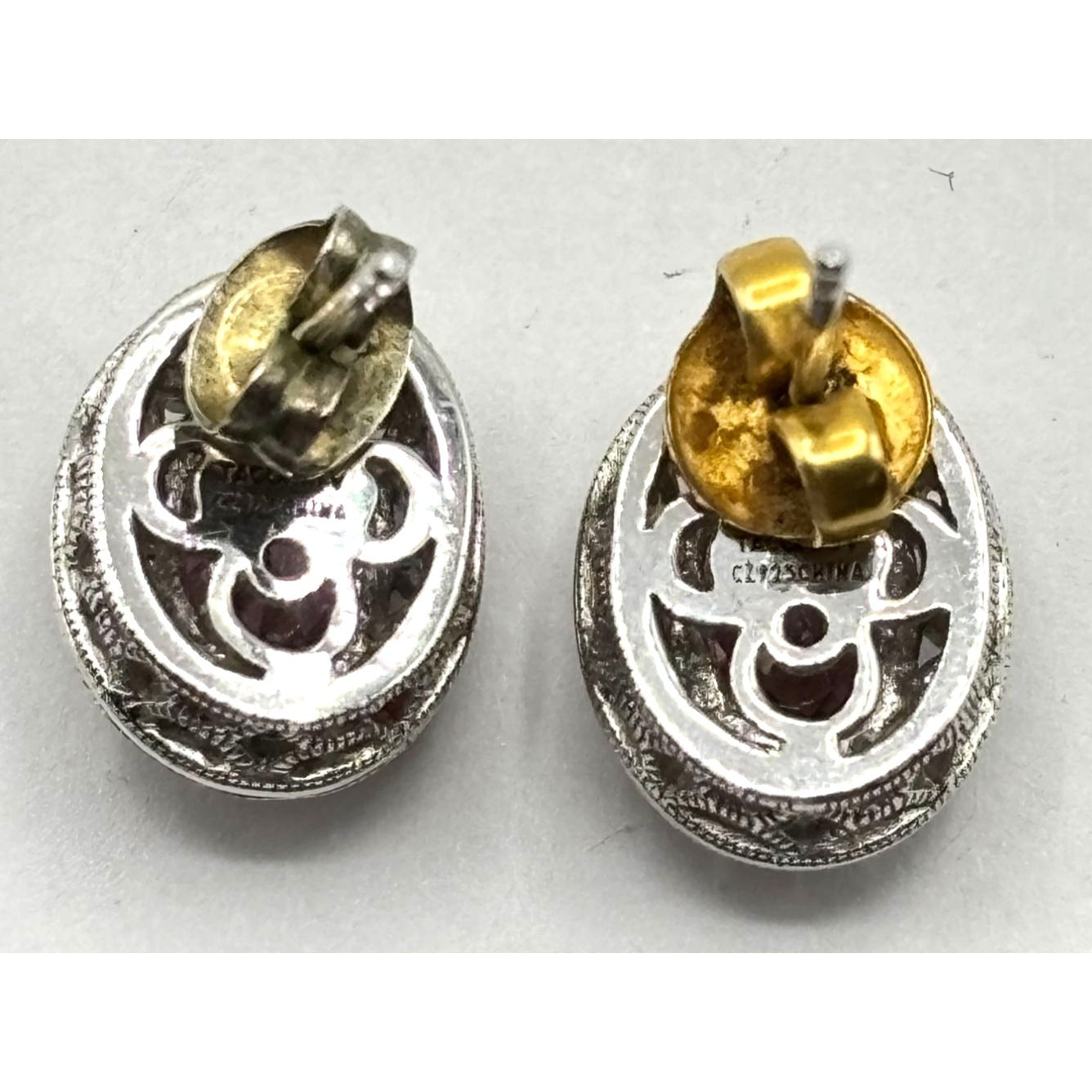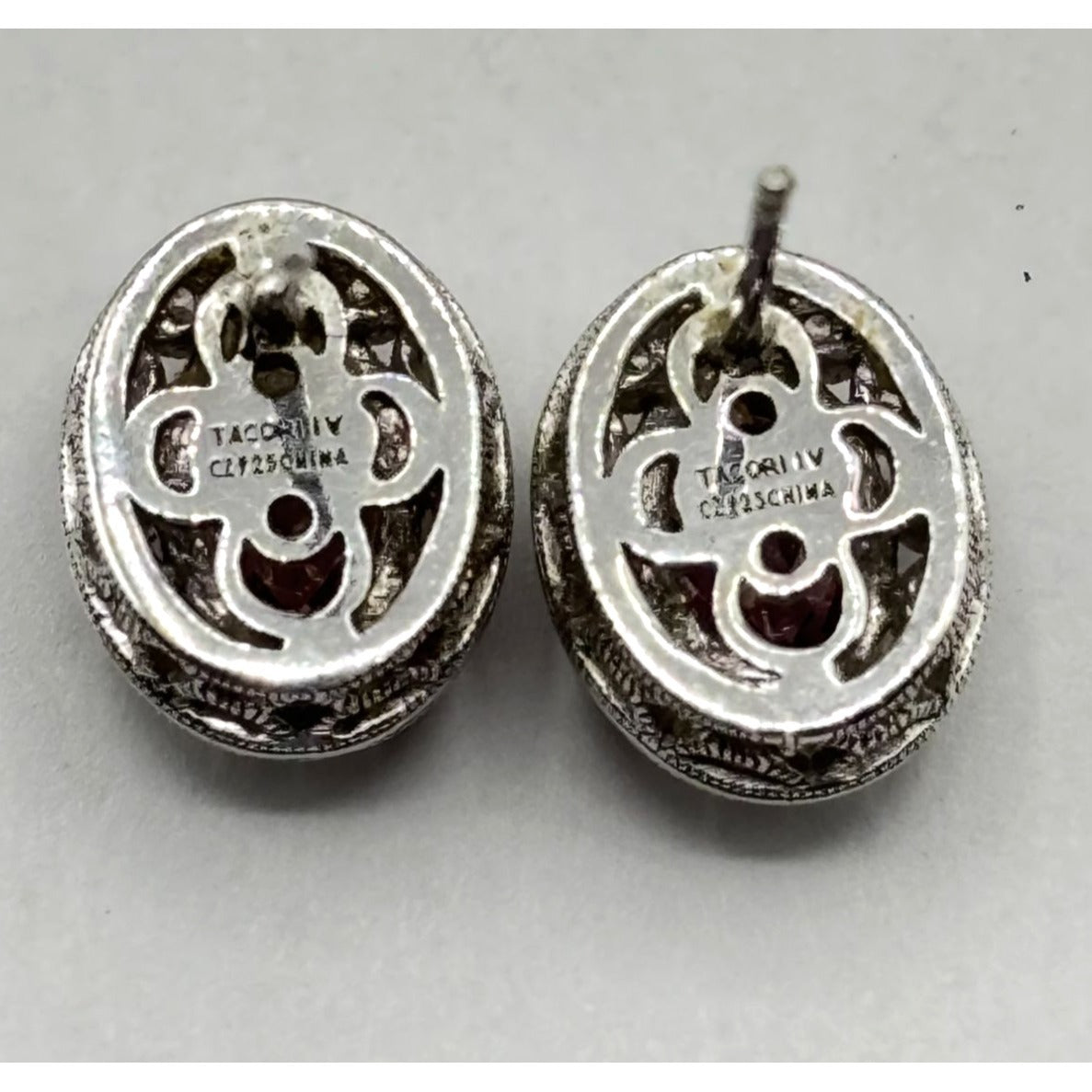 Tacori IV 925 Sterling Silver & Pink CZ Halo Stud Earrings