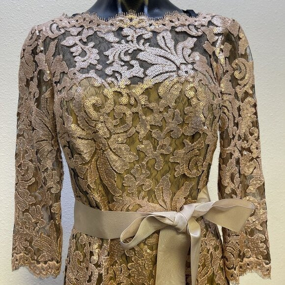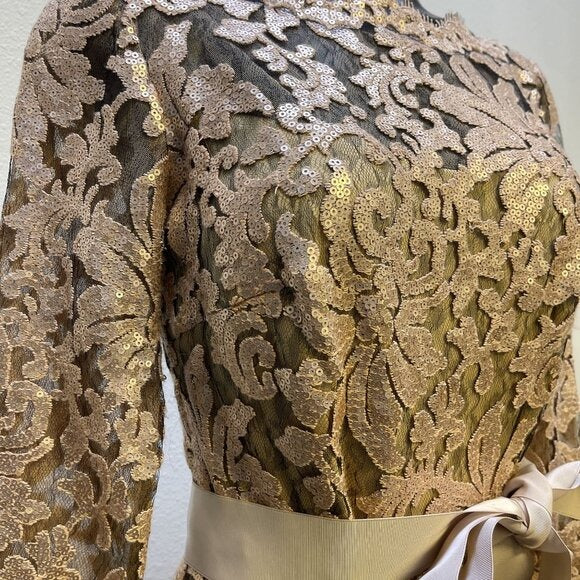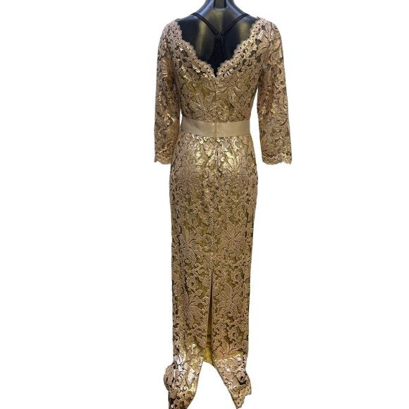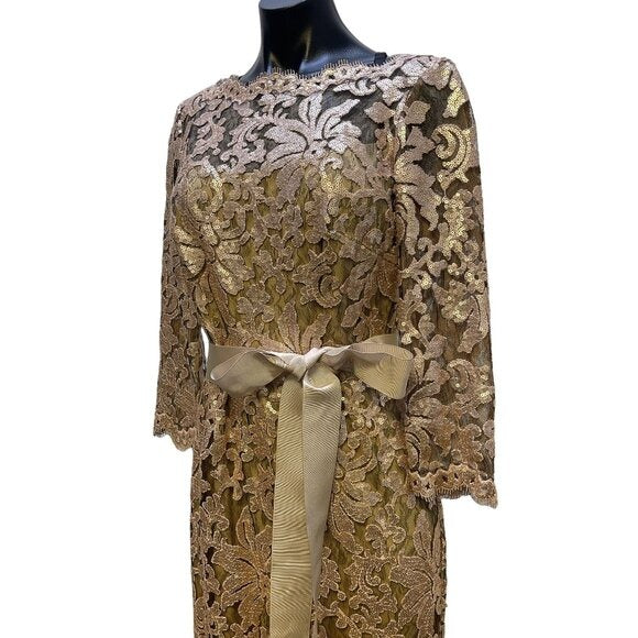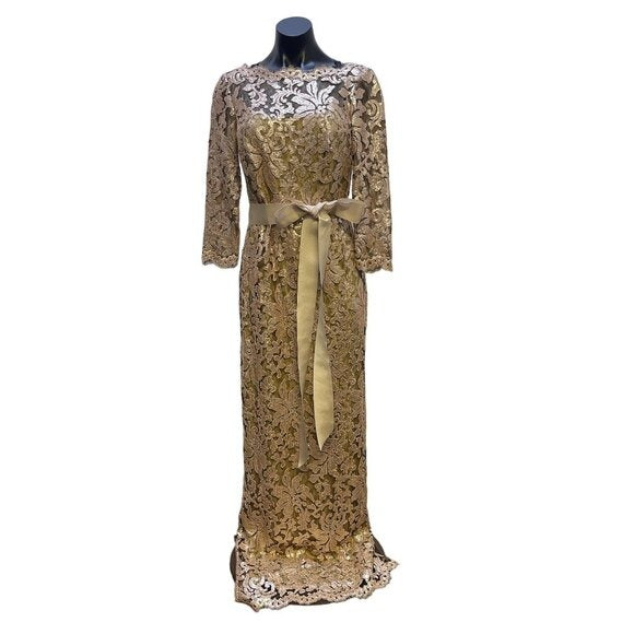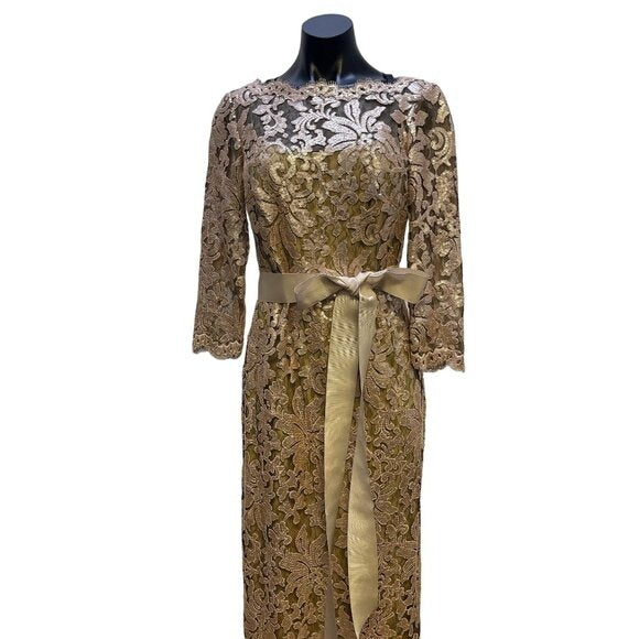 Tadashi Shoji Women's Lace Gown With Ribbon Belt Size 6