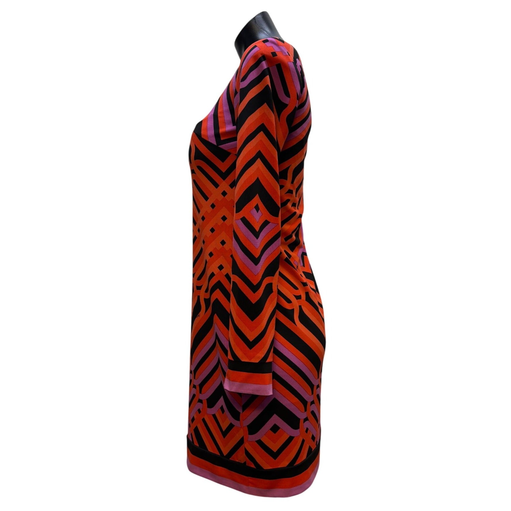 Trina Turk Geometric Print Long Sleeve Dress Red & Black Size 0