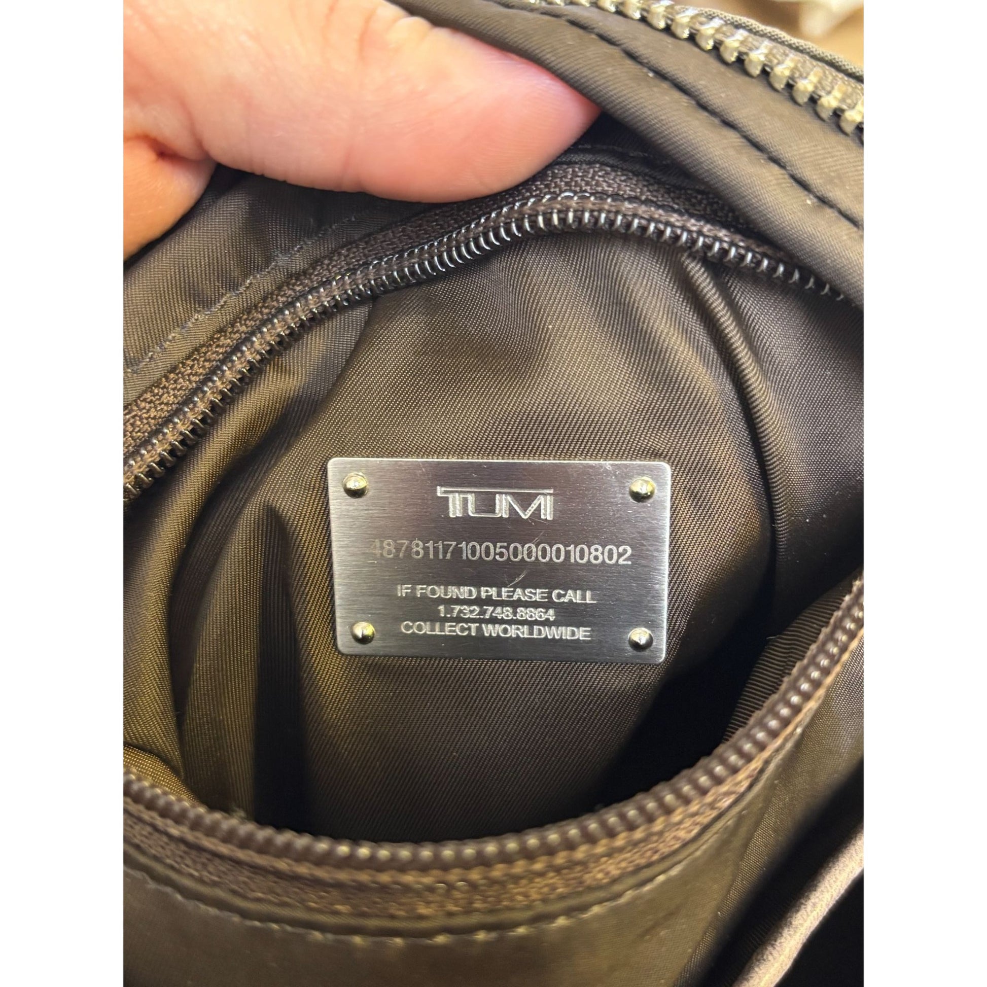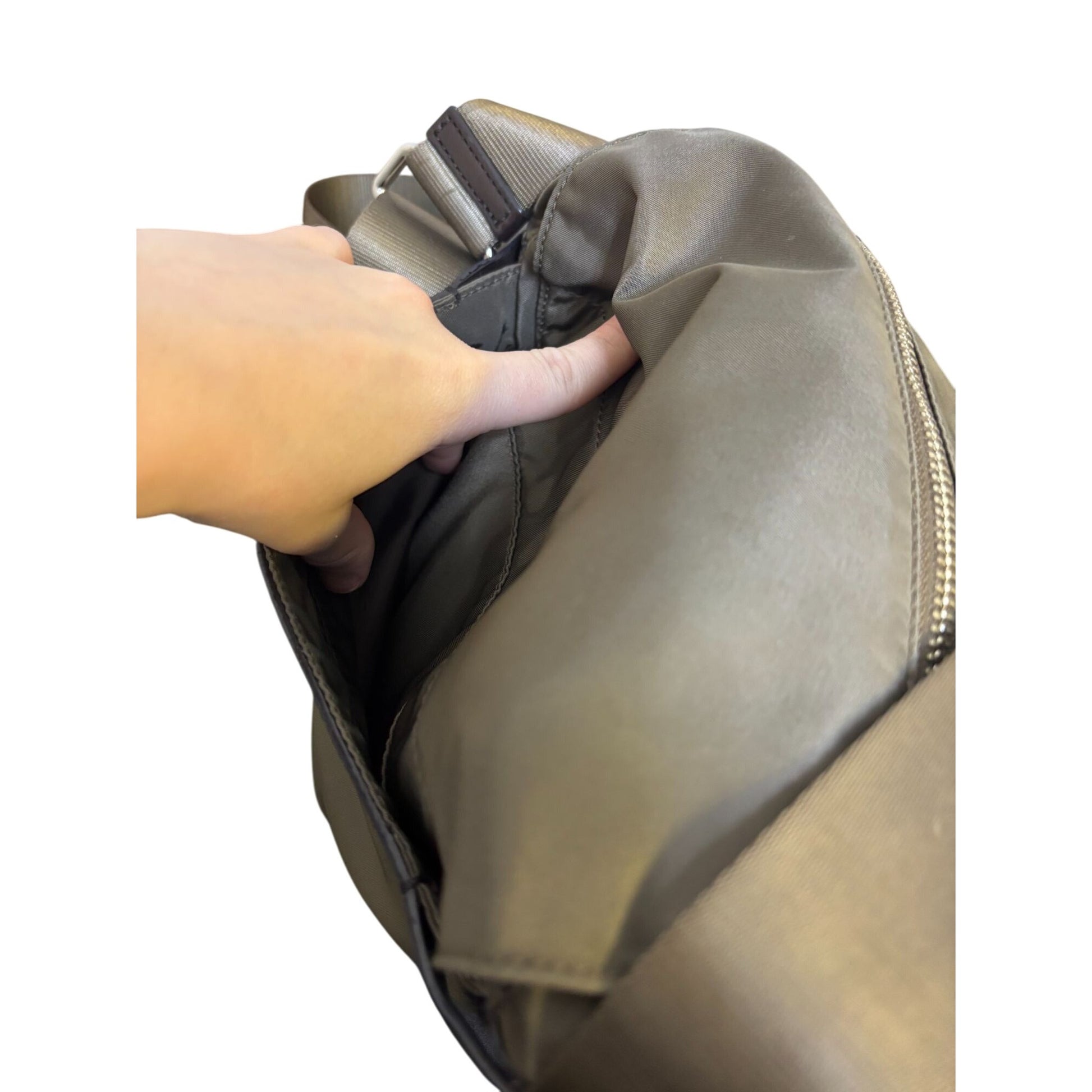 Tumi Khaki Nylon Leather Crossbody Bag