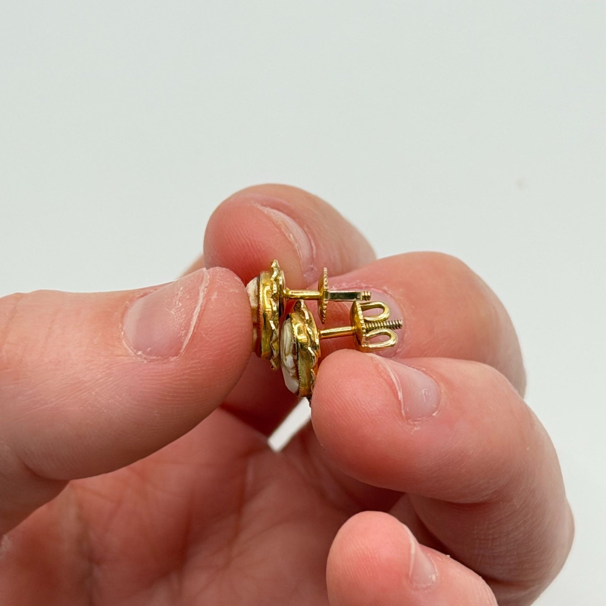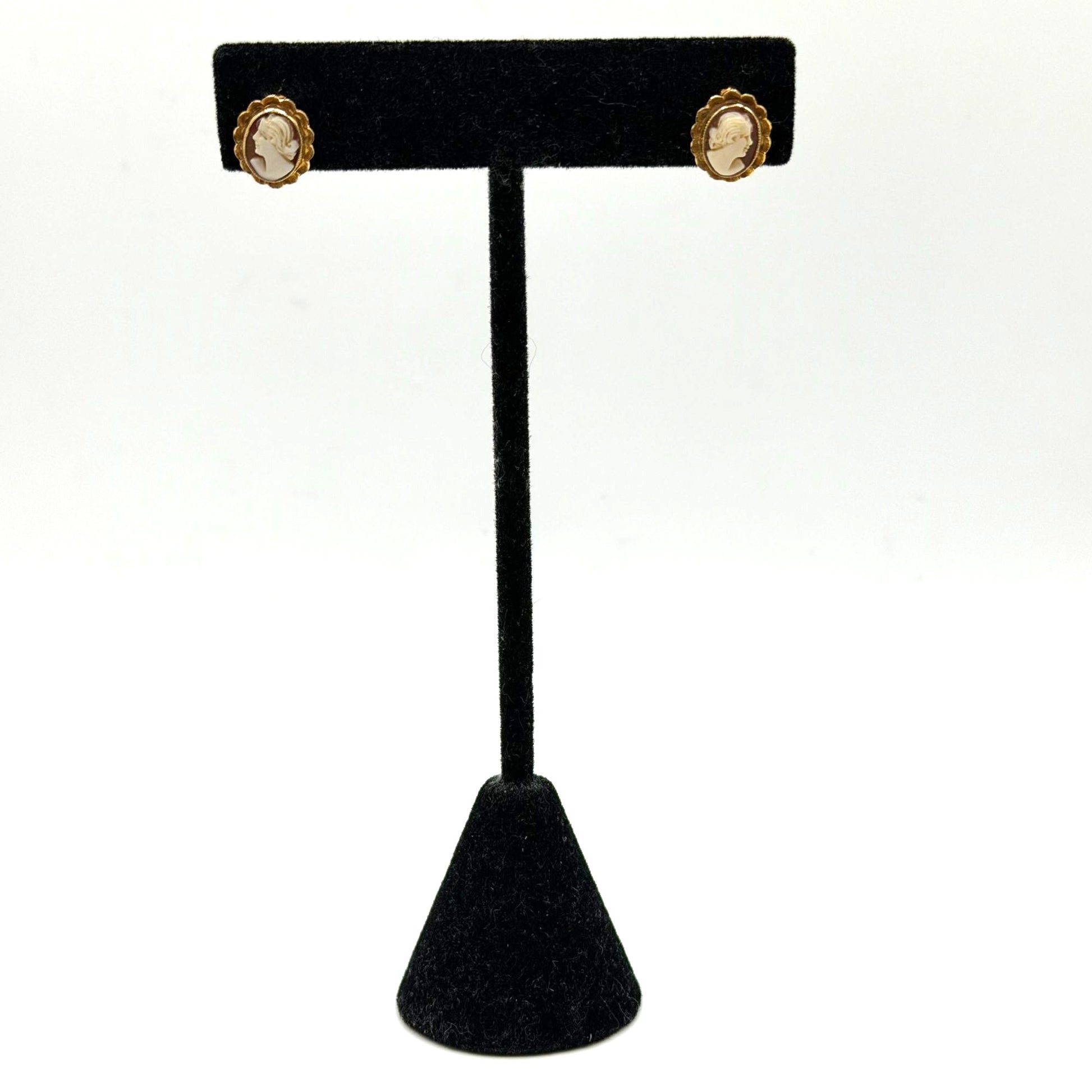 Victorian Vintage Cameo Earrings 10K Gold Screw Back Oval Design