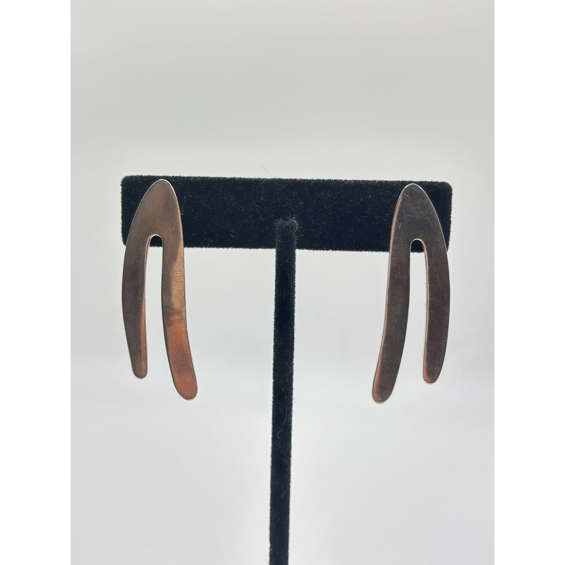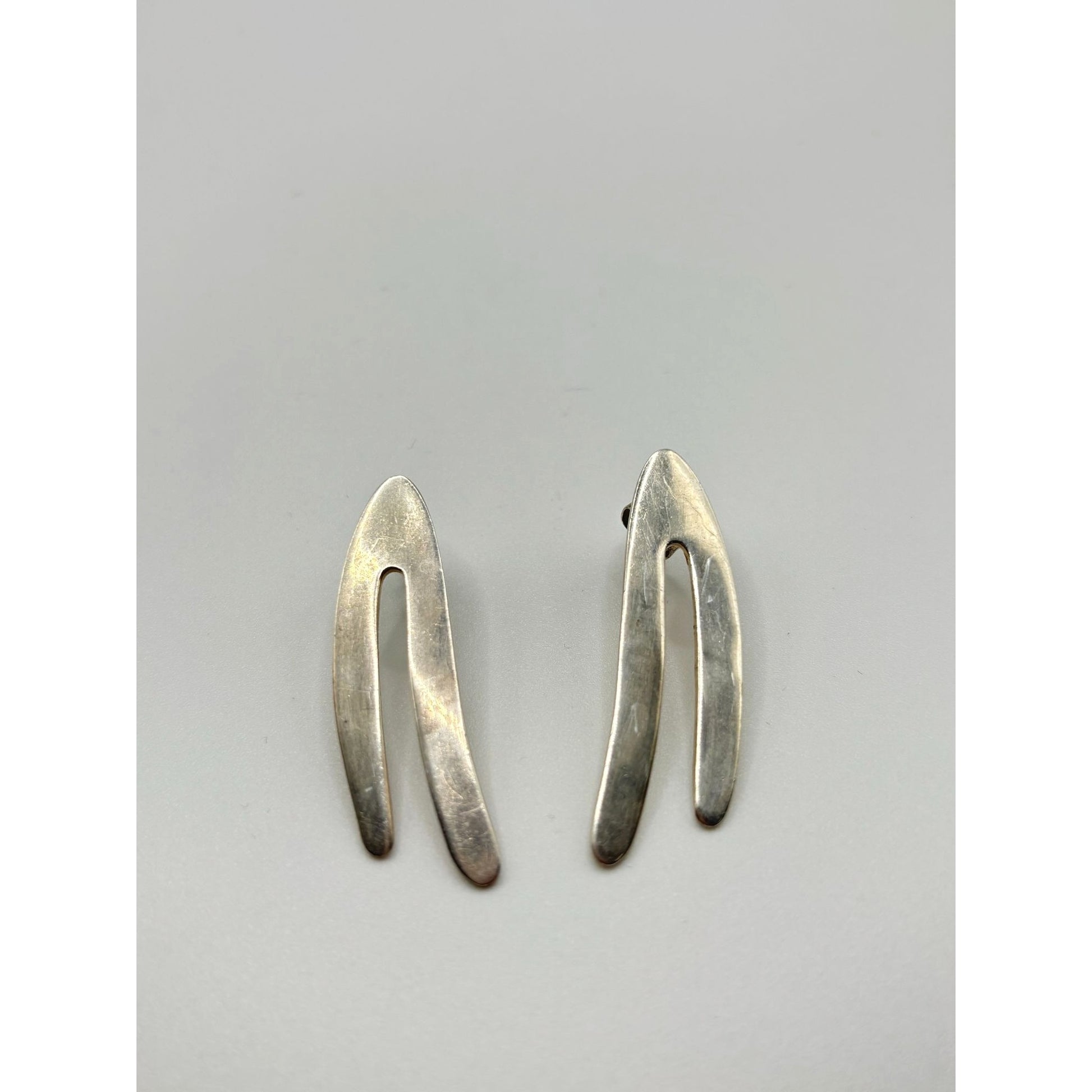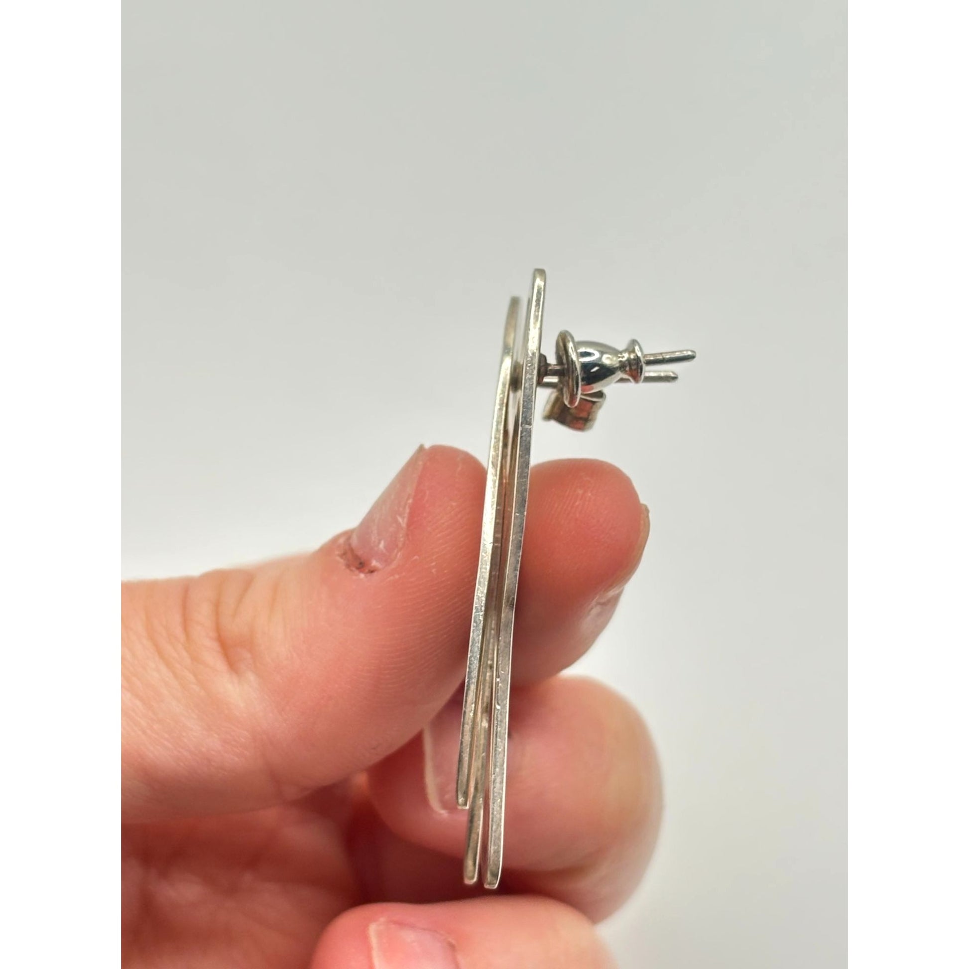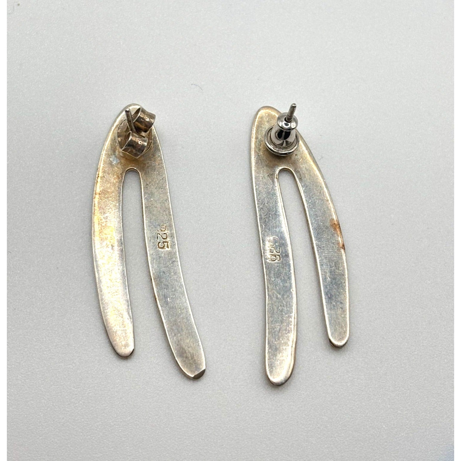 These vintage earrings feature a sleek, minimalist design crafted from 925 sterling silver. Ideal for both casual and formal settings, they offer timeless elegance.