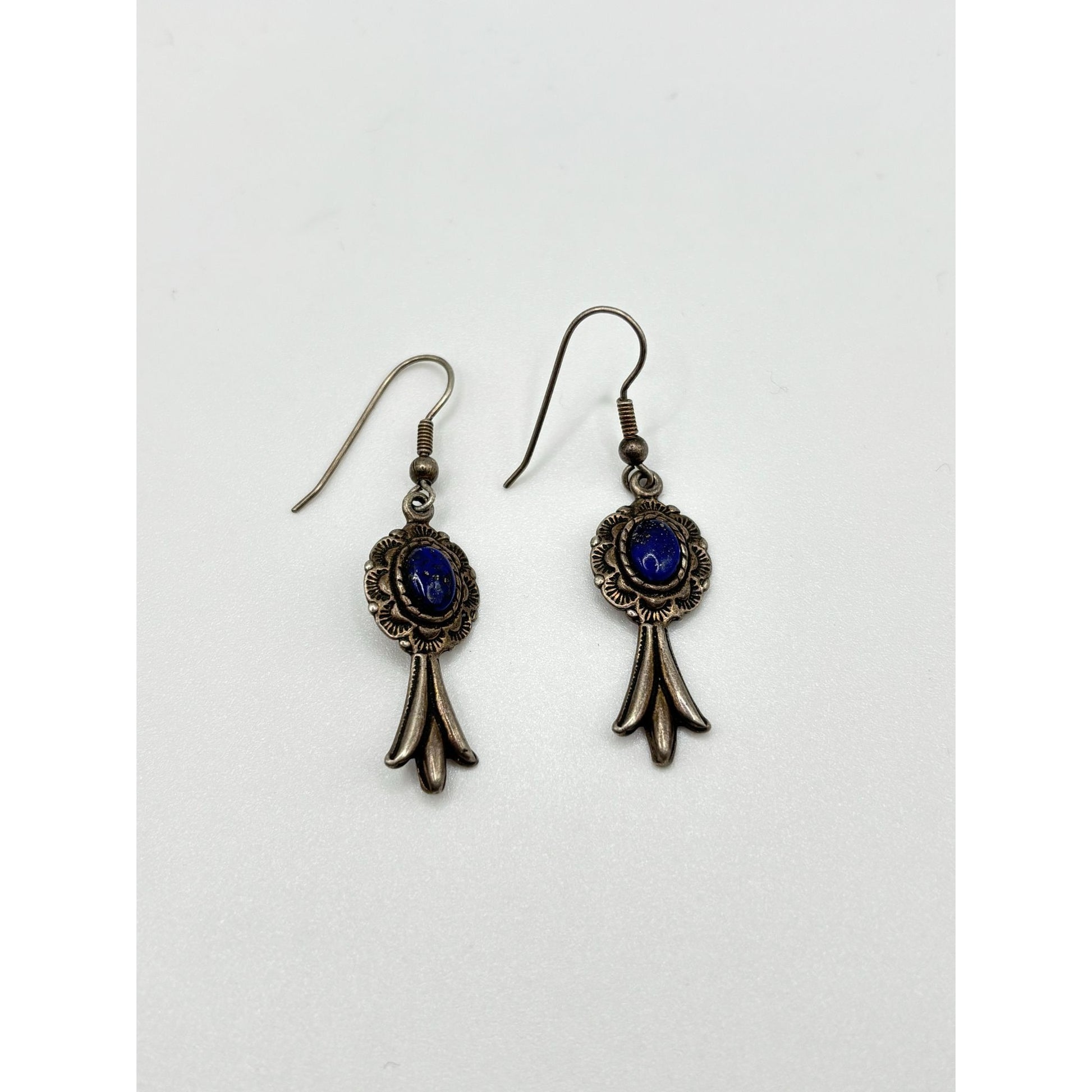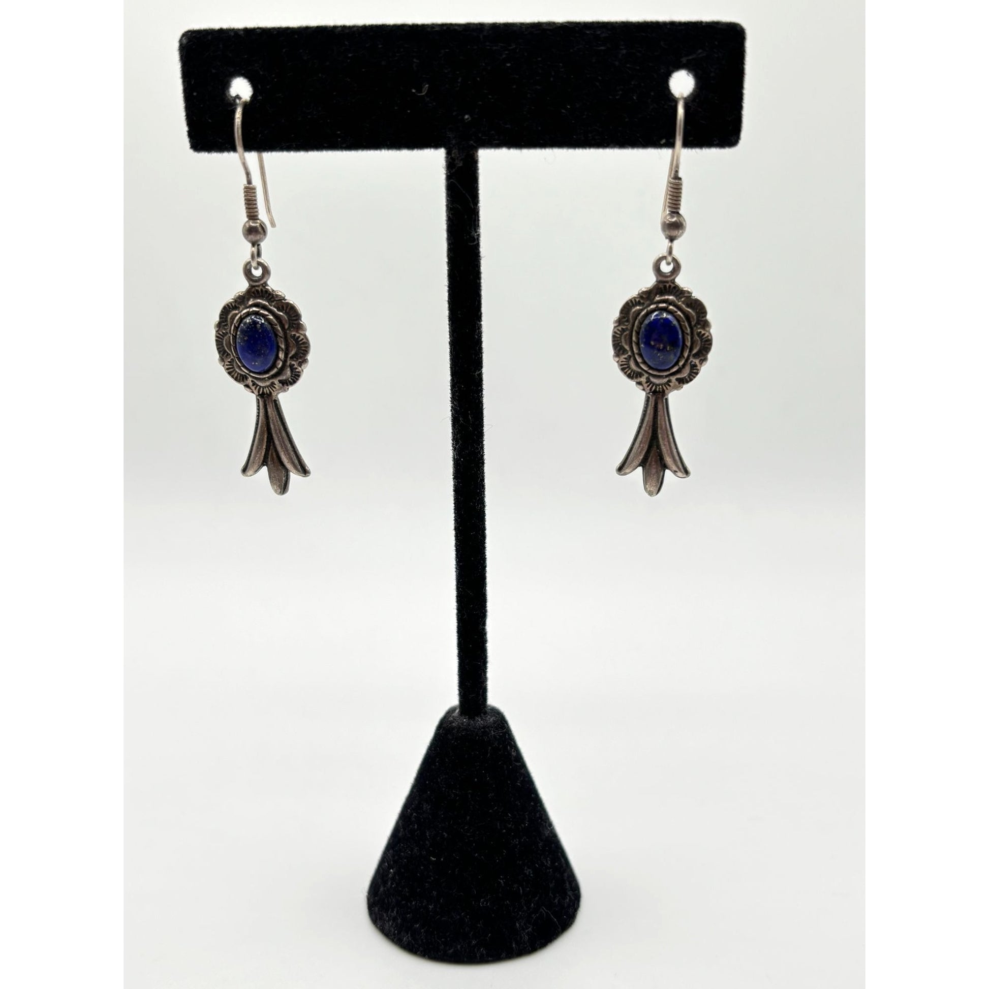 Vintage 925 Sterling Silver Lapis Stone Dangle Earrings