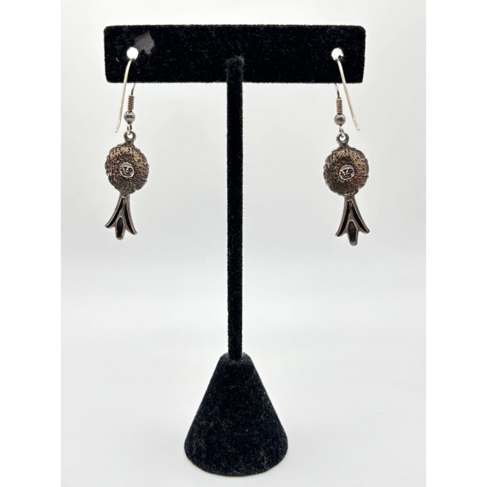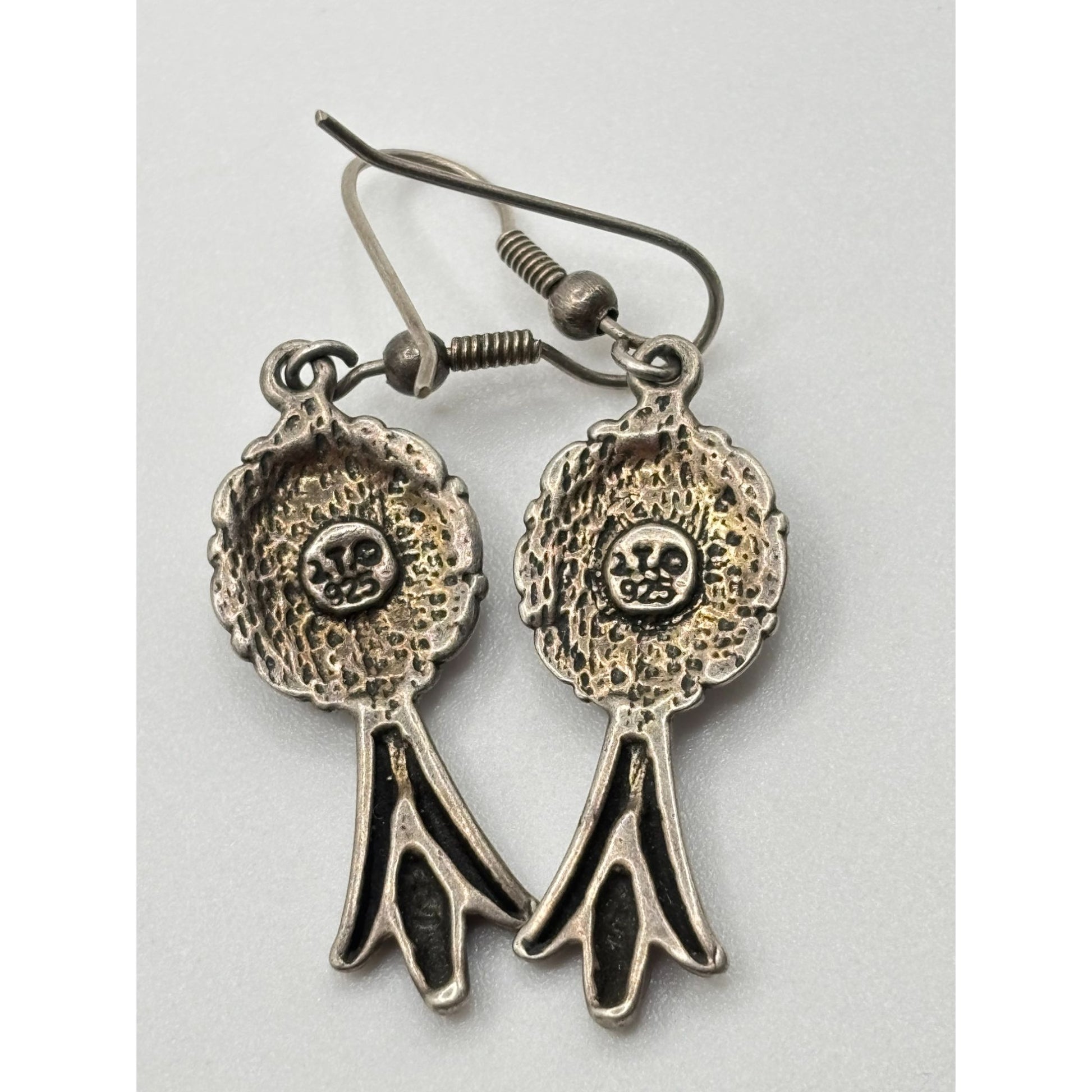 These vintage sterling silver earrings with blue gemstone accents offer timeless elegance. The intricate floral design and lightweight dangle style make them a sophisticated accessory.