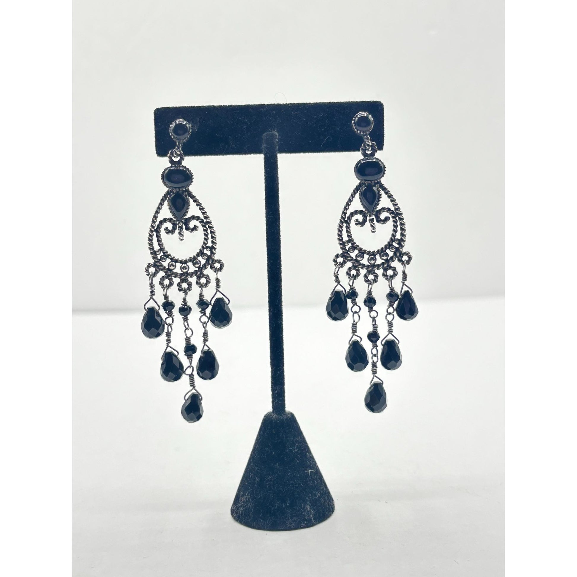 Elevate your jewelry collection with these vintage chandelier earrings featuring 925 sterling silver and elegant onyx drops. The intricate design and quality materials ensure a timeless accessory for your wardrobe. Suitable for both formal and casual settings, these earrings provide a classic touch.