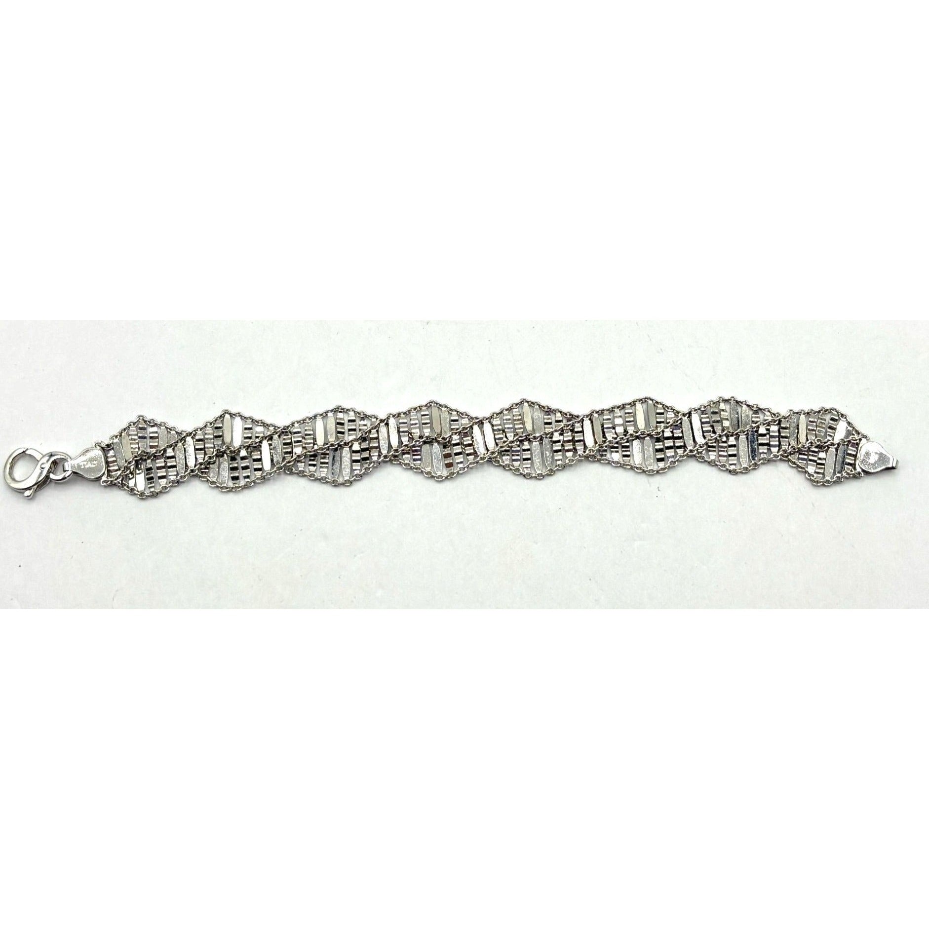 This vintage Italian bracelet is crafted from sterling silver, showcasing an intricate design that exudes elegance. The timeless piece is perfect for adding a touch of sophistication to any ensemble, making it a versatile addition to your jewelry collection. Its durable composition ensures long-lasting wear and a comfortable fit.