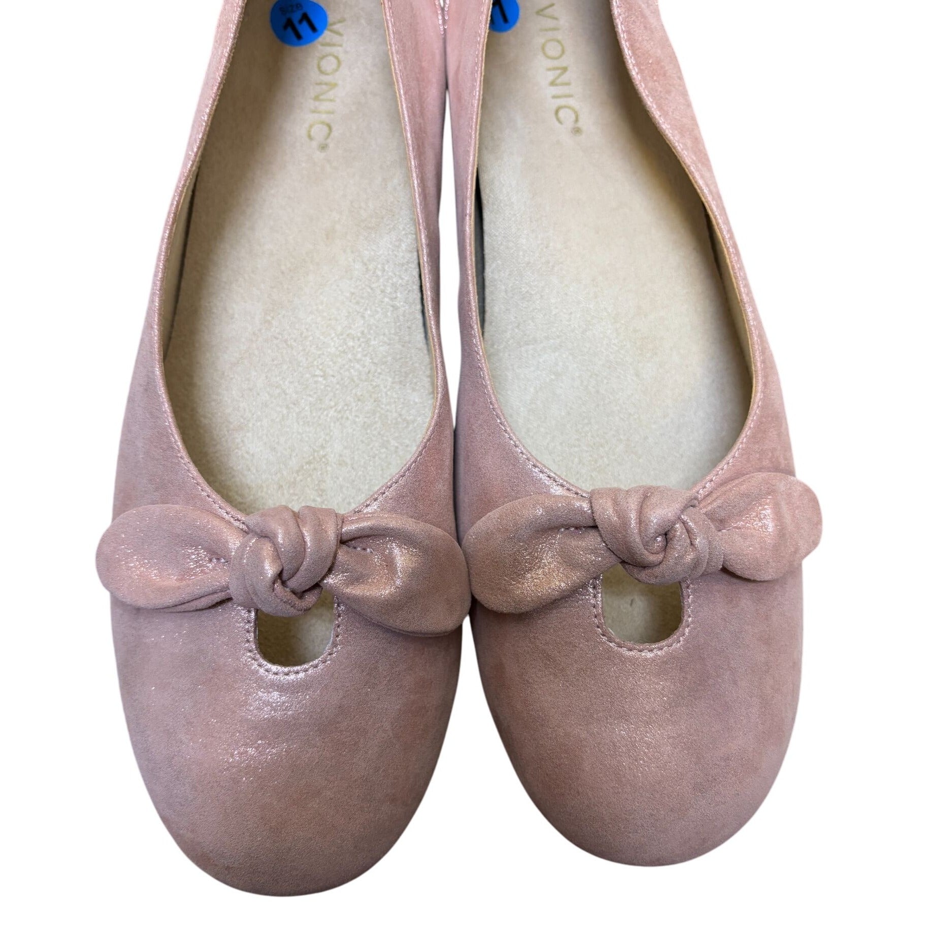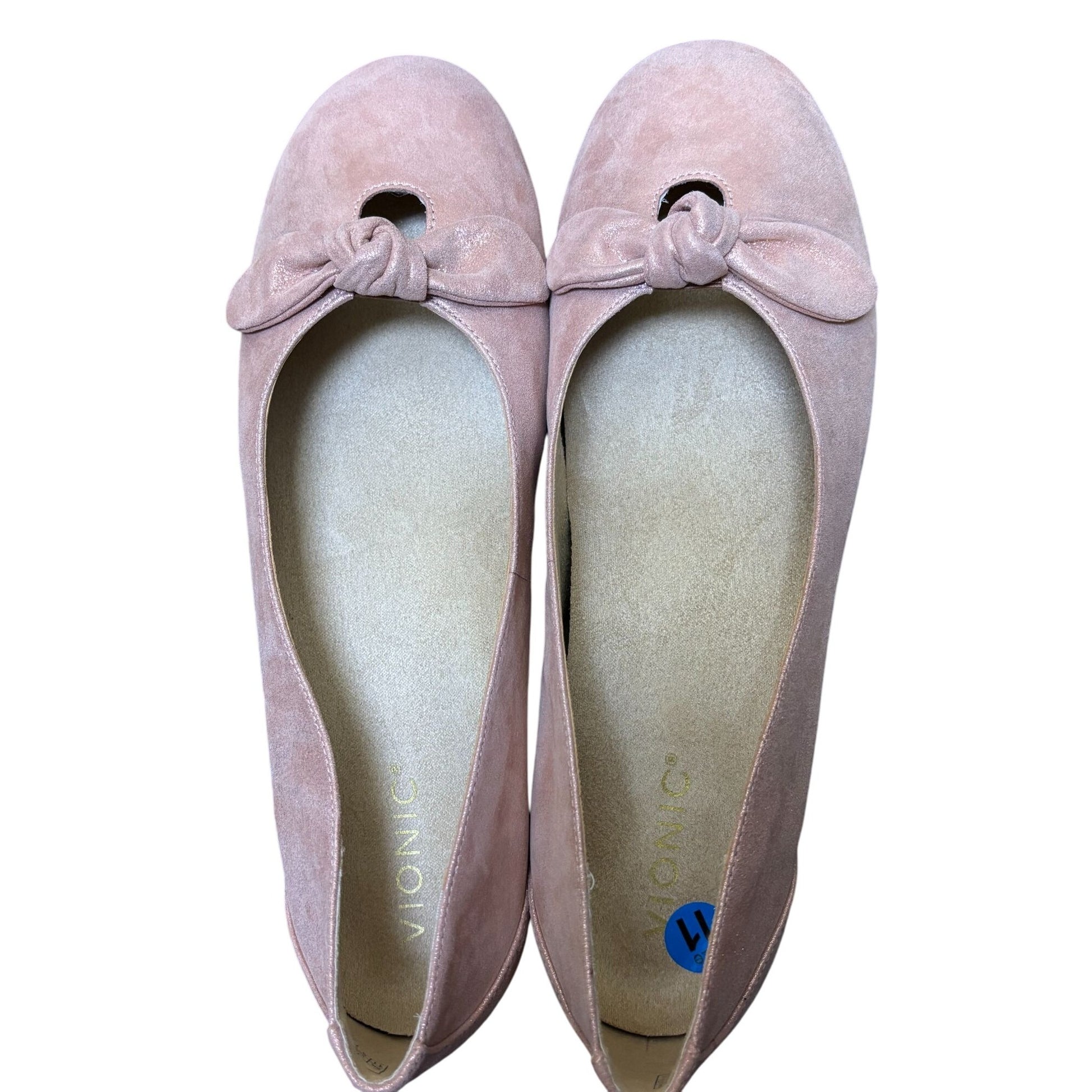 These Vionic flats blend elegance and comfort with a charming bow knot detail, offering a stylish option for a professional wardrobe. The subtle shimmer and comfortable design are ideal for long hours, enhancing your look while providing support.